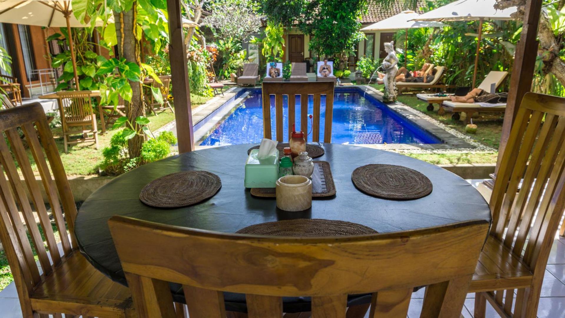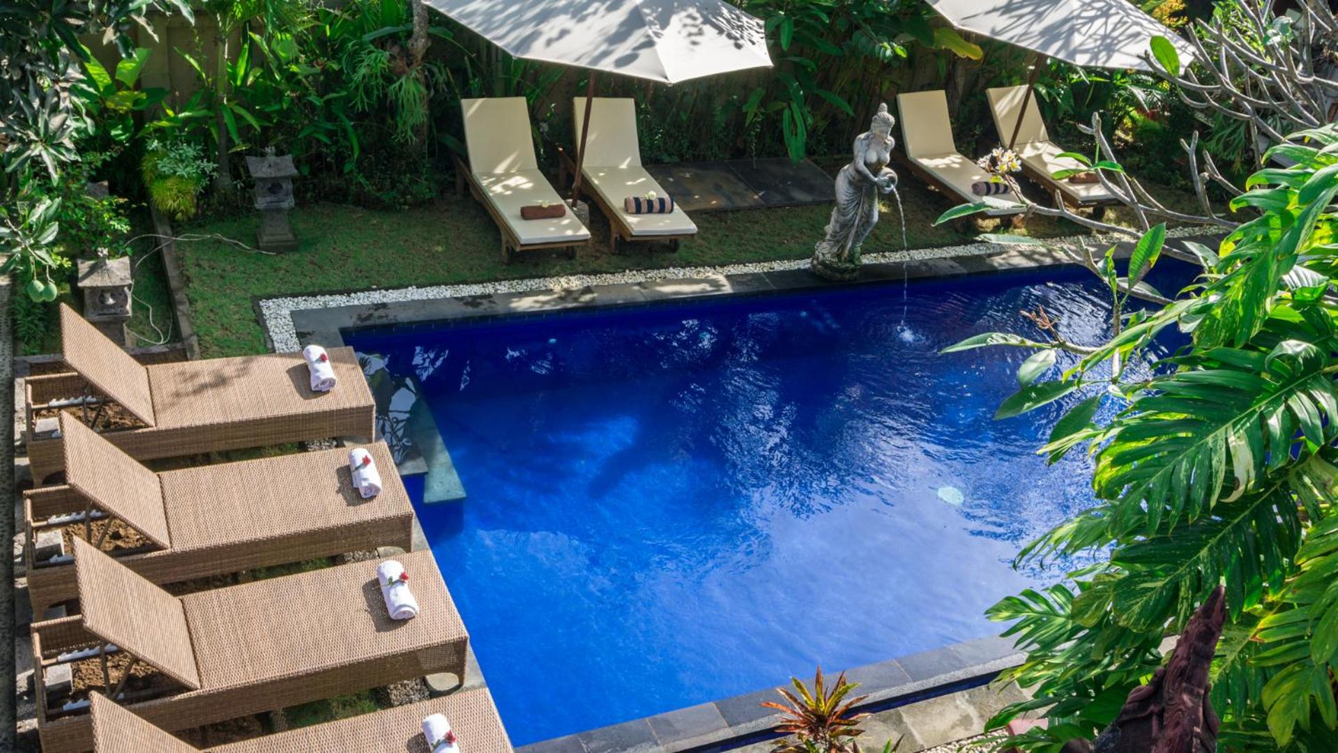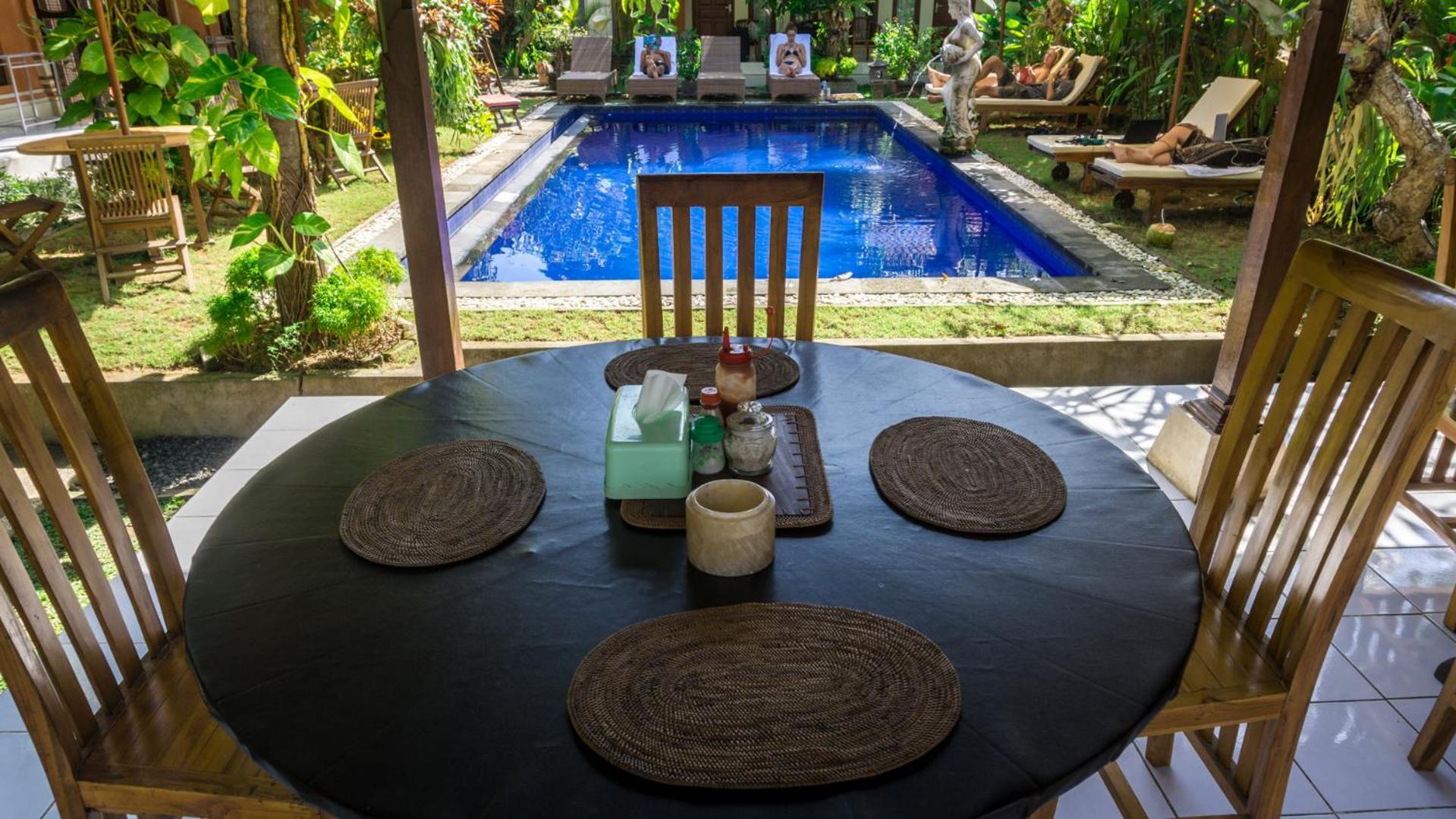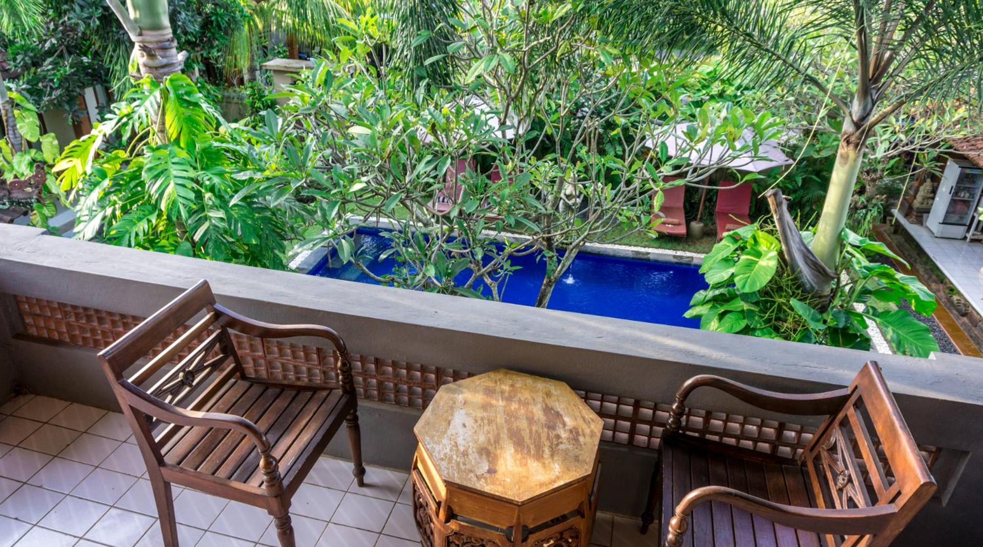 The king size bed was super comfy! The pool was well-maintained and I look forward to my breakfast everyday! My room came with a balcony looking over another house. It was peaceful and the staff were quick to give my room a clean when I needed it. I had an issue with the tap drainage when I had first arrived. I spoke to the owner, Ketut, she was friendly and warm and got a staff to fix up the problem right away. I am very happy with the service they provided.