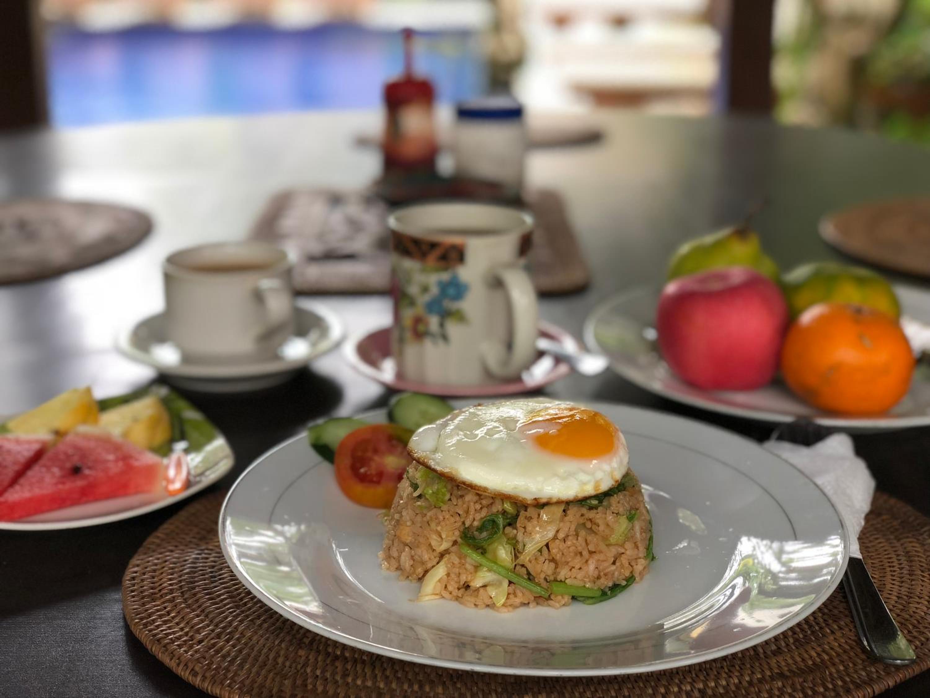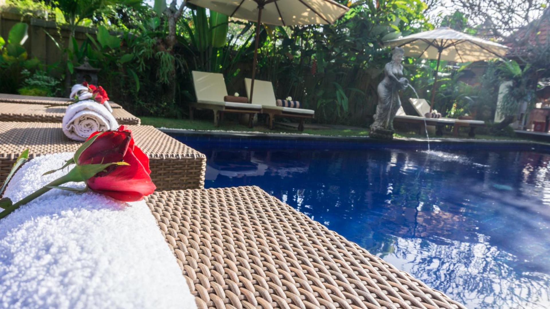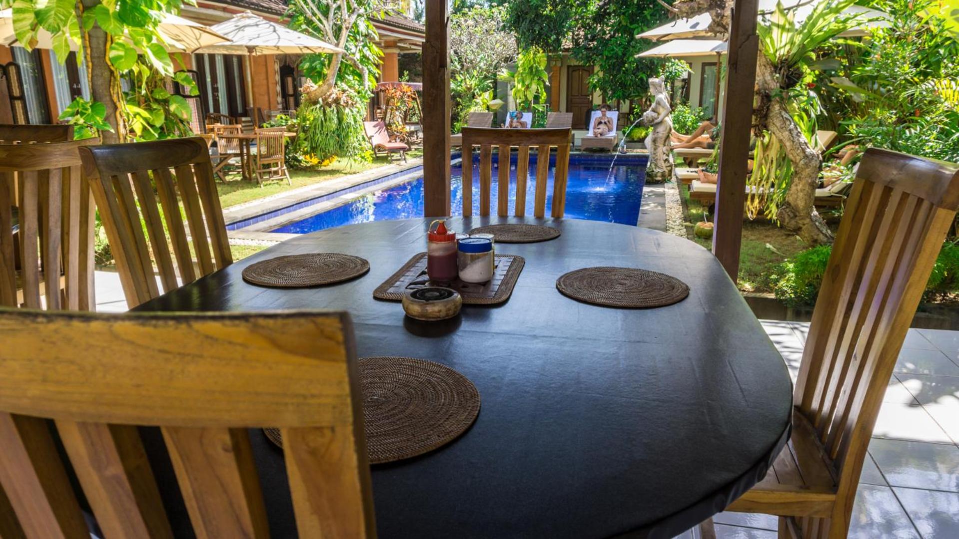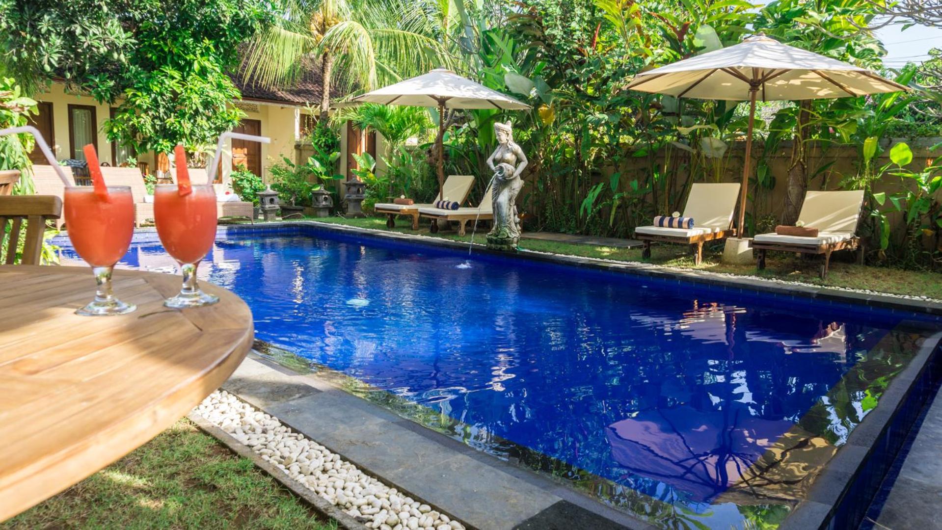 The king size bed was super comfy! The pool was well-maintained and I look forward to my breakfast everyday! My room came with a balcony looking over another house. It was peaceful and the staff were quick to give my room a clean when I needed it. I had an issue with the tap drainage when I had first arrived. I spoke to the owner, Ketut, she was friendly and warm and got a staff to fix up the problem right away. I am very happy with the service they provided.