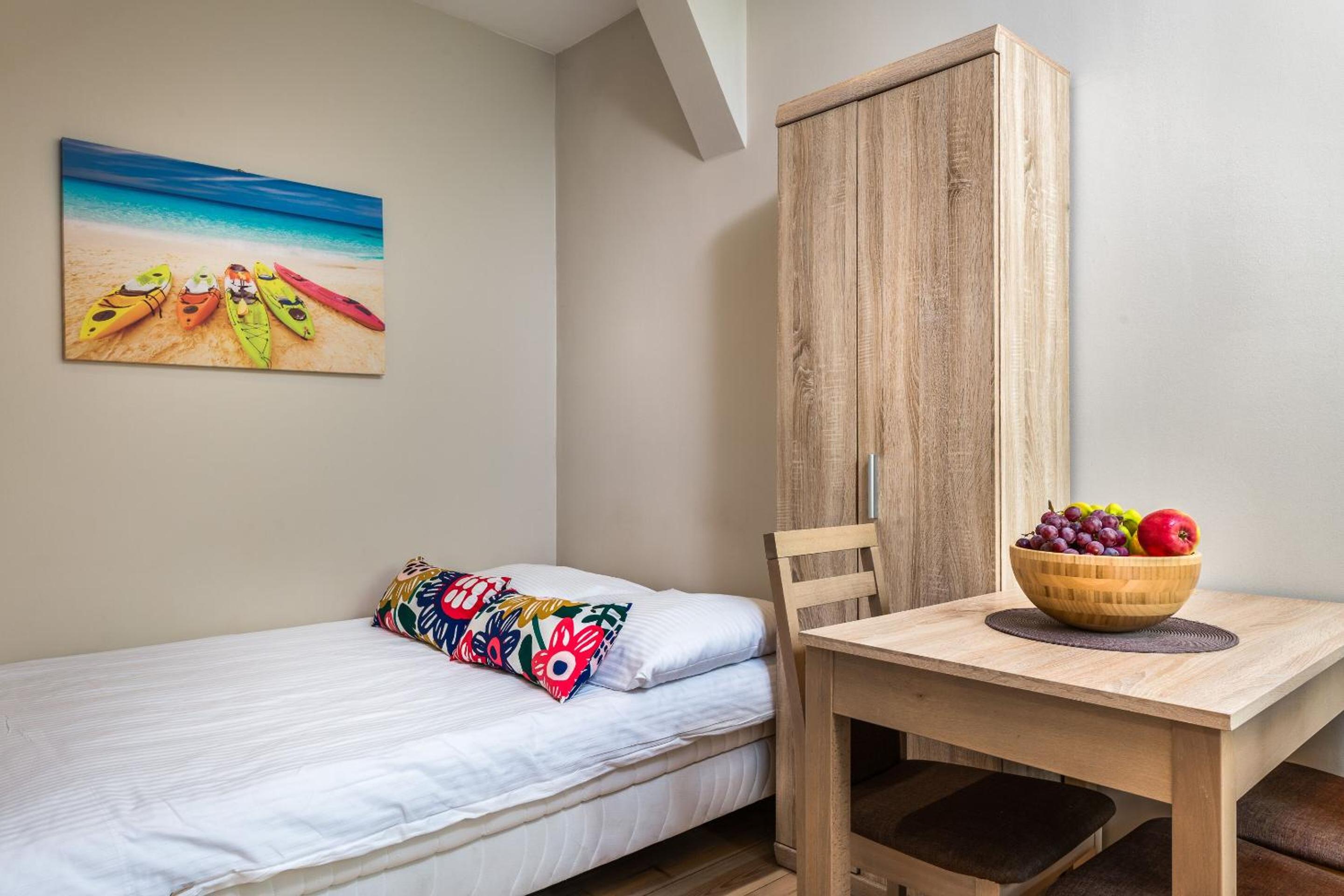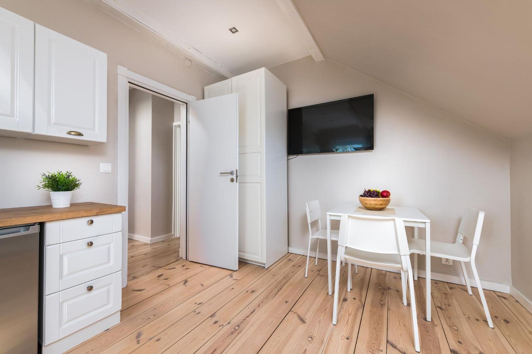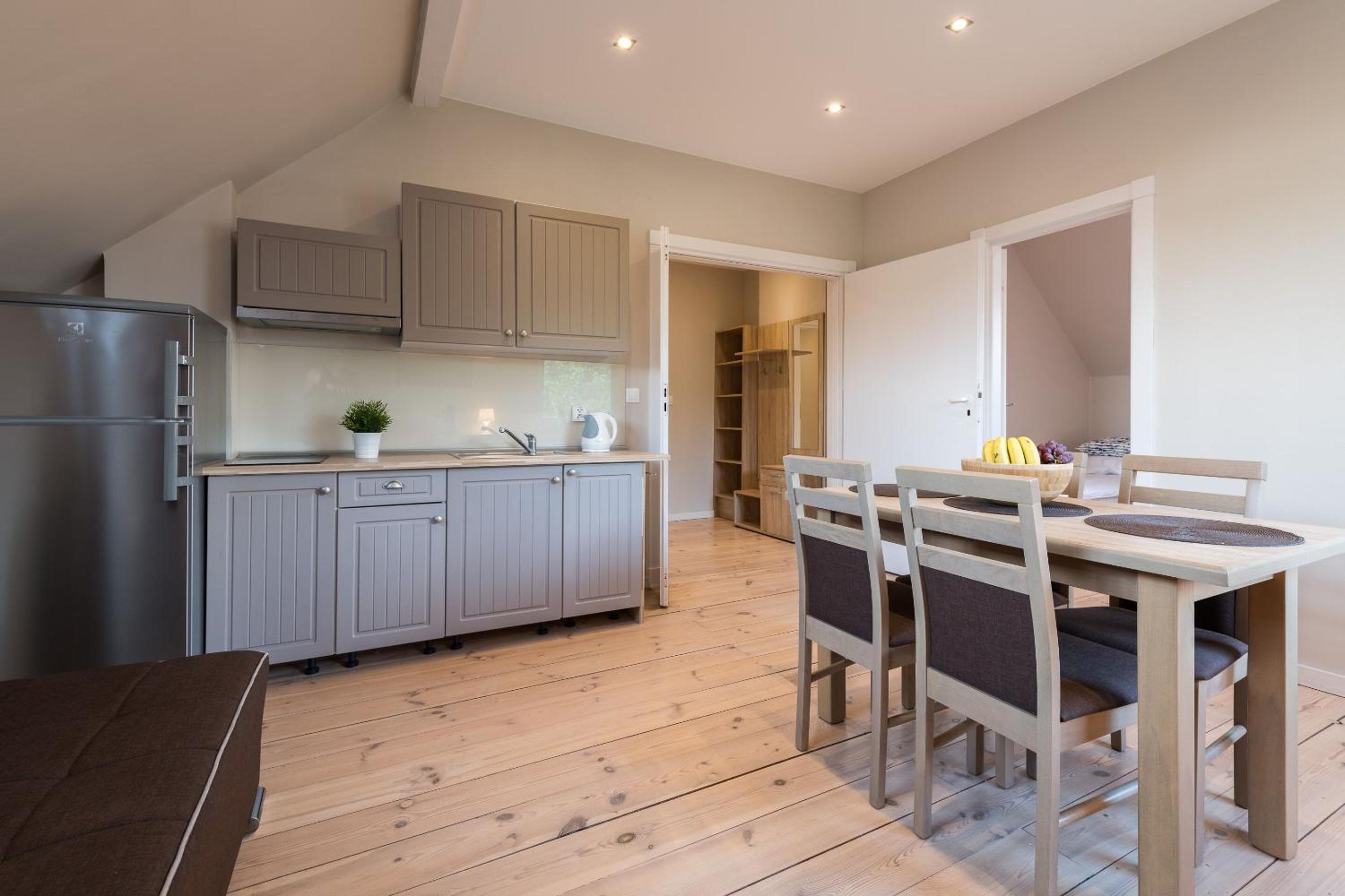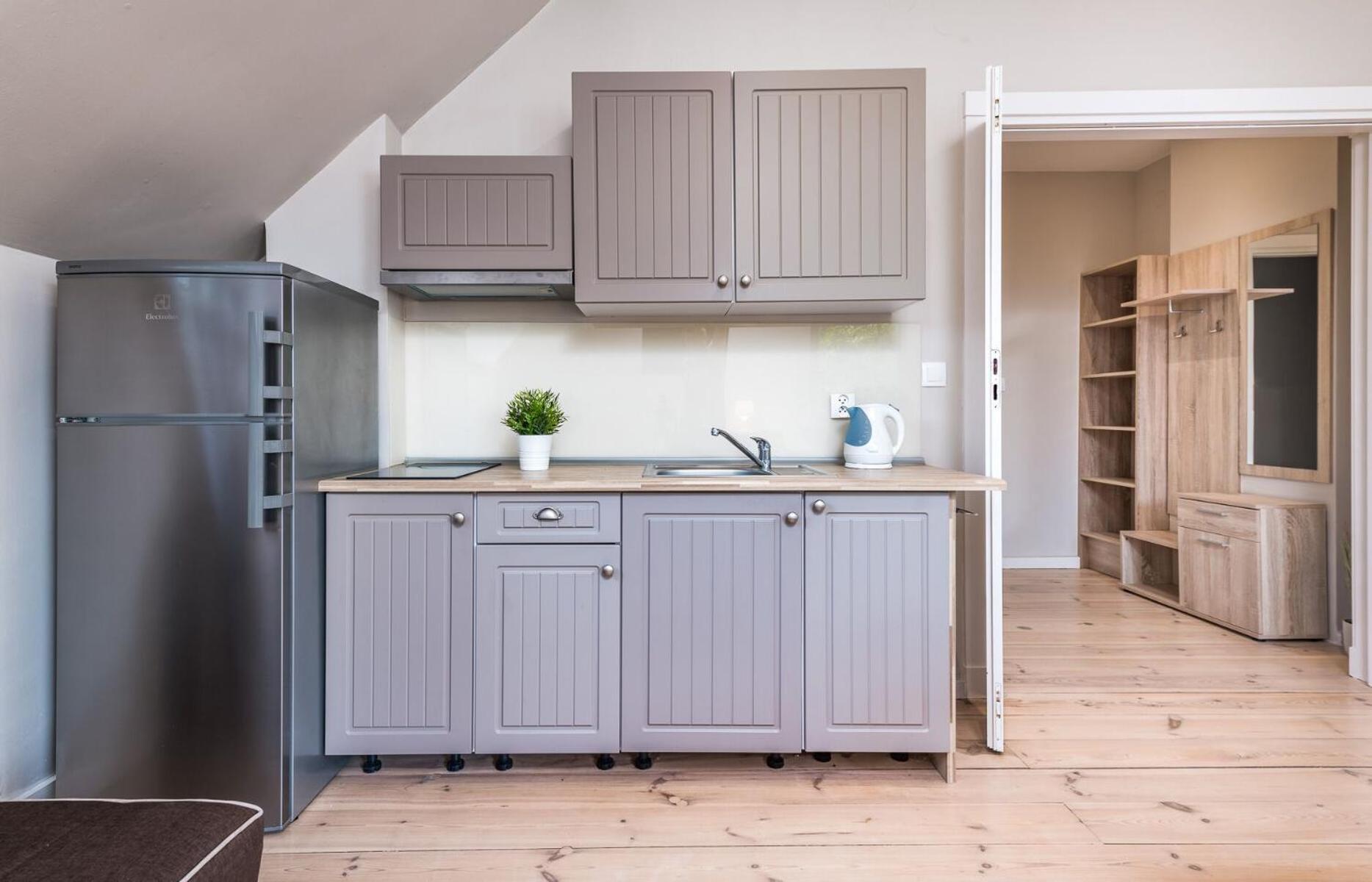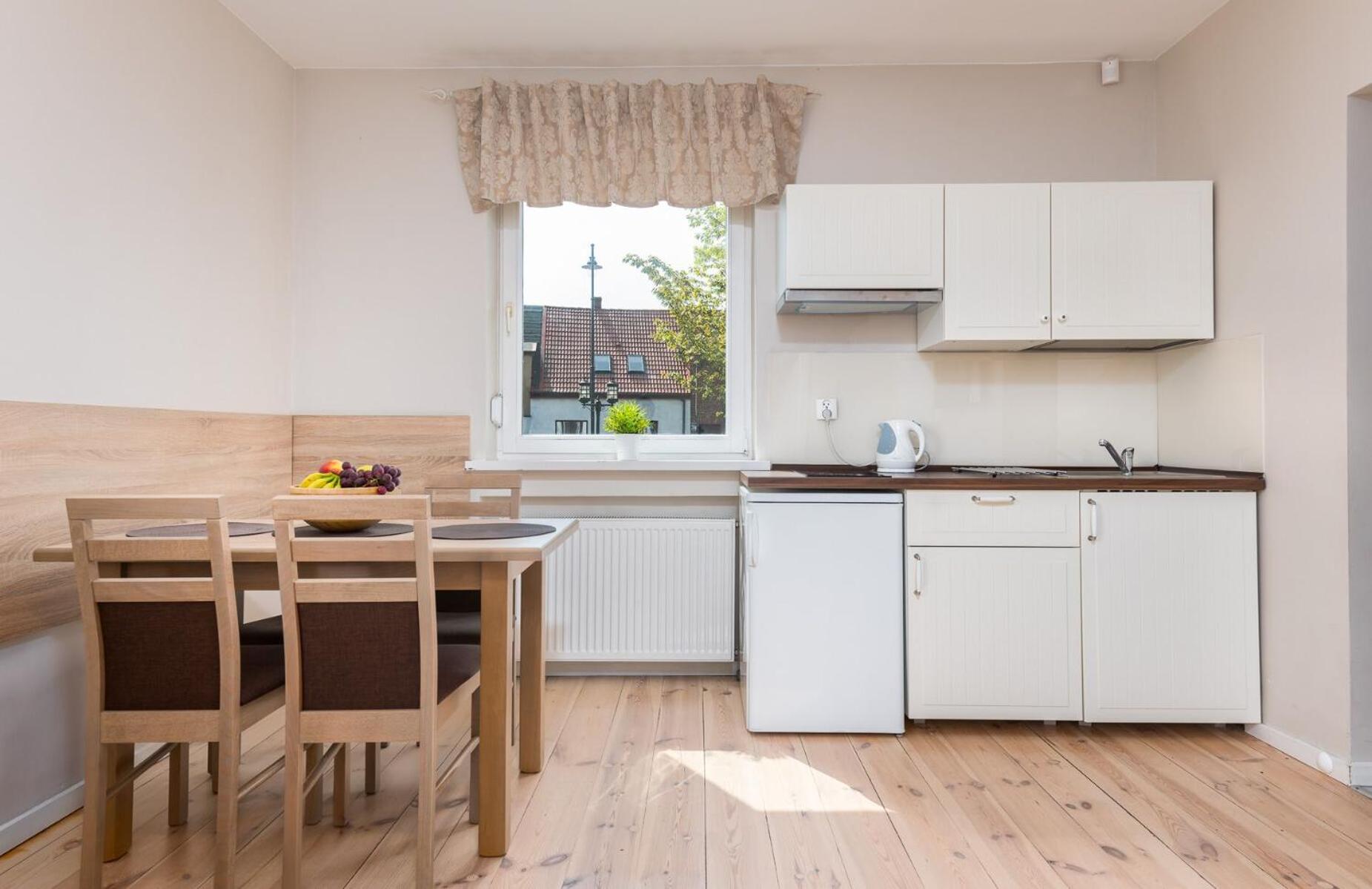 After seeing the accommodation pictures I got an impression that there is a shared kitchen in the building, which showed not right. However we had a small quiet fridge in the room and a small stovetop. It did the job but was not comfortable for the family of 4. I will book a larger apartment next time. 🙂