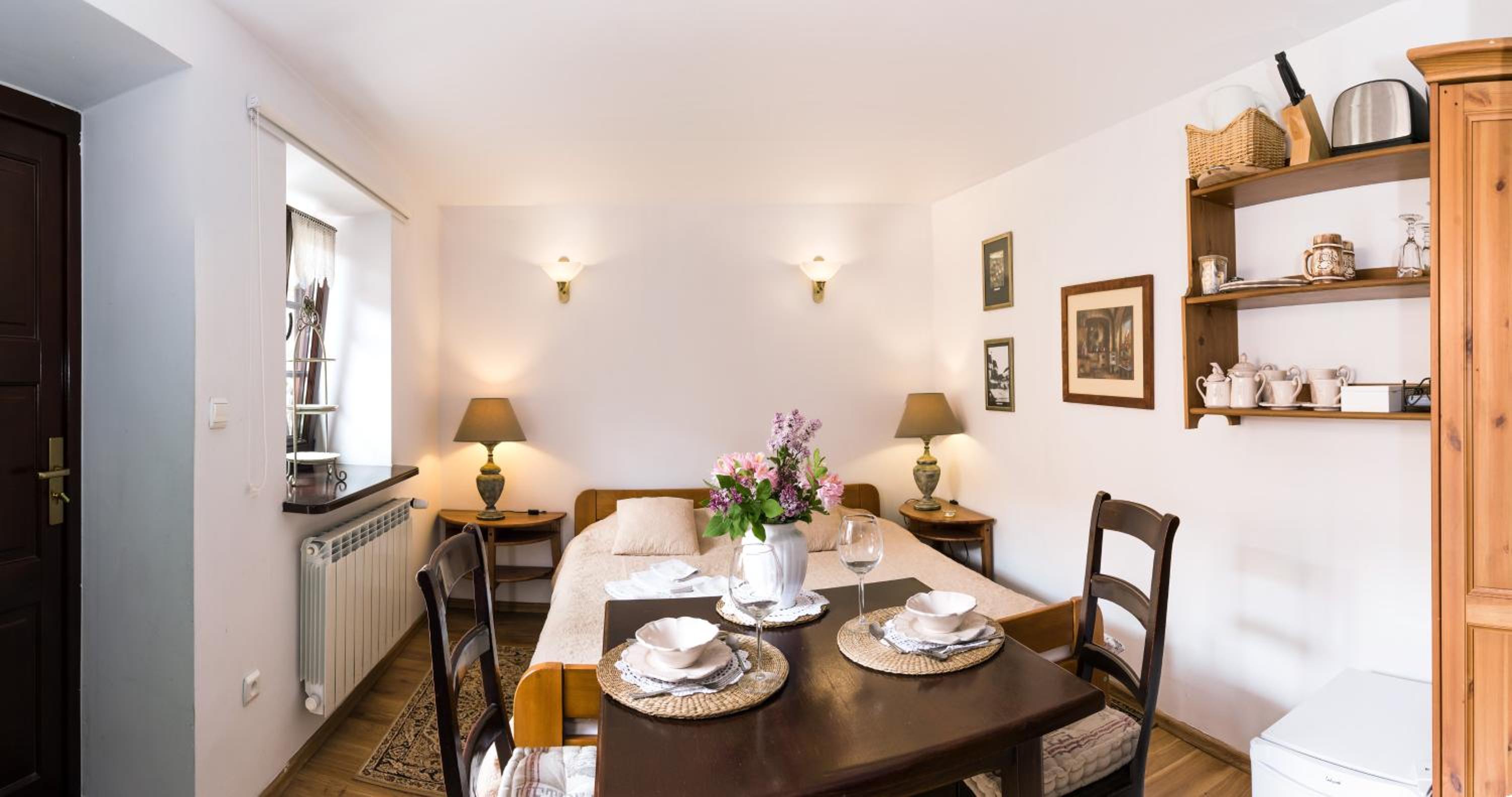 Idealna lokalizacja, praktycznie na samym rynku. Piękne widoki z okien, a sam obiekt bardzo klimatyczny i uroczy. Kuchnia malutka, ale dobrze wyposażona - jest wszystko czego potrzeba na weekendowy pobyt. Czystość bez zarzutów.
