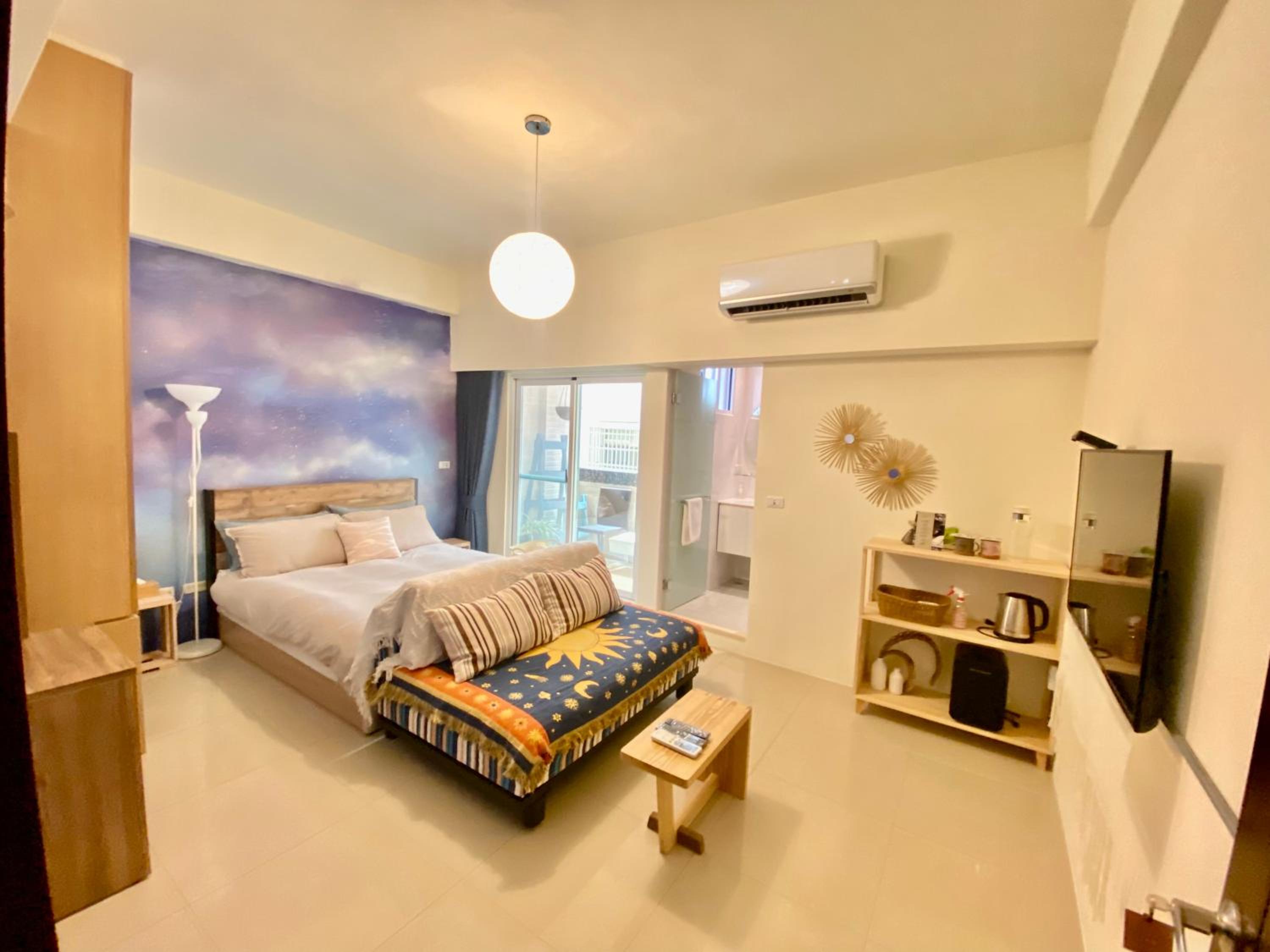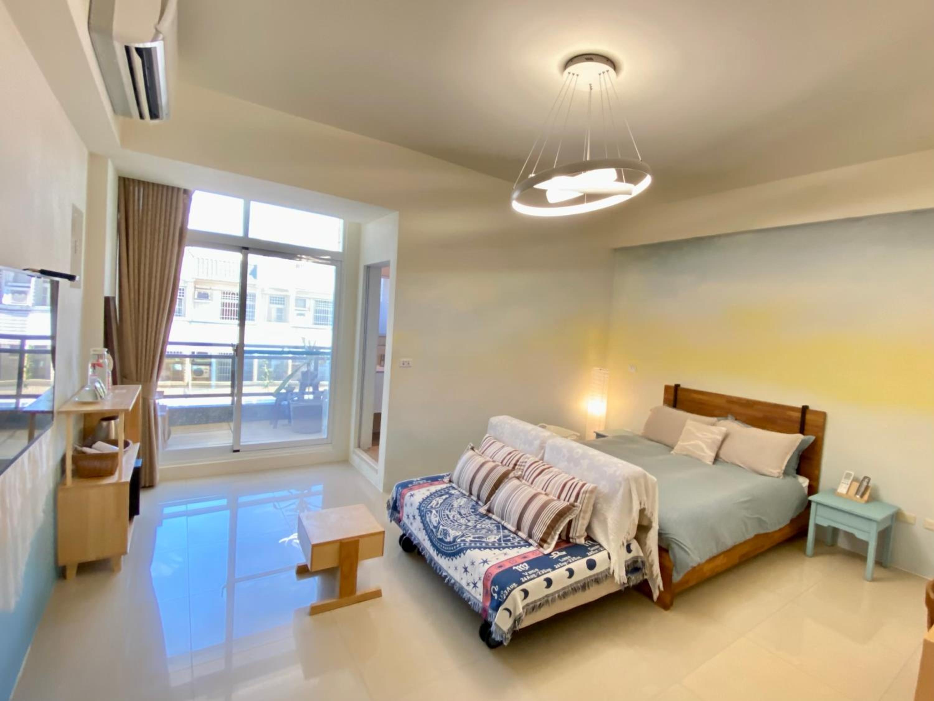 戶外環境距離50公尺以內有UBike, 便利商店,屋內有簡易廚房設施,寵物友善、Netflix,房間很乾淨舒適。門口有可愛的狗狗看家,若有會怕狗的旅客要考慮一下。