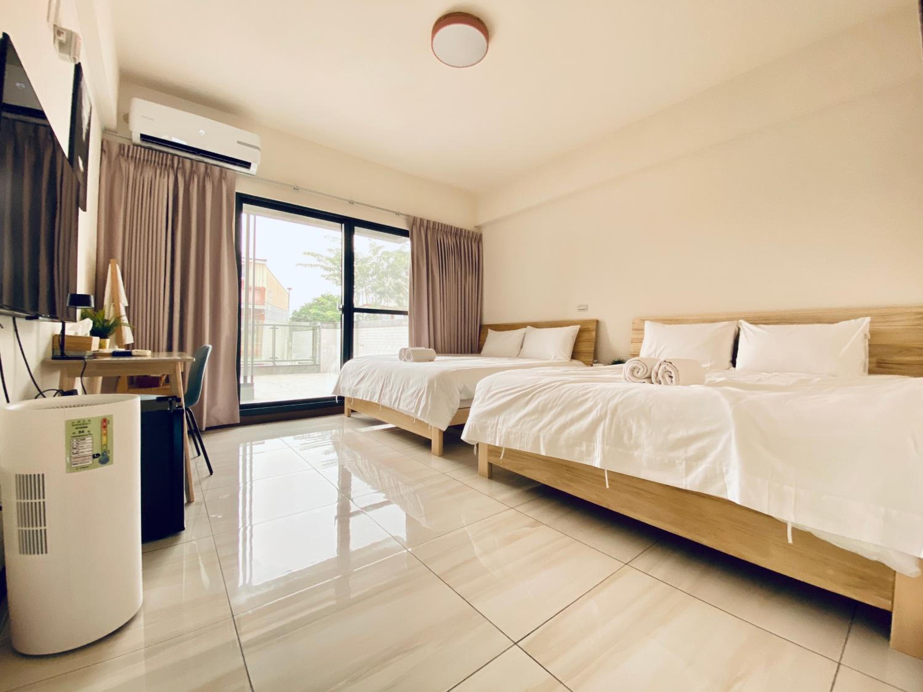 Enjoy the city views from our shared lounge and family rooms. Relax on the sun terrace and experience a sustainable stay in Neipu.