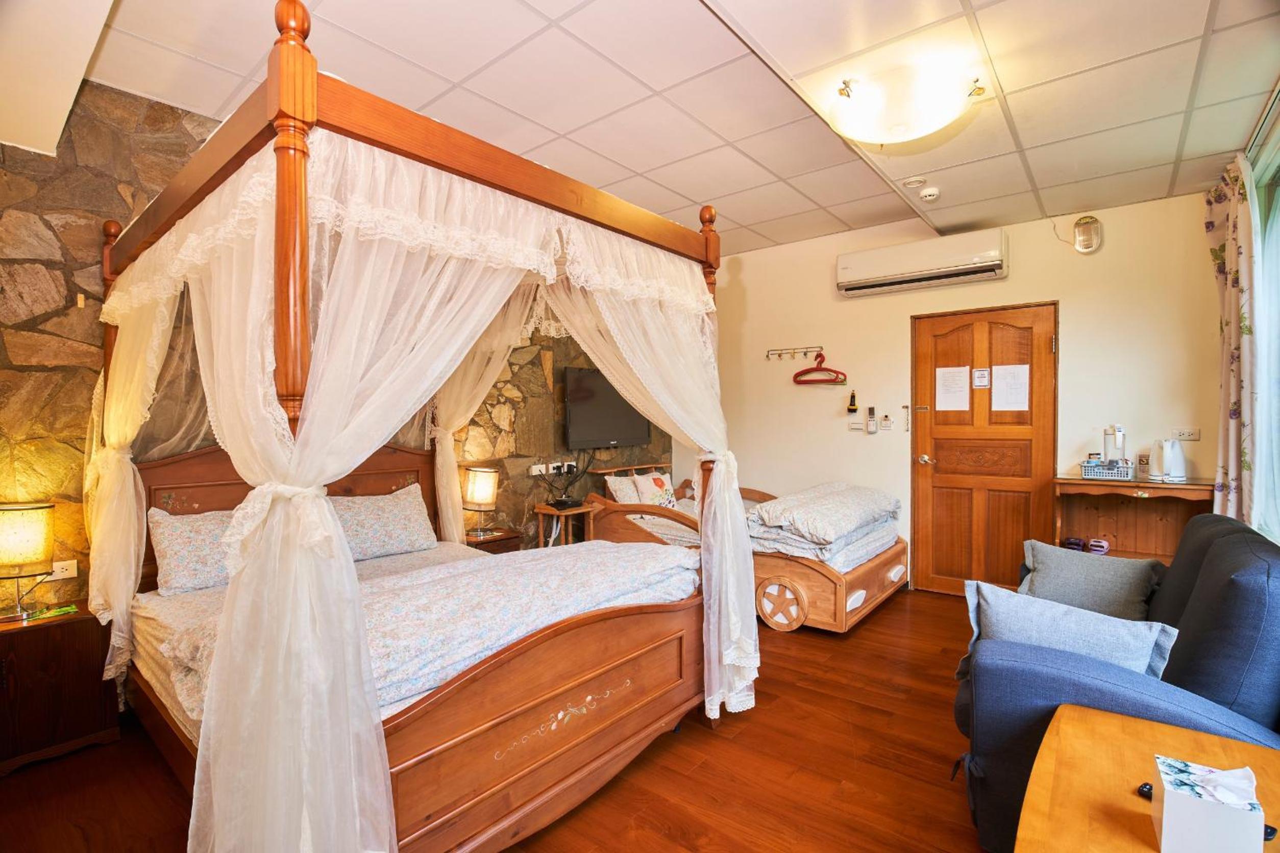 Experience a luxurious stay at Liang Chen Mei Jin B&B, offering air-conditioned rooms with a patio and stunning mountain or garden views. Enjoy the convenience of a shared kitchen, restaurant, and free WiFi. Relax on the sun terrace or explore the hiking trails nearby. With facilities like a children's playground and a picnic area, there's something for everyone. Plus, the property is just a short distance from popular attractions like Wufenpu Garment Wholesale Area and Taipei 101. Book now and make your trip unforgettable!
