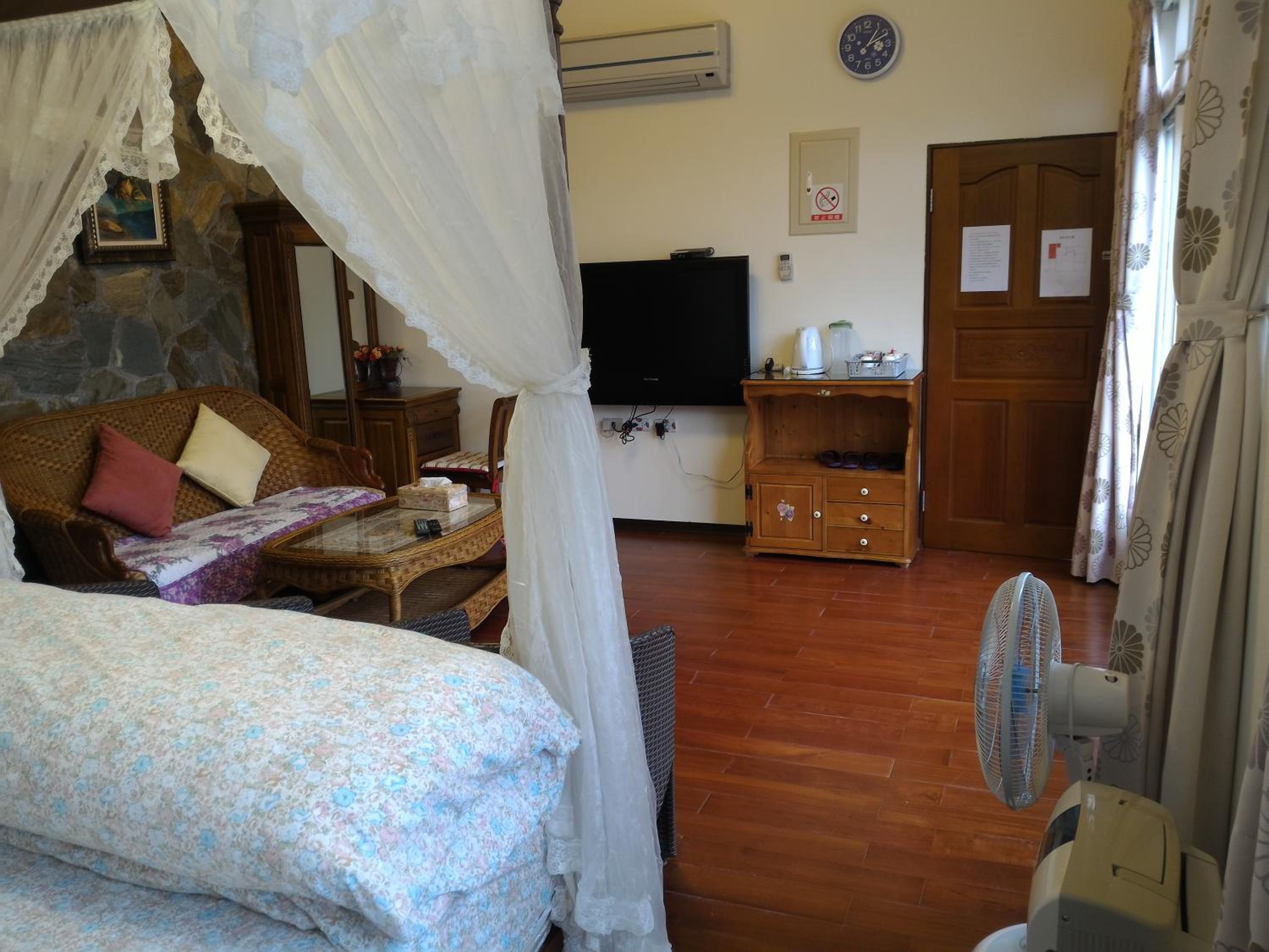 房間本身硬體設備沒問題,唯一問題是,樓下房客當晚從9點多烤肉到凌晨,除了發出噪音外,烤肉的煙燻味也不斷傳來我們房間,導致當晚睡的不是很好,很可惜這部分因為民宿管理者傍晚後即下班了,所以無法管控,建議還是要找出解決辦法較好。
