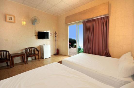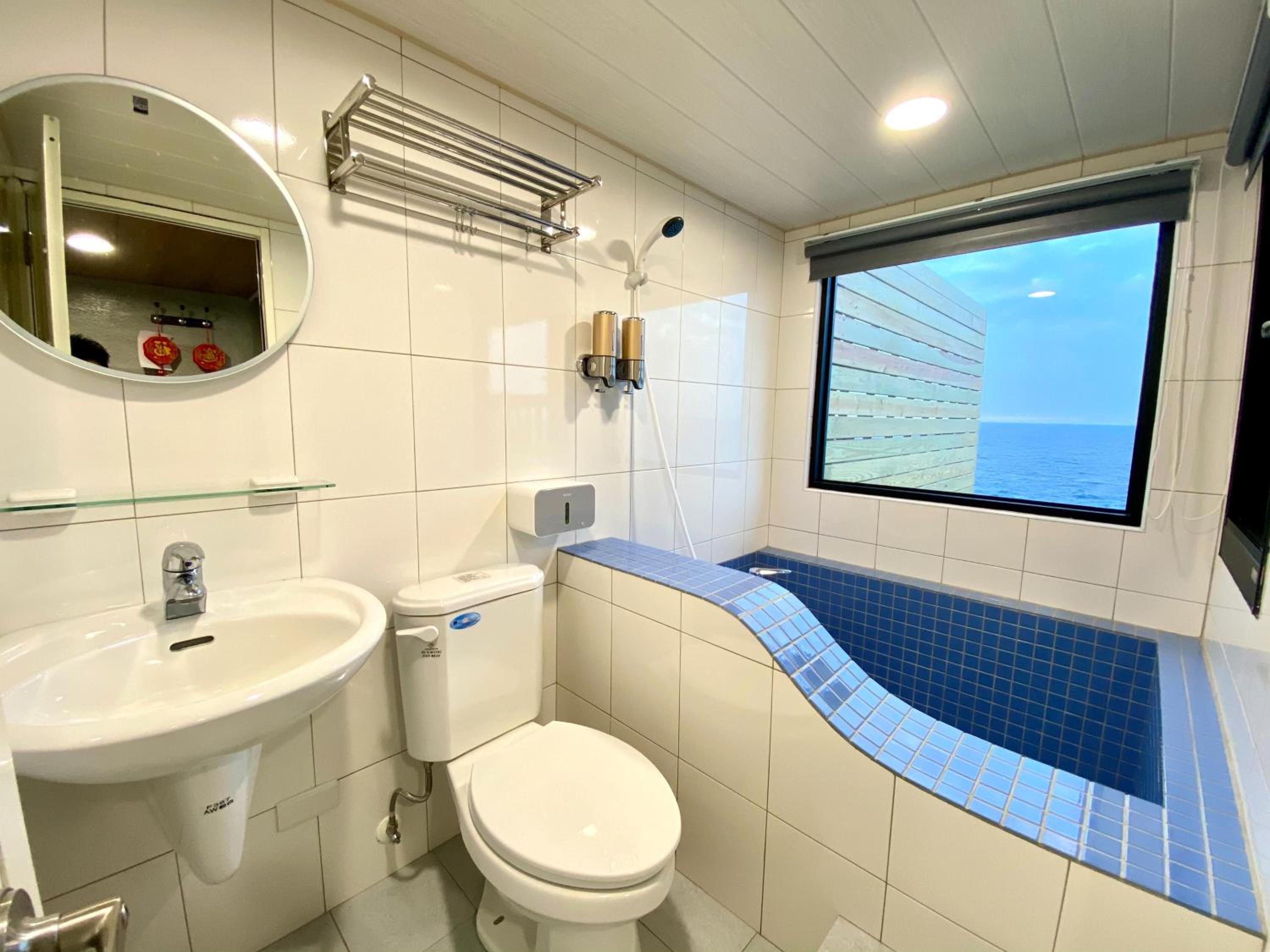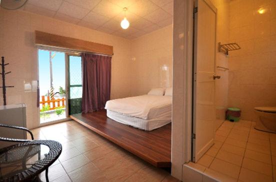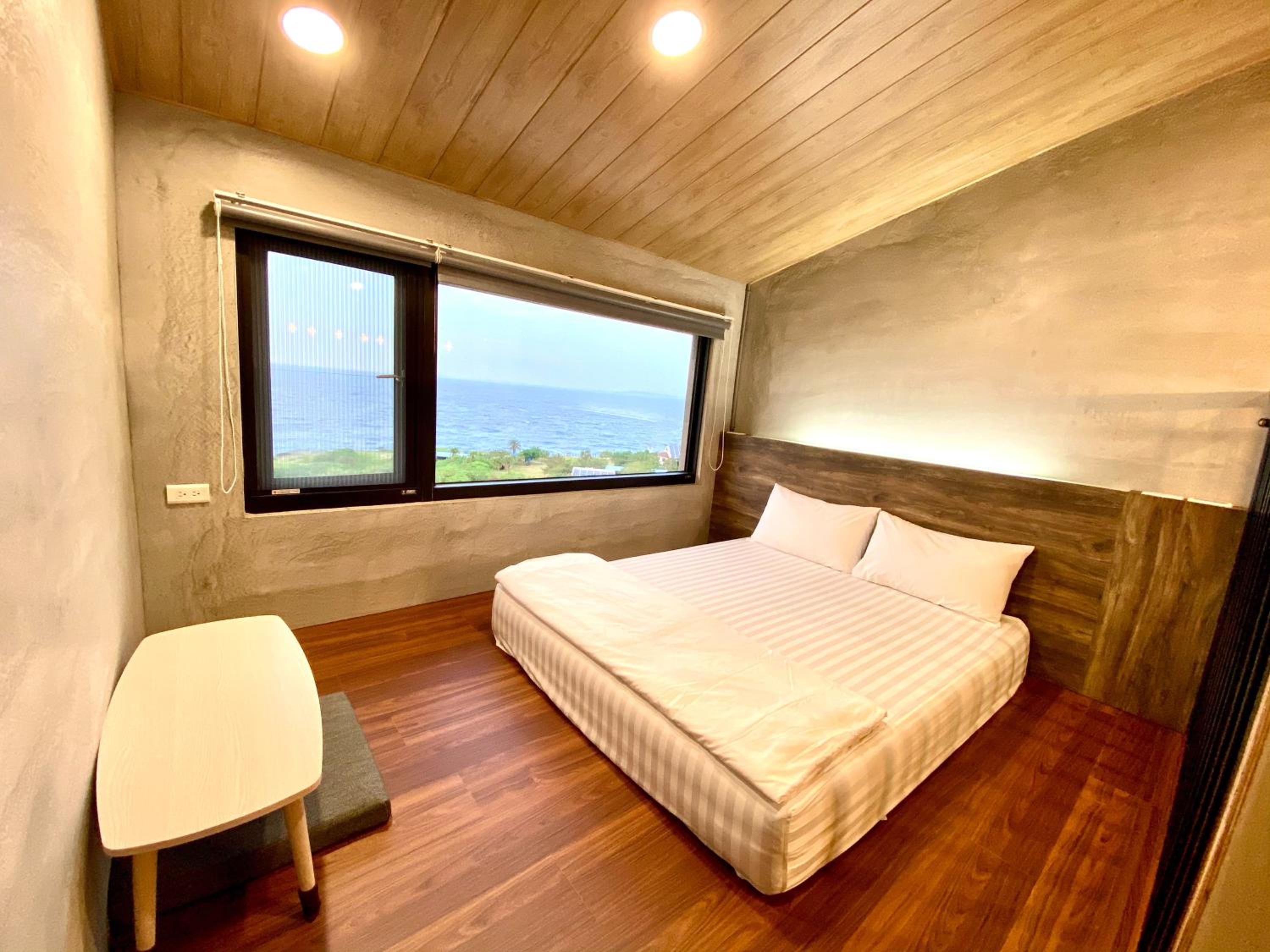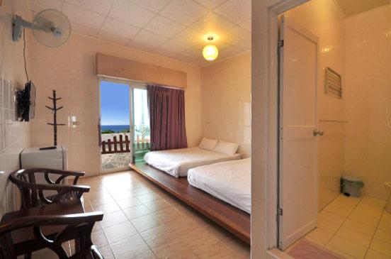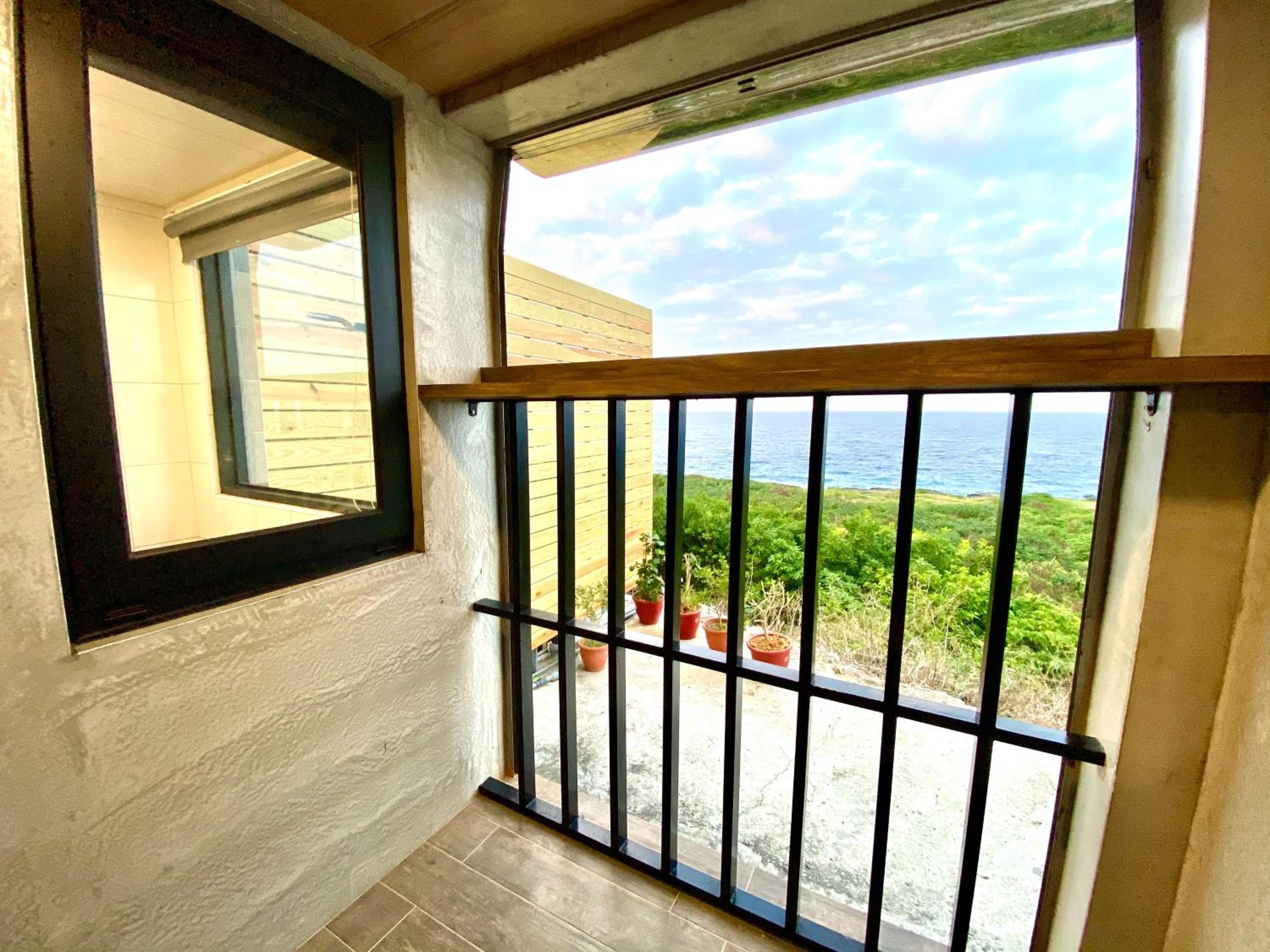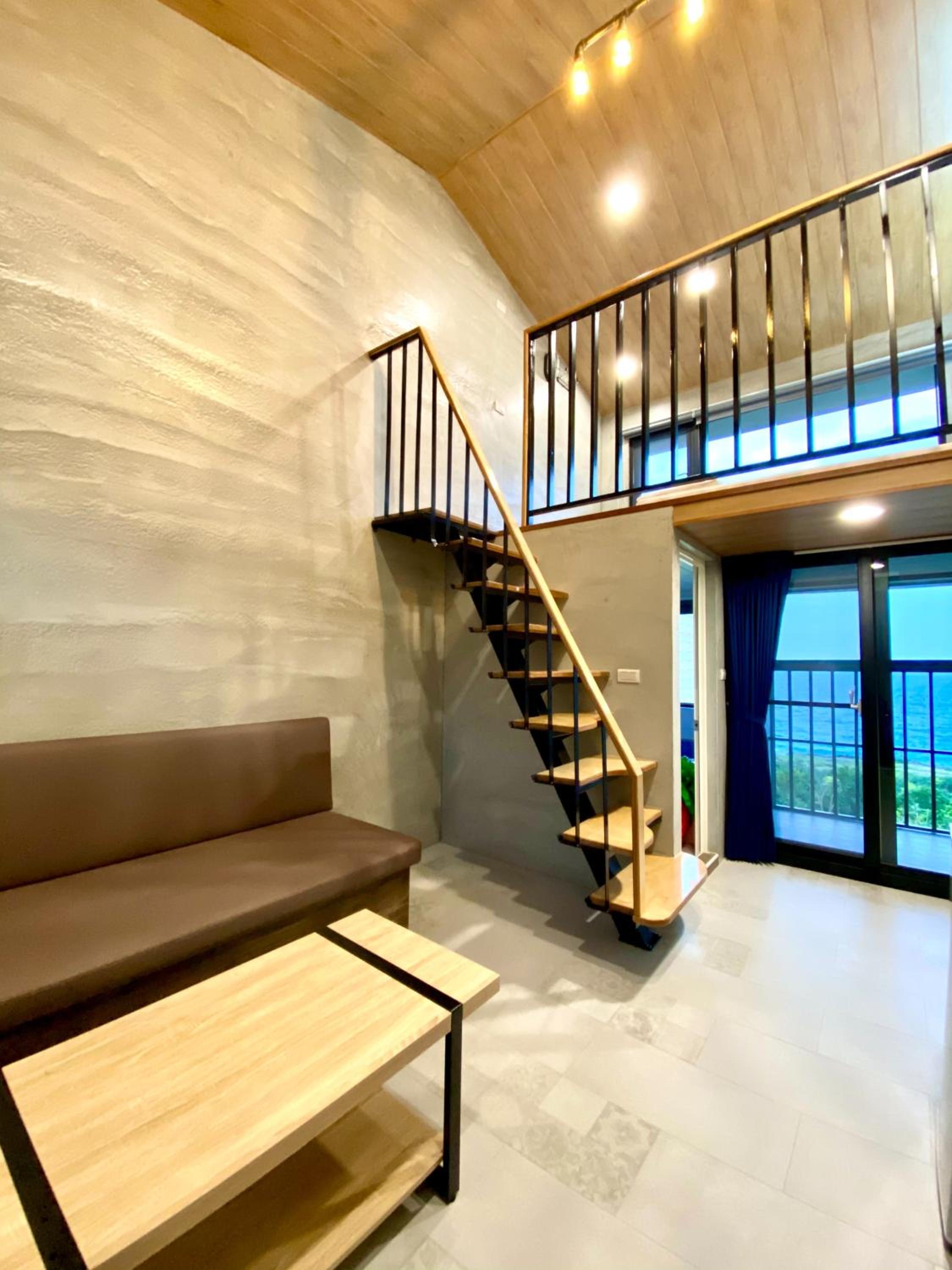 在還說到房型 一進去房間,老闆娘細心的先幫我們把冷氣都先打開了,原本很躁熱的心情瞬間煙消雲散了,真的很舒適, 民宿打掃整理的很乾凈,有小客廳, 小沙發、電視還有第四台、冷氣、小冰箱、熱水壺等客廳是挑高的設計,空間就看起來很寬敞、明亮、陽臺的景色又靠海,超美的,浴室雖然小間,但整體設計簡約乾淨(有付洗髮精、沐浴乳乾淨的毛巾浴巾),有透明的窗戶,泡澡時向外看到很美的大海,讓我們很放鬆, 隱祕性尚可👌床放置在二樓的小隔樓, 雖然樓梯有點抖協,走到二樓房間時, 看到敞開的透明窗,往外看那個景色實在是超美的,景觀位置超棒的👌