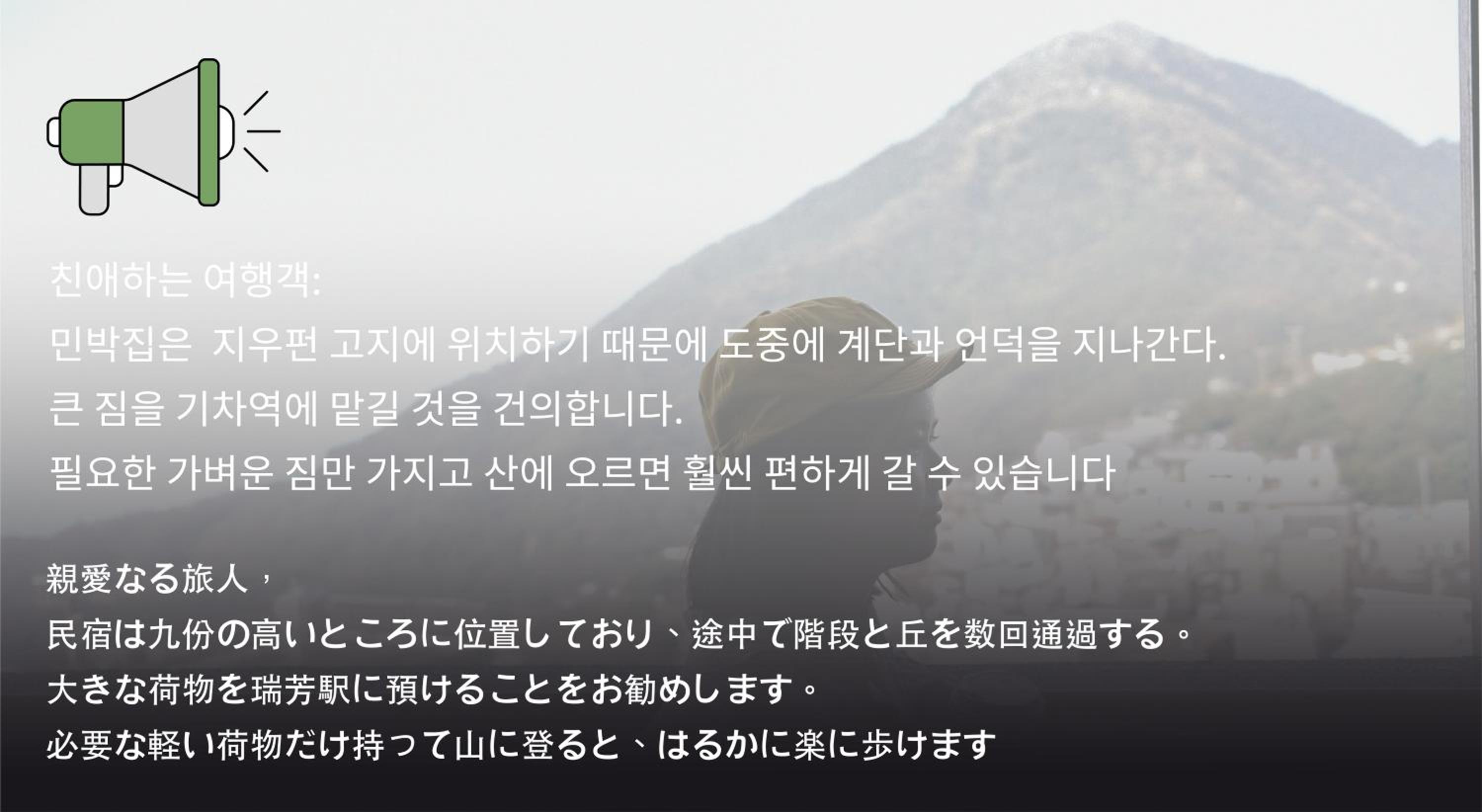 Wonderful room, location a bit away from old street above a temple which was perfect, loved the bath and other touches like shoe warmer for wet shoes. Friendly host that gave us hiking recommendations, and allowed us to store our luggage whilst we went on the hike.
