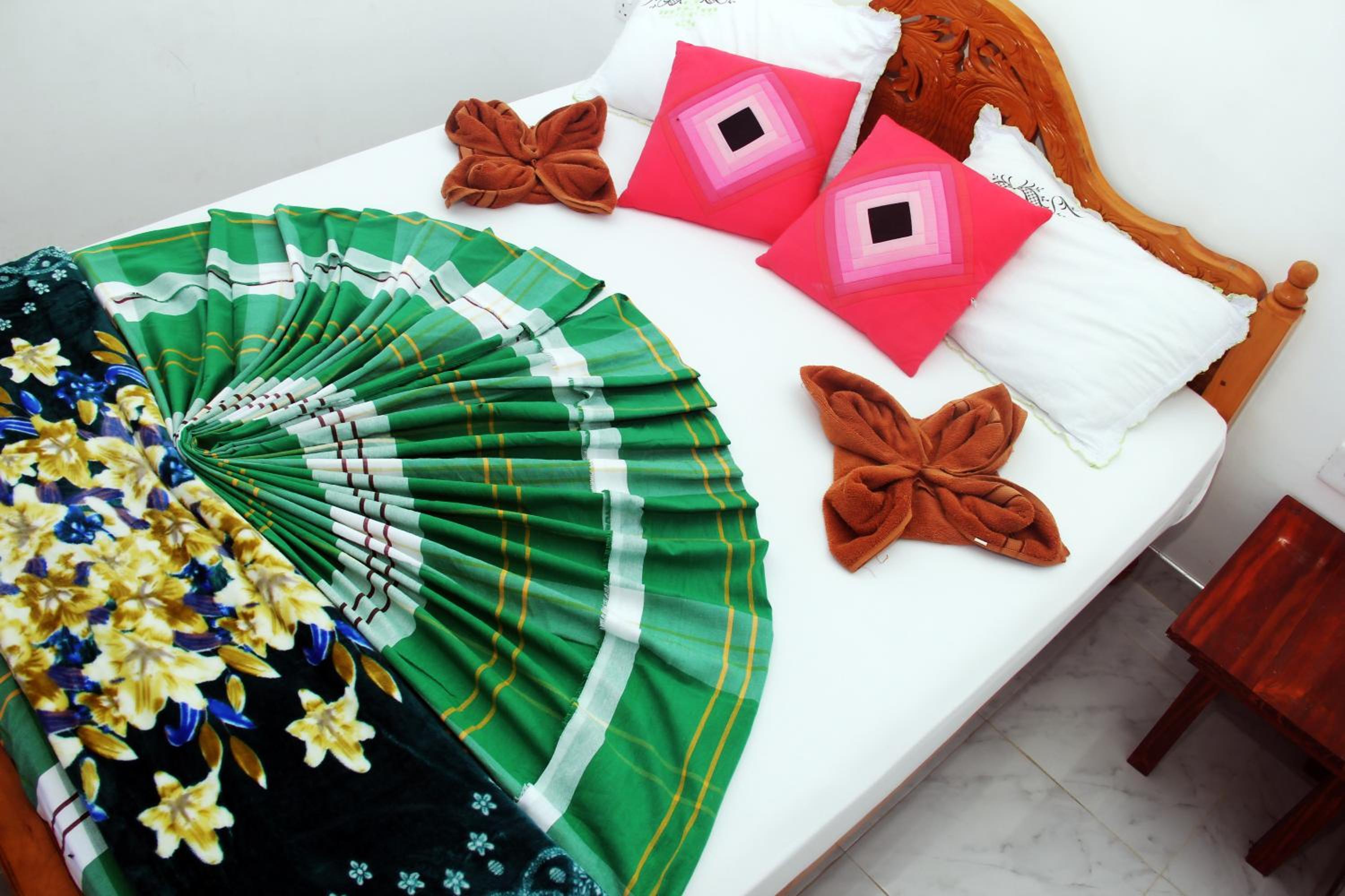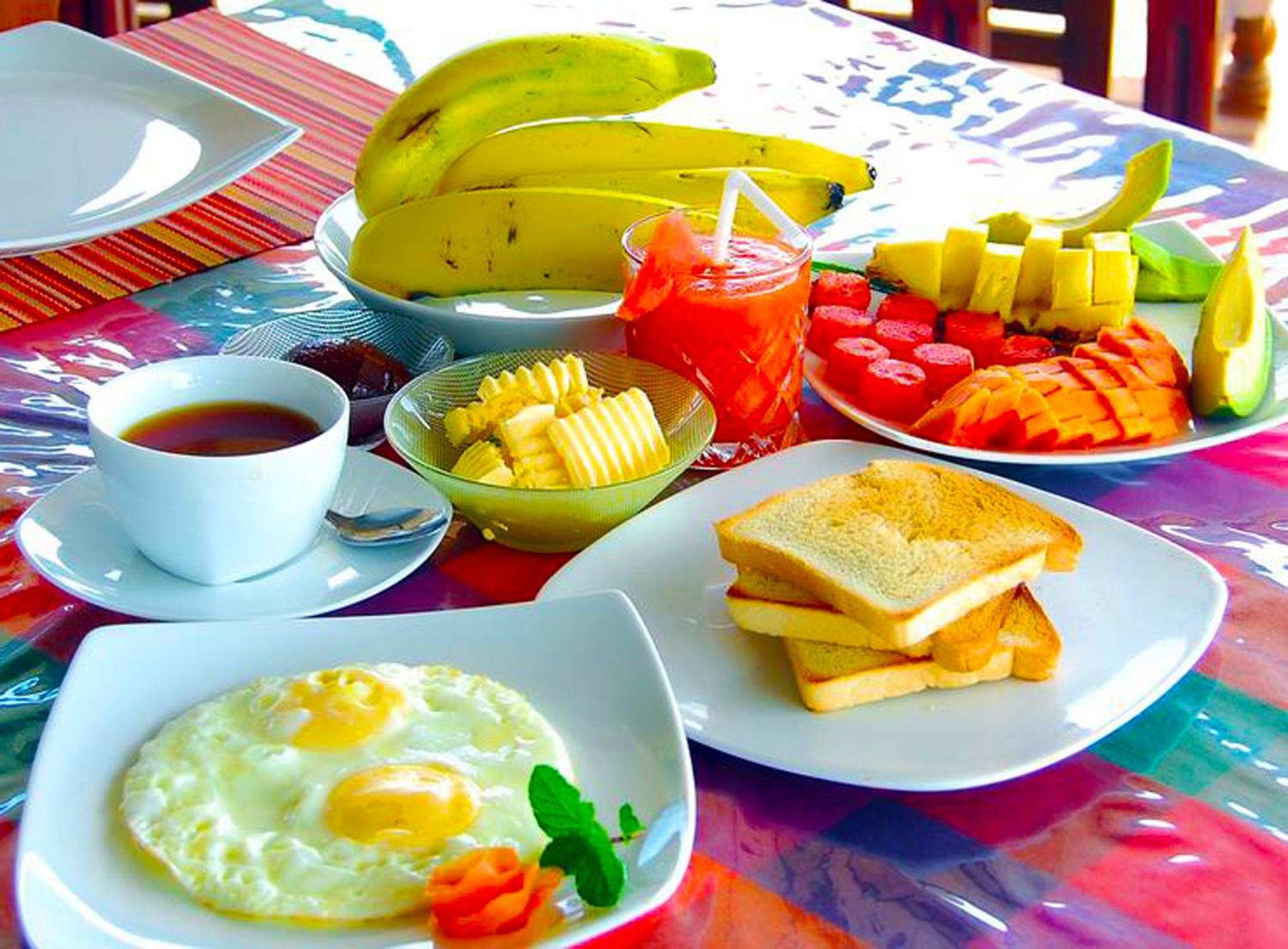 Proprietario fantastico, ci ha prenotato tuk tuk, dato informazioni ecc. Colazione ottima servita in una sala con una vista eccezionale.La guest house è in su una collina, ottimo perché non si è in centro, si scende a piedi in 15 minuti ma la sera si deve salire in tuk tuk. Noi avevamo la camera familiare, abbastanza grande.