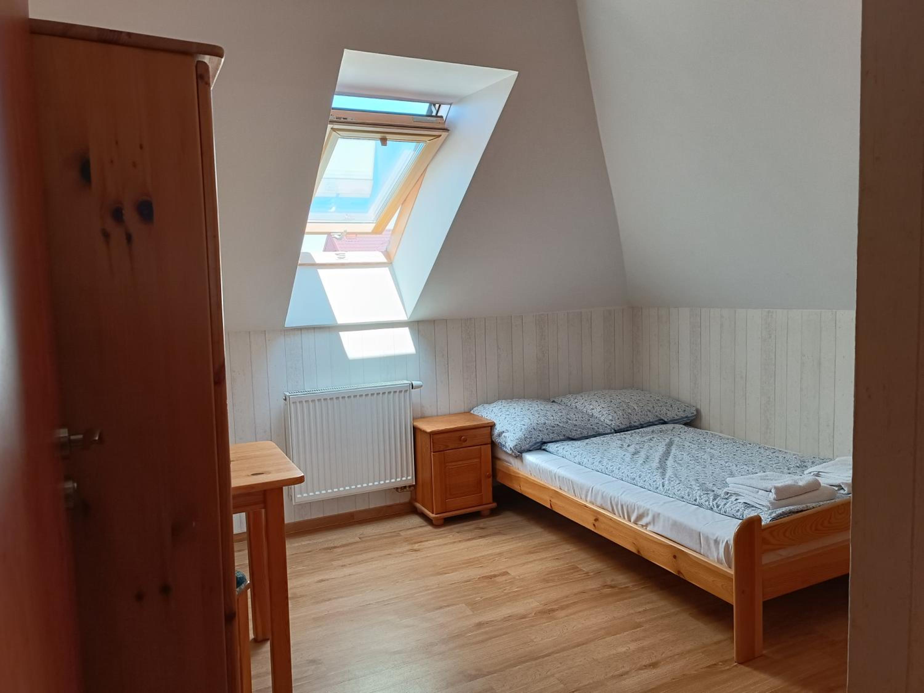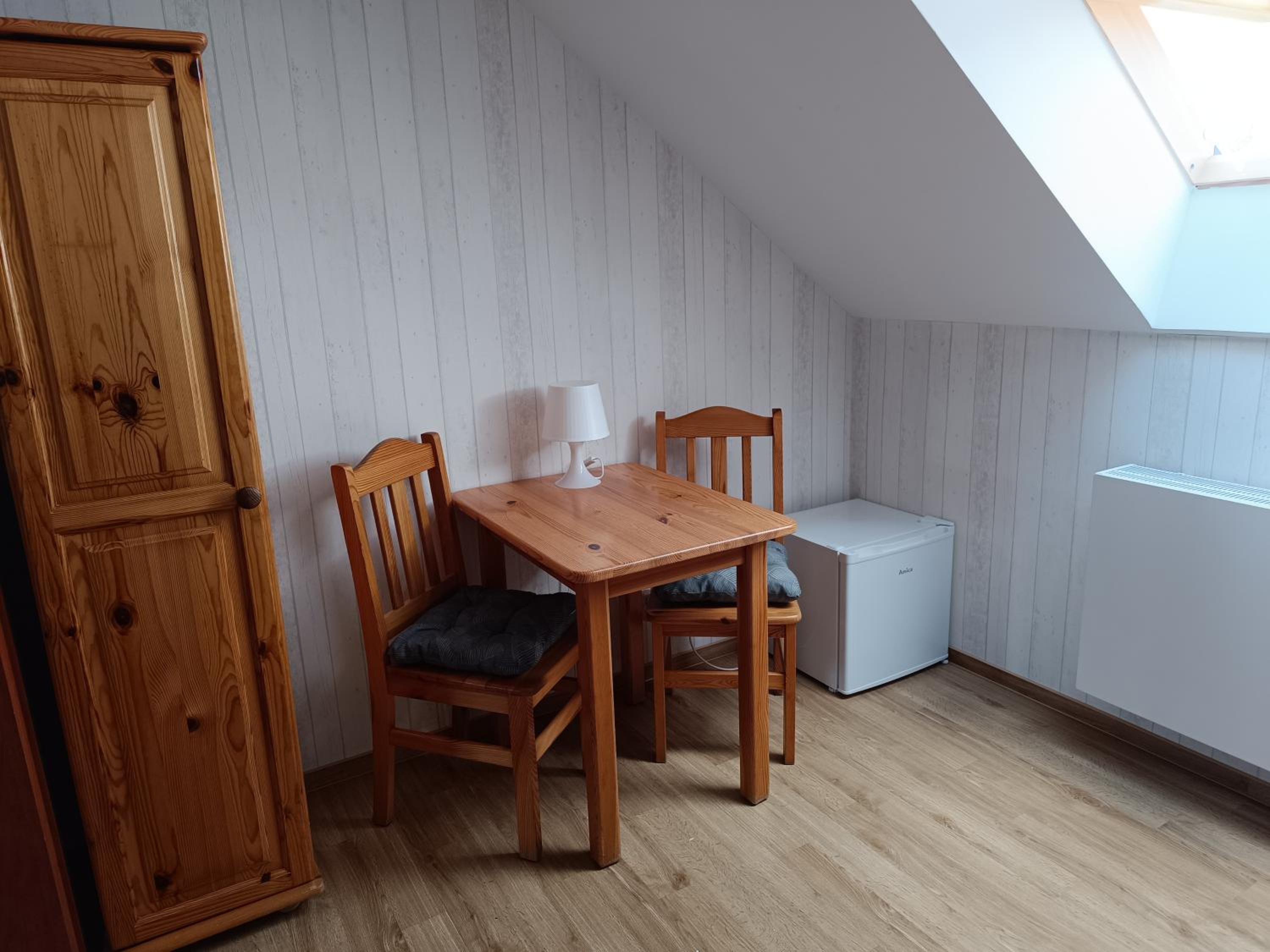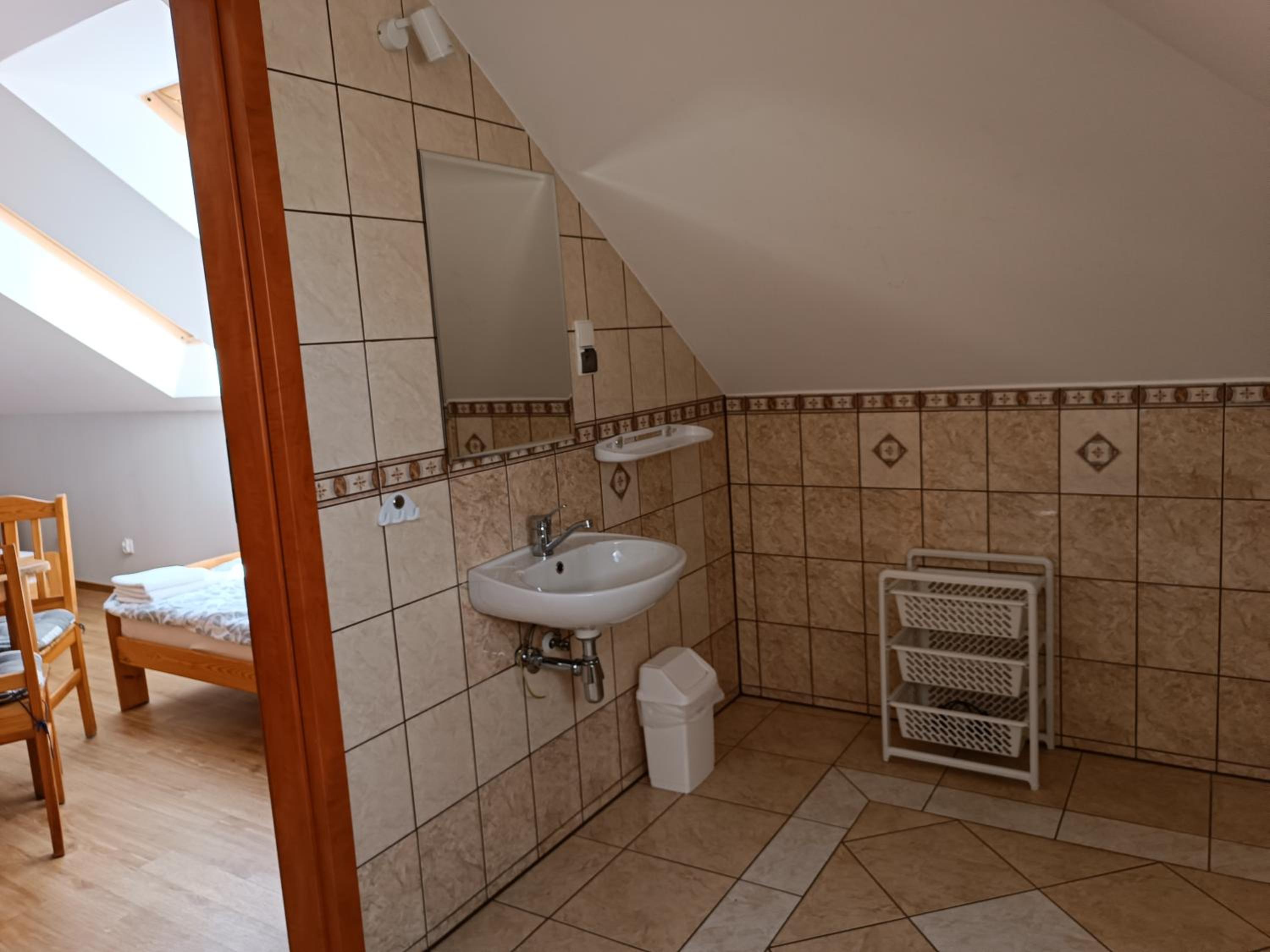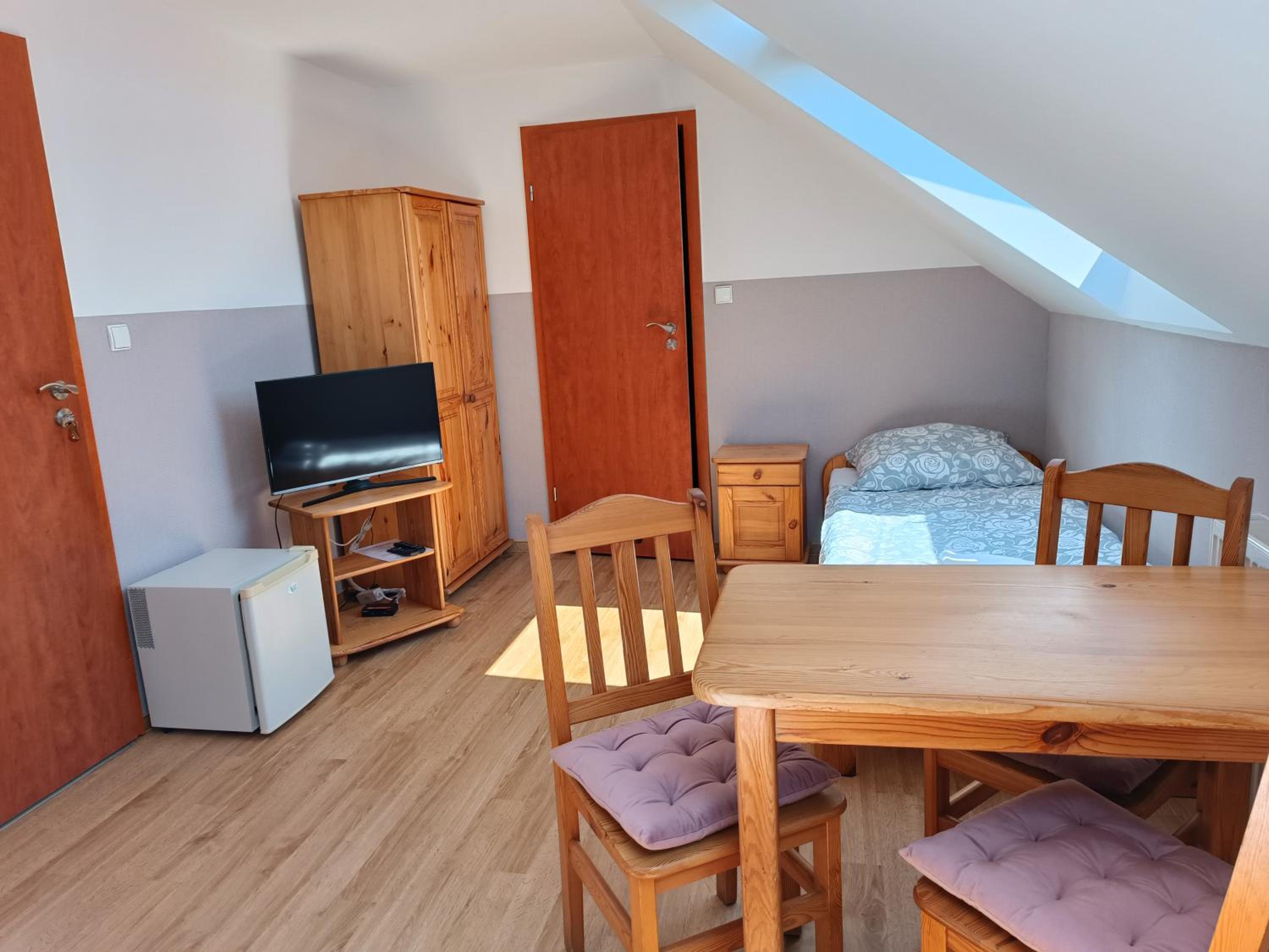Pokoik mały ale dla jednej osoby w zupełności wystarczający. Dla mnie na jeden nocleg idealny. Łazienka w pokoju. Dodatkowo telewizor i chłodziarka. Na korytarzu doskonale wyposażony aneks kuchenny. Gospodyni posiada bardzo sympatyczne pieski. Kontakt bezproblemowy a właścicielka bardzo miła. Jestem bardzo zadowolony z noclegu.