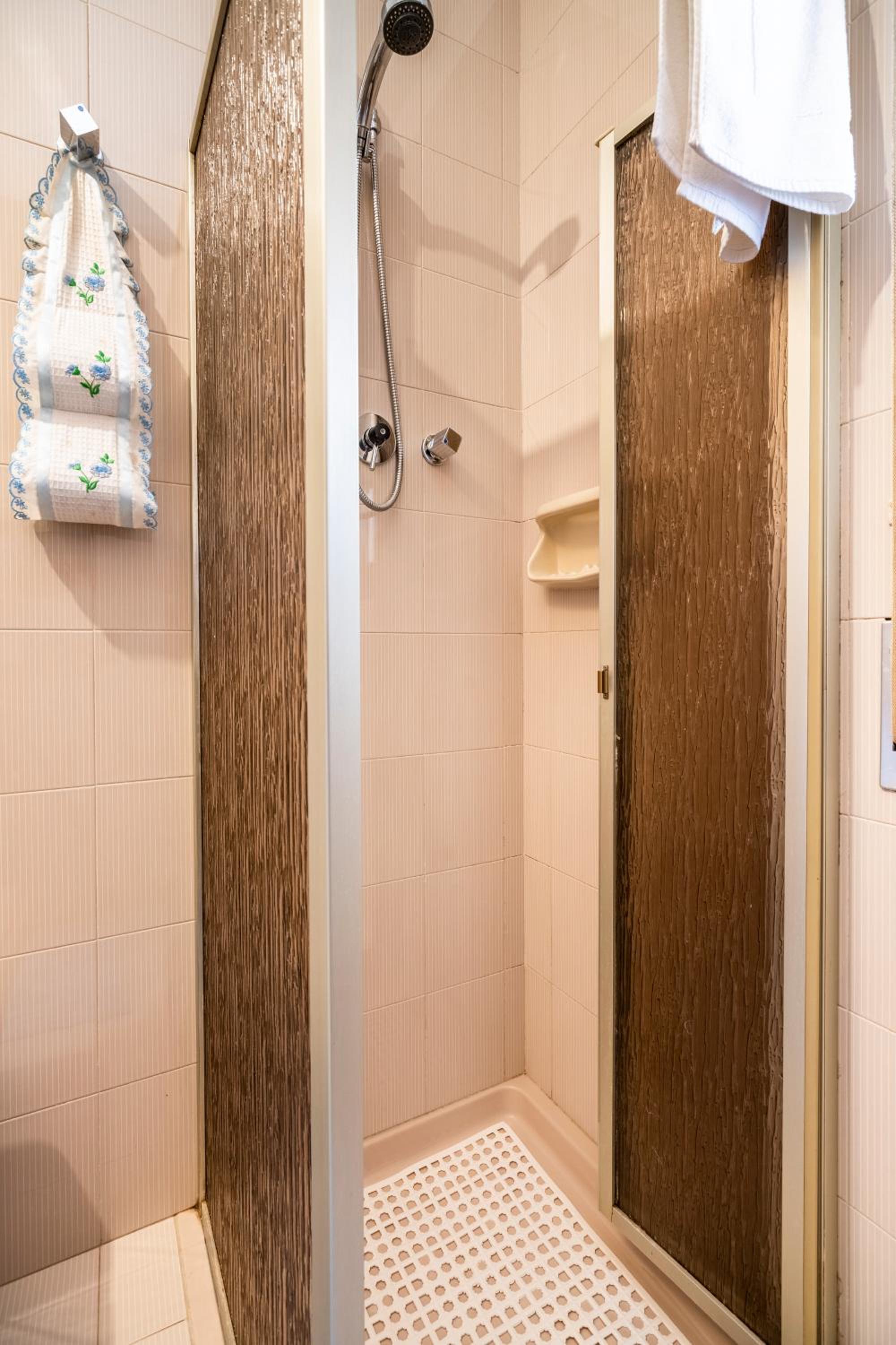 La salle de bain est un peu vieillotte et la personne qui assure son entretien devrait être plus méticuleuse. Nous avons trouvé des cheveux derrière les portes de la douche et beaucoup de poussière sur le chauffe serviettes.