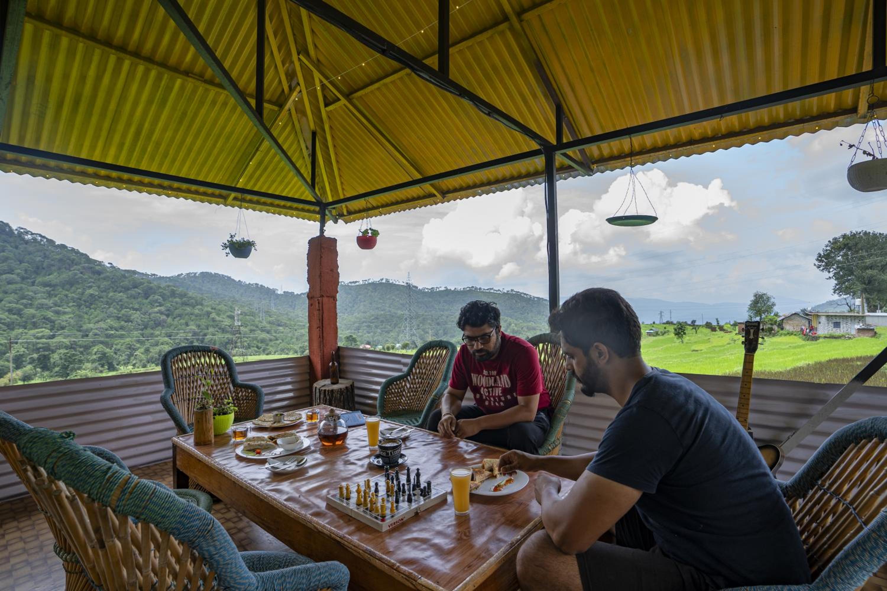 Experience breathtaking mountain views from Zostel Homes Harabhag, Jogindernagar. Enjoy your meals in the fresh air at the outdoor dining area.