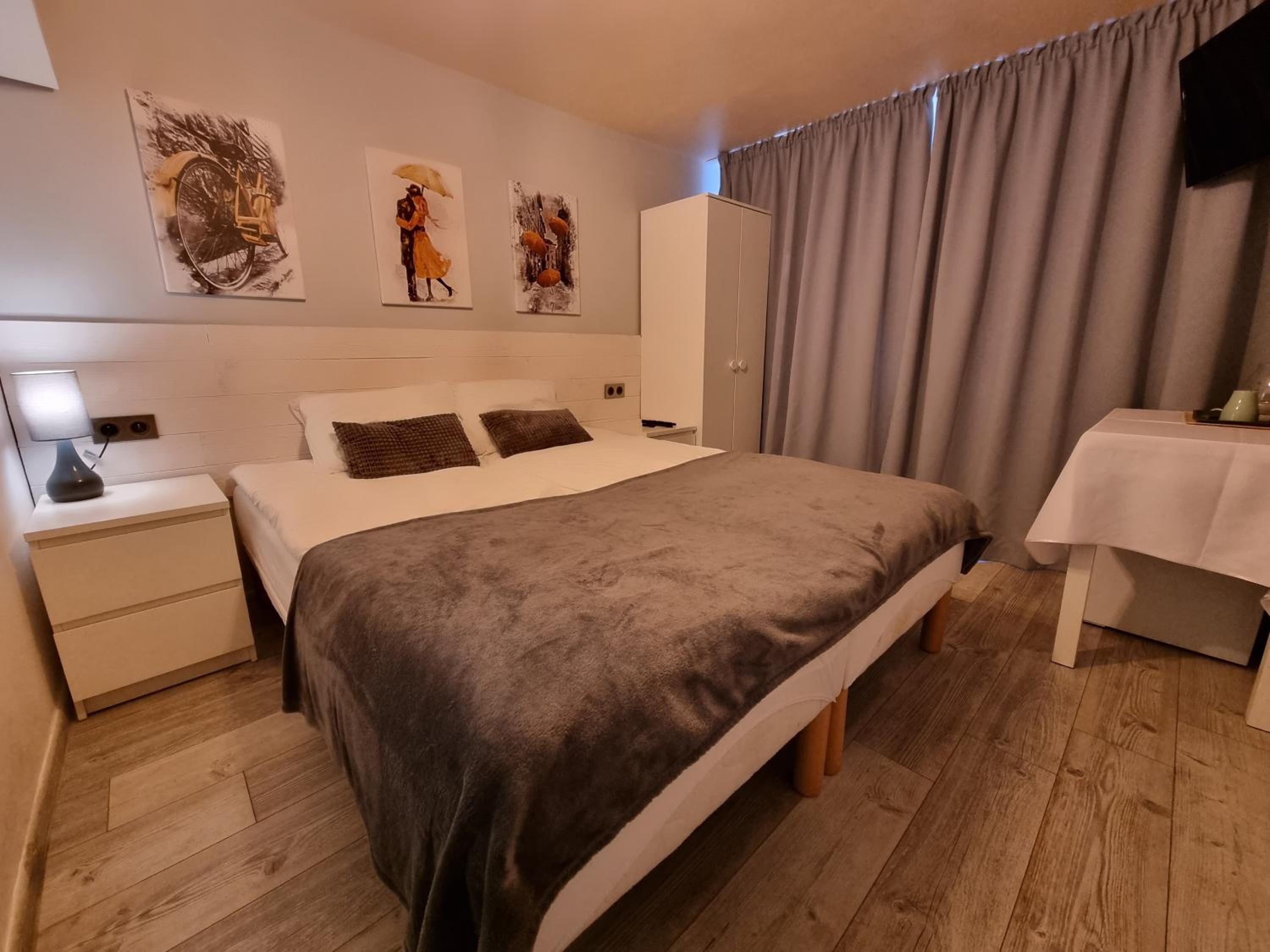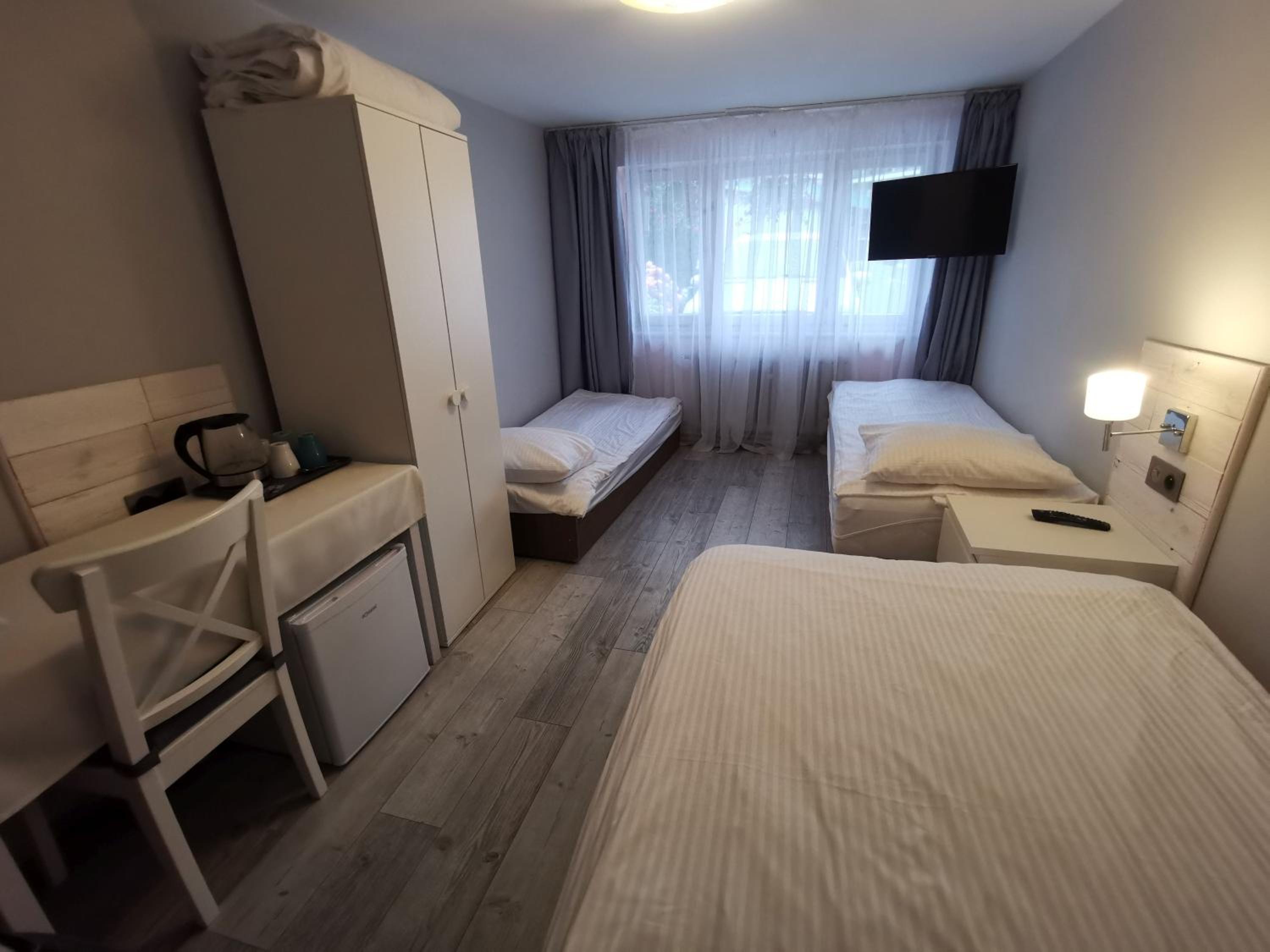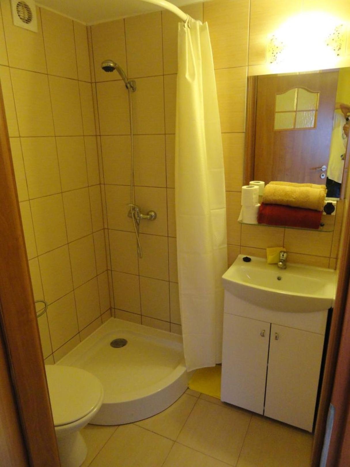 Łazienka źle zorganizowana.brak suszarki.Pod prysznicem zasłona rodem z PRL-u i za krótka.Mały pokoik.Cienki materac na łóżku dwuosobowym przez który czuć było deski.
