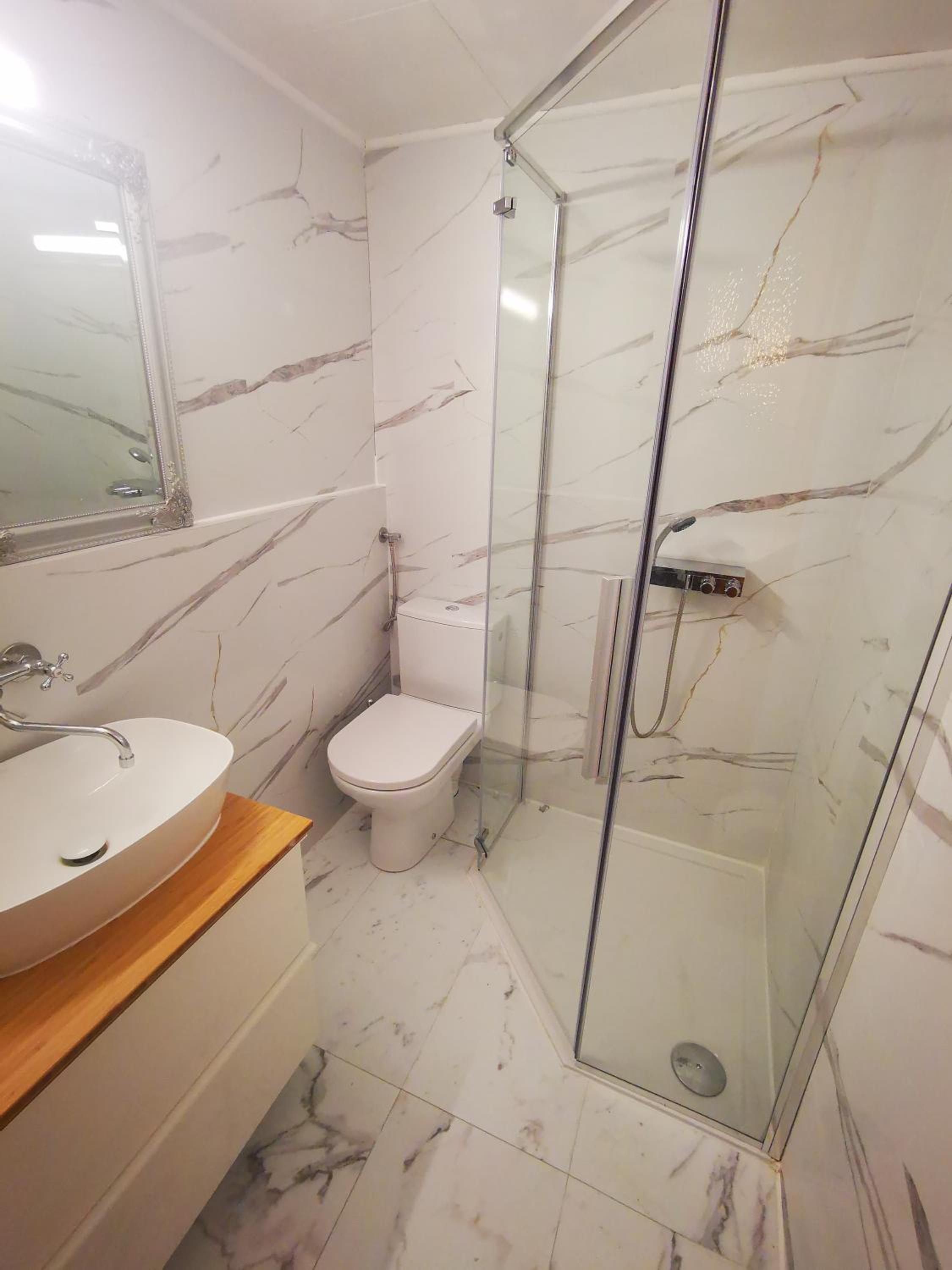 polki nie przykręcone do ściany więc co kolwiek się postawiło to odpadała . Bateria pod prysznicem zepsuta brak możliwości ustawienia wody ciepłej lub zimnej albo lodowata albo wrzątek