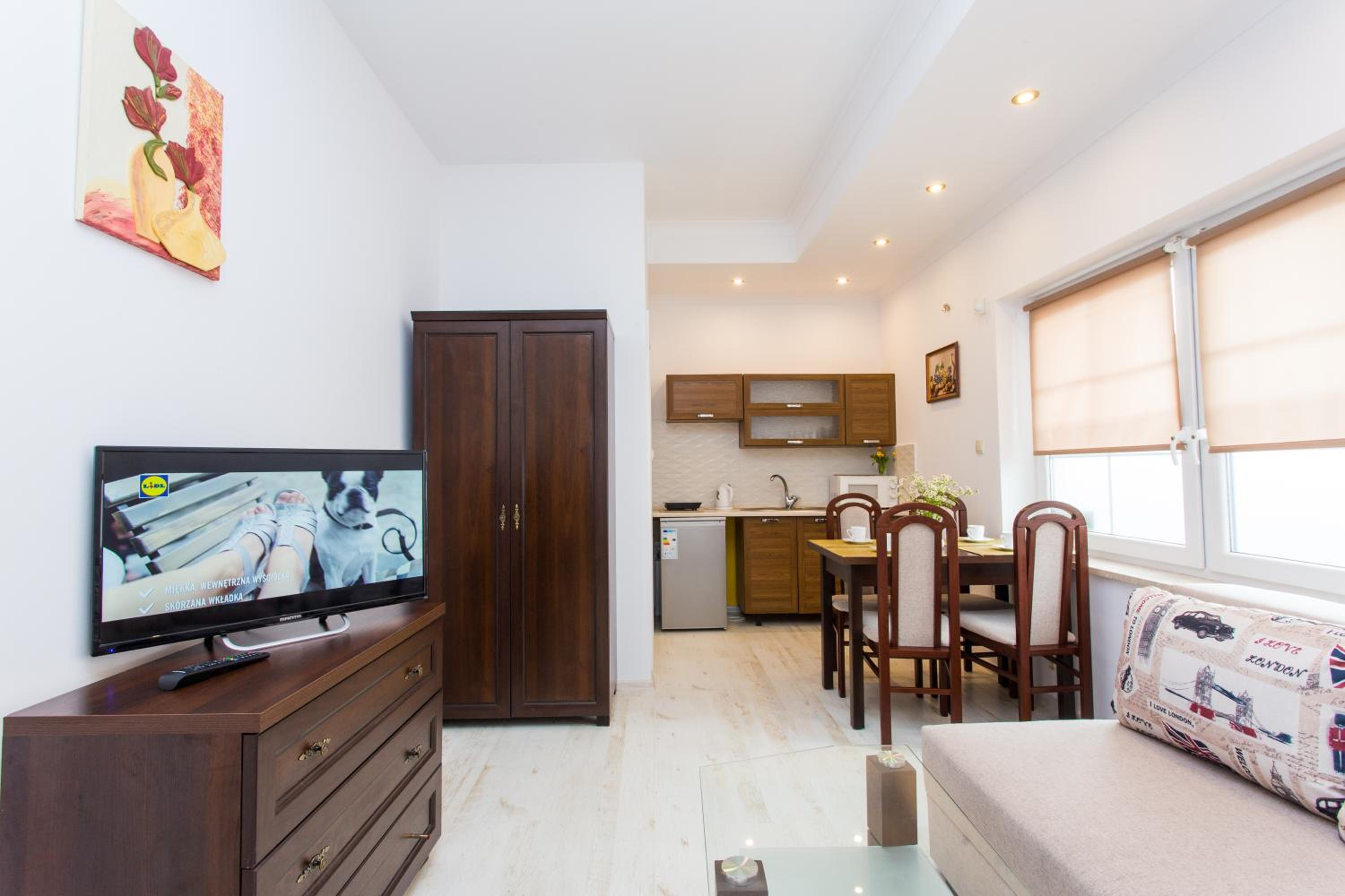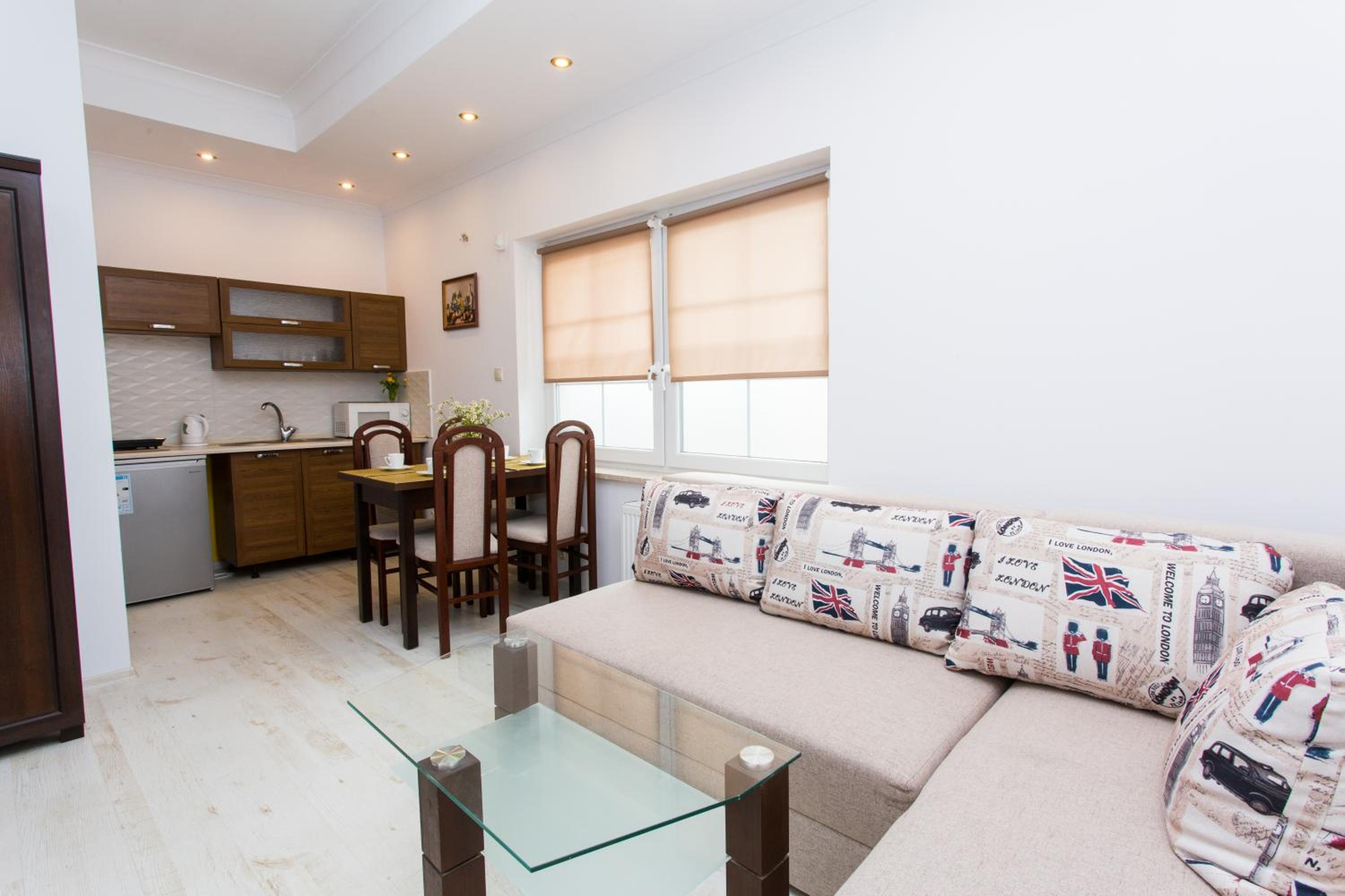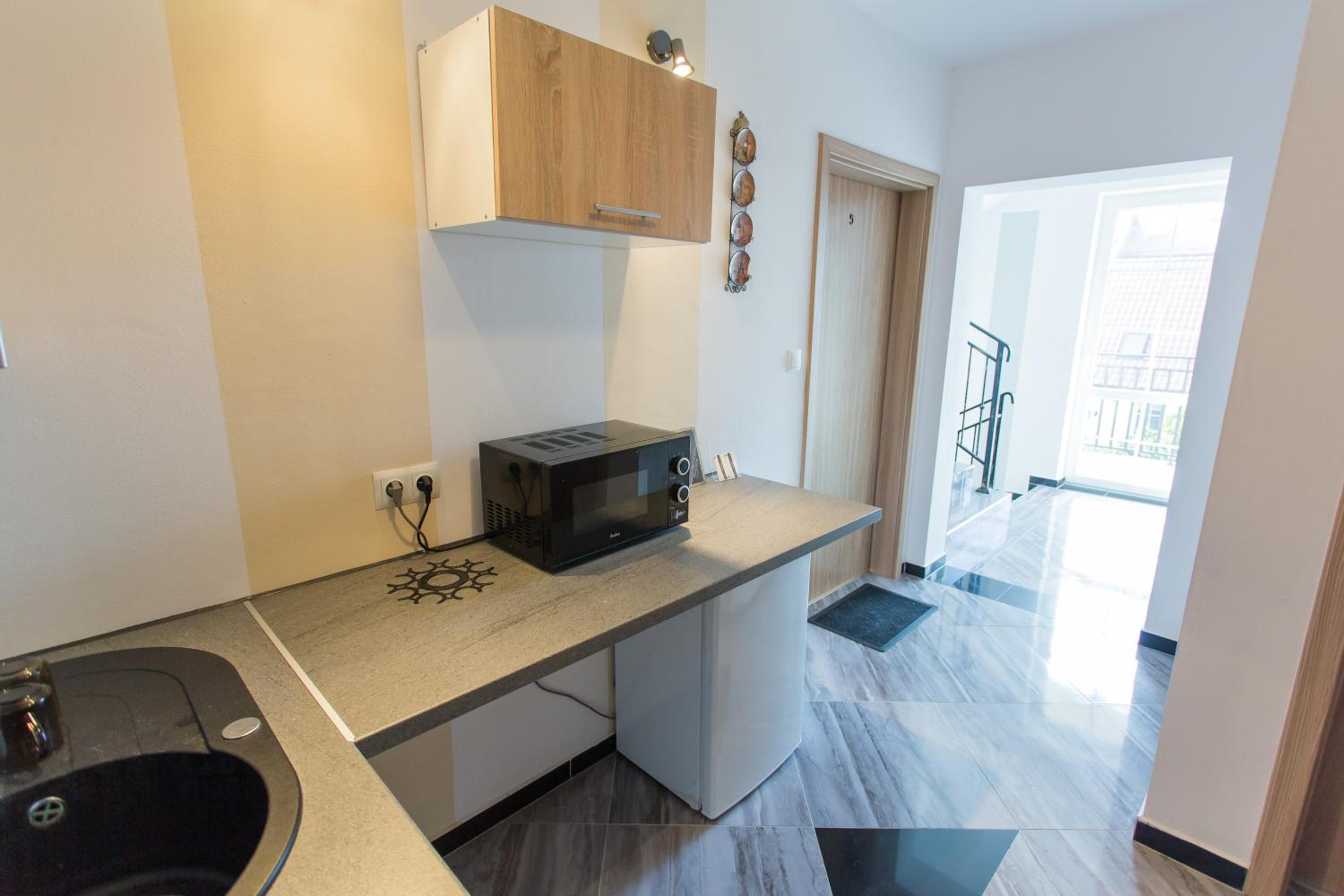 Zadbany, czysty apartament, łóżka wygodne, wyposażenie kuchni pozwala zrobić bez problemu śniadanie czy kolację. Wyjście na ogródek było szczególnie poręczne dla nas ze względu na rowery, który tam trzymaliśmy.