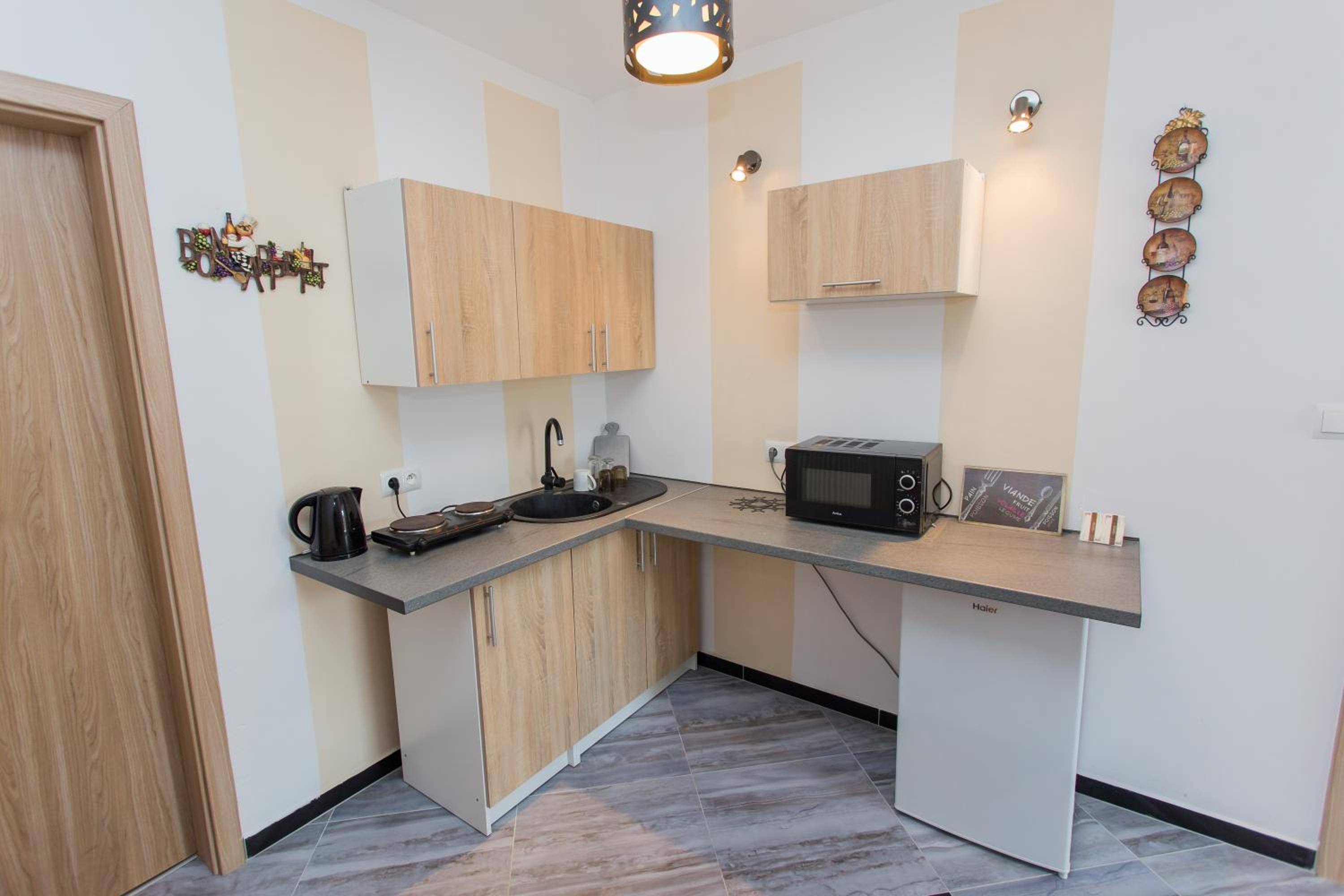 Convenient Amenities: Fridge and Kettle