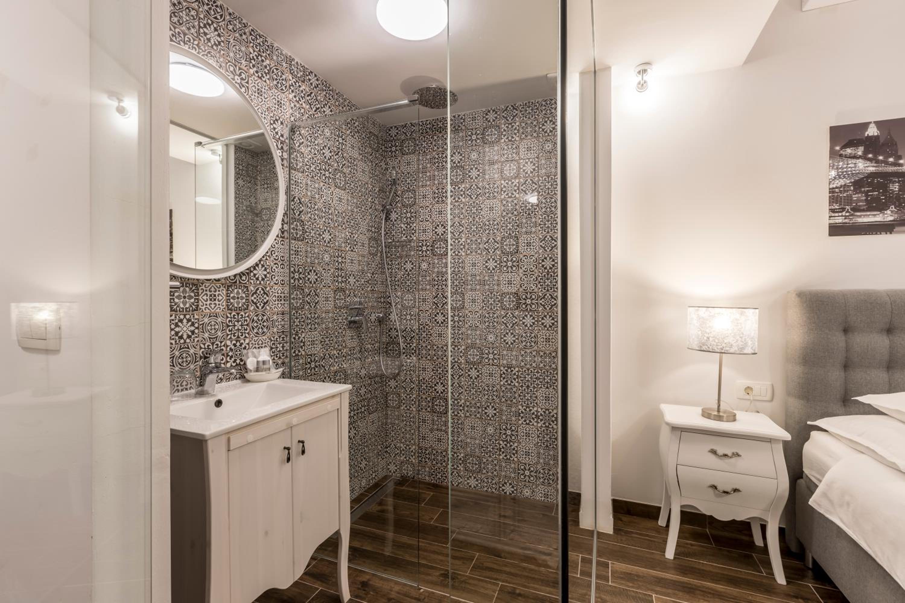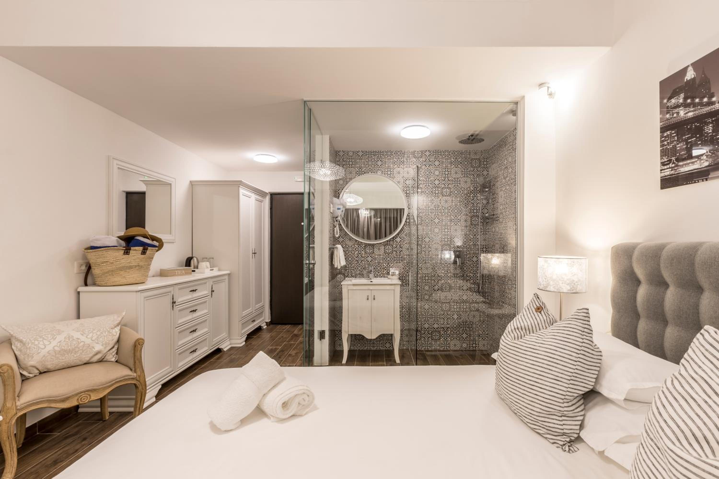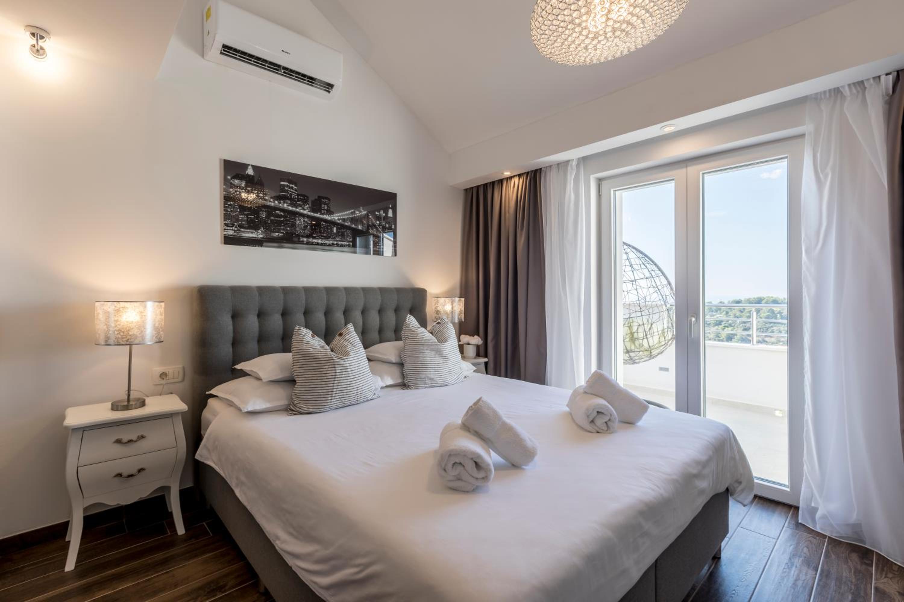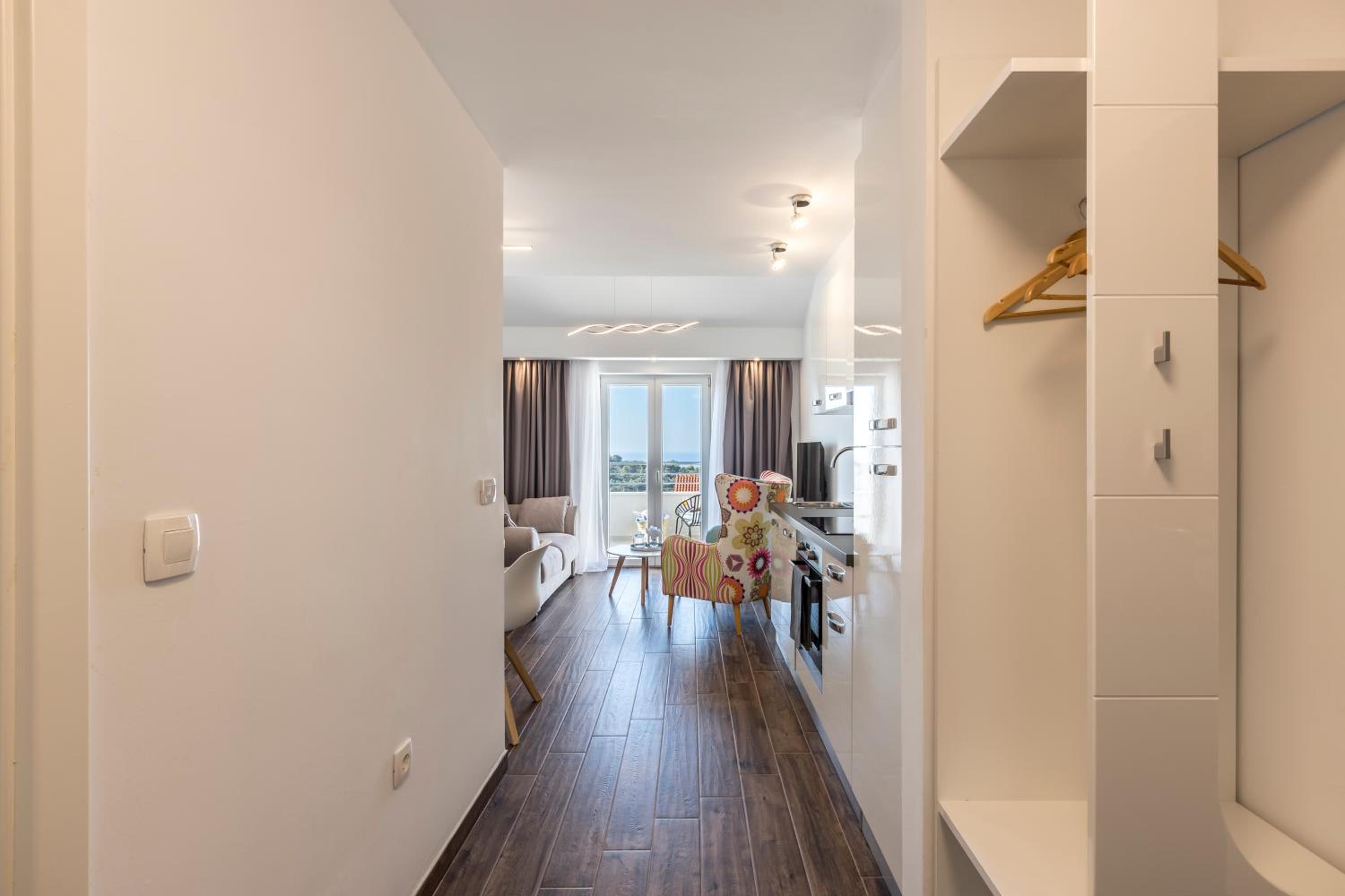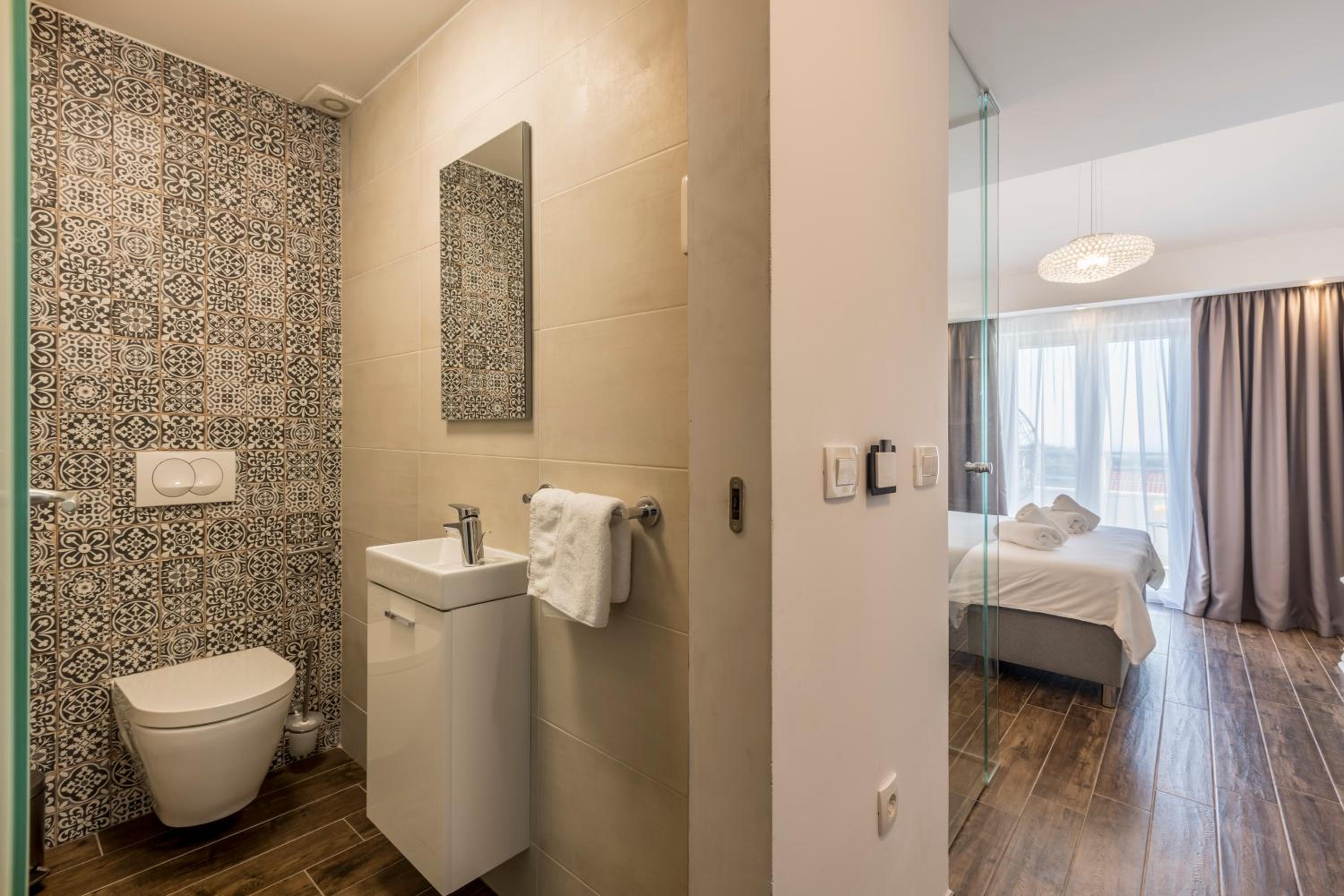 Enjoy stunning sea views from your private balcony at Hvar de luxe apartments 1. Each room is elegantly decorated and features modern amenities, including a flat-screen TV and a mini bar.