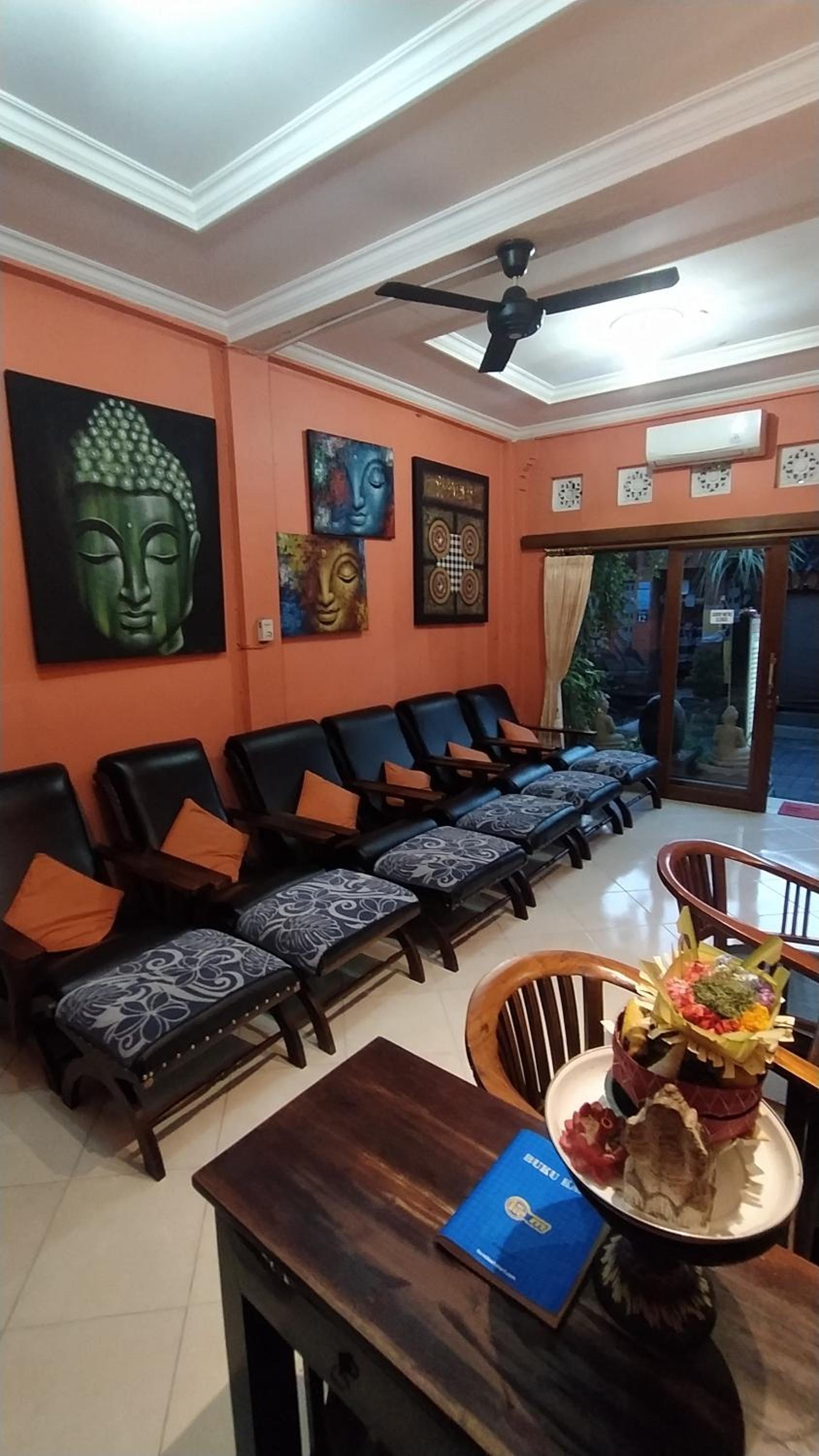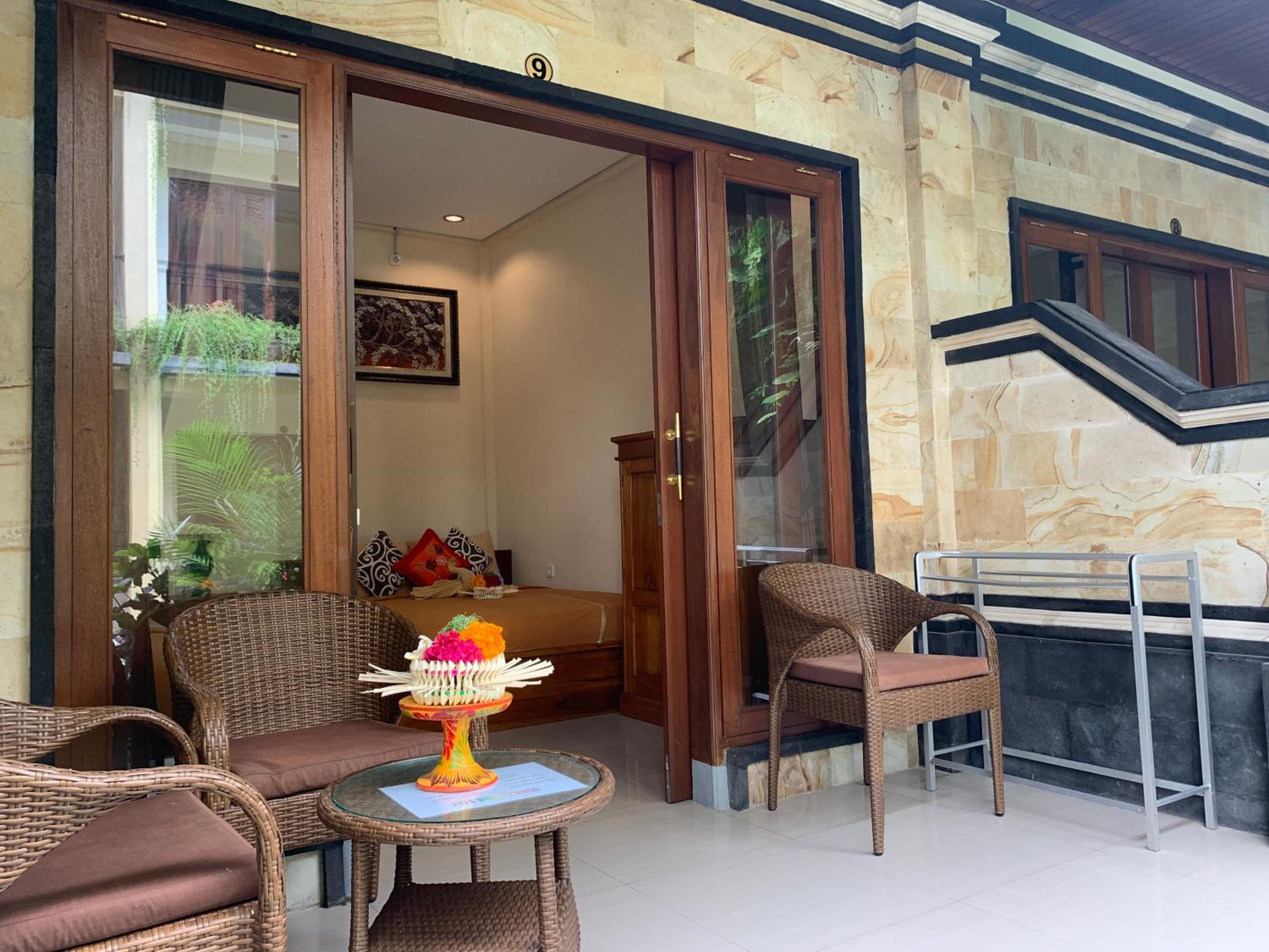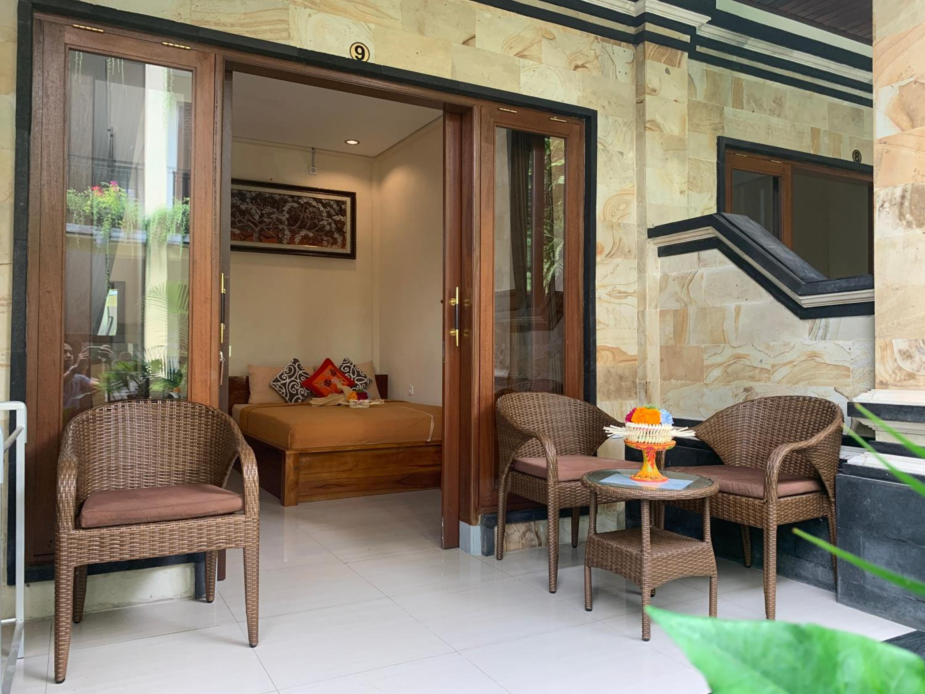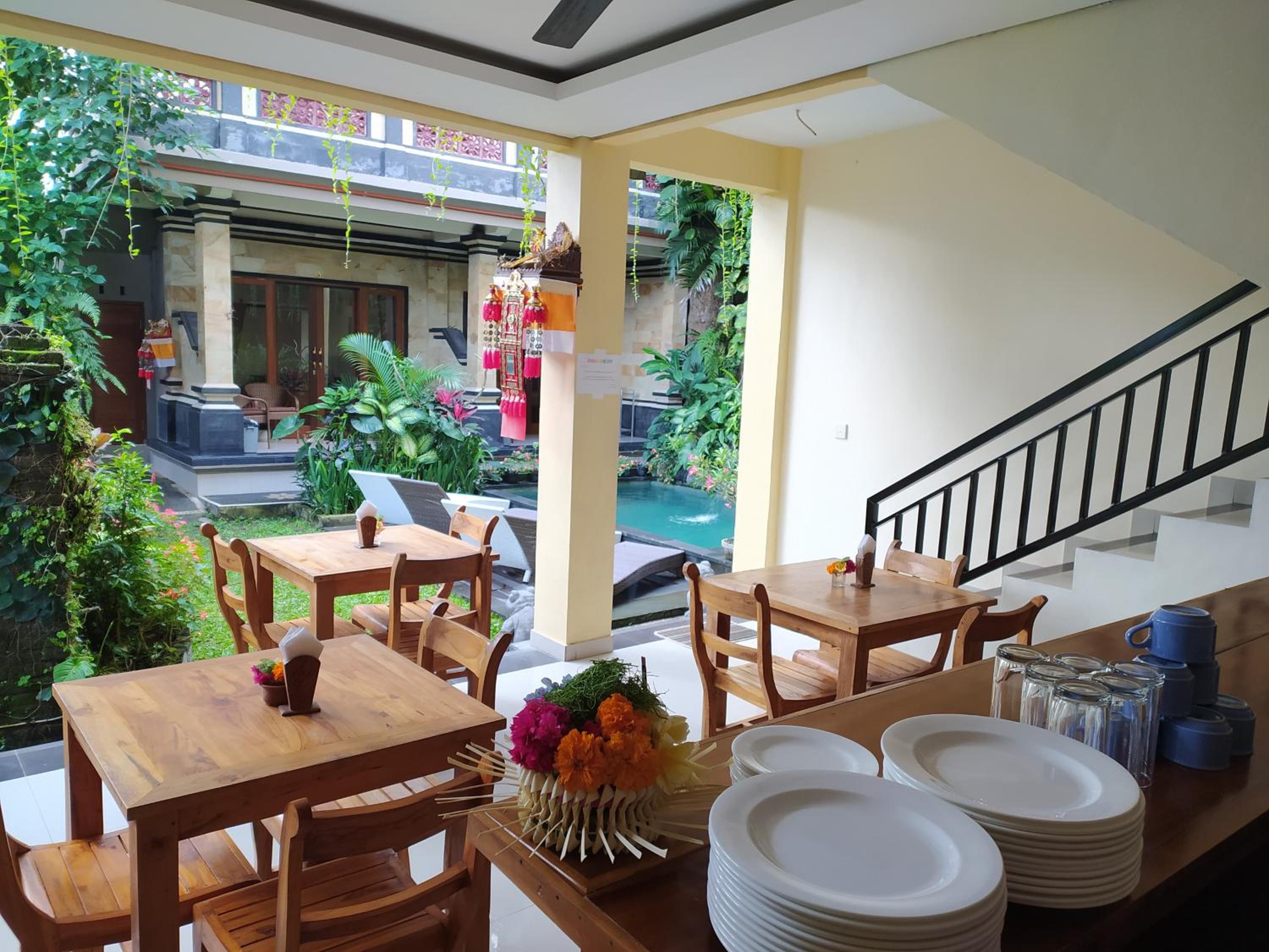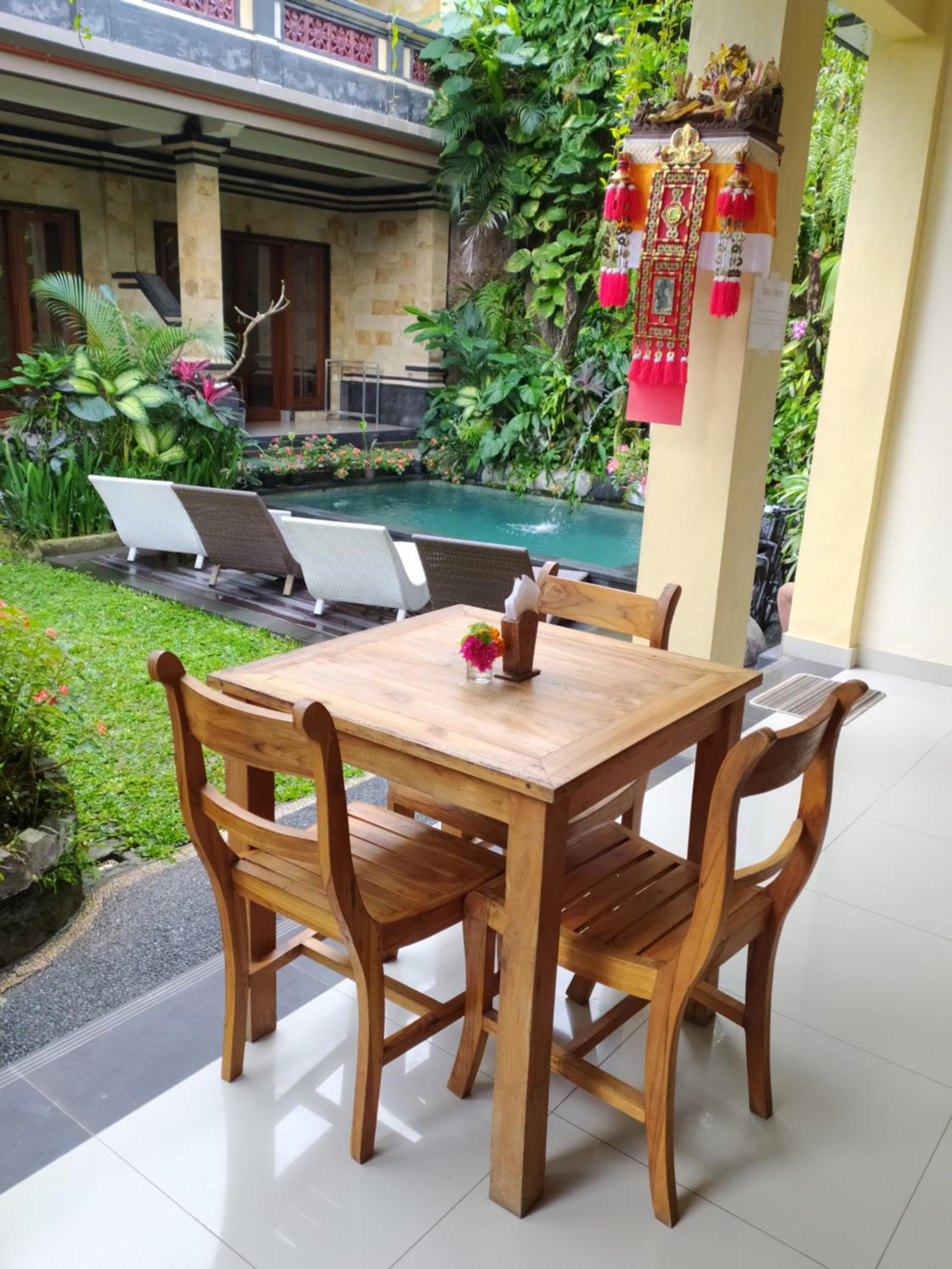 La ubicación en el centro de ubud. El personal muy amable. Nos ayudaron a contratar vía WhatsApp taxi para los días que les pedimos. El desayuno no tiene muchas opciones pero es bueno. La piscina no la disfrutamos por qué los días no acompañaban pero era una pasada. El personal es muy amable.