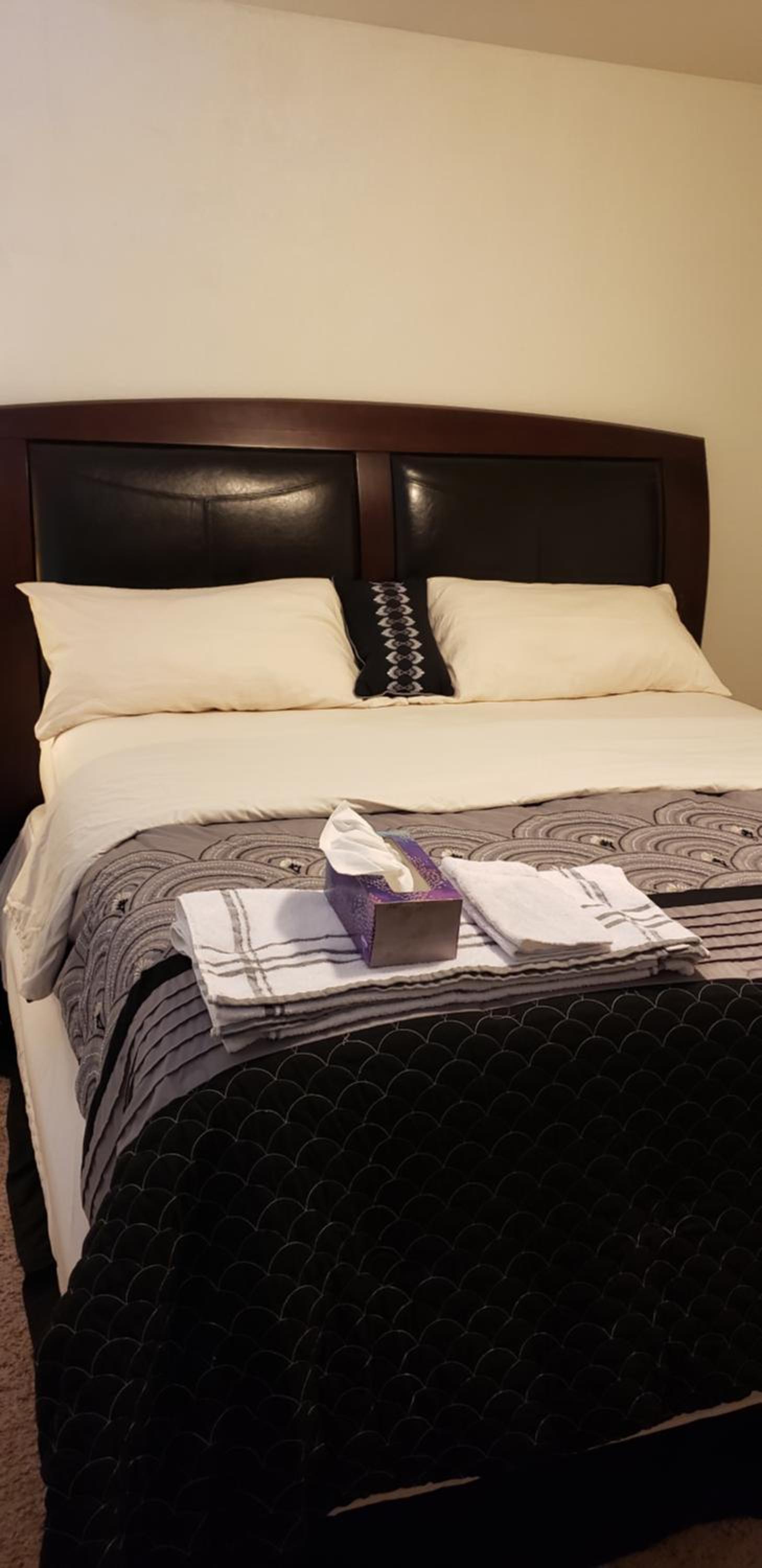 The bed was nice big and comfy and the owner was super friendly. Was nice to have a bathroom and my room and it was a nice big screen tv.