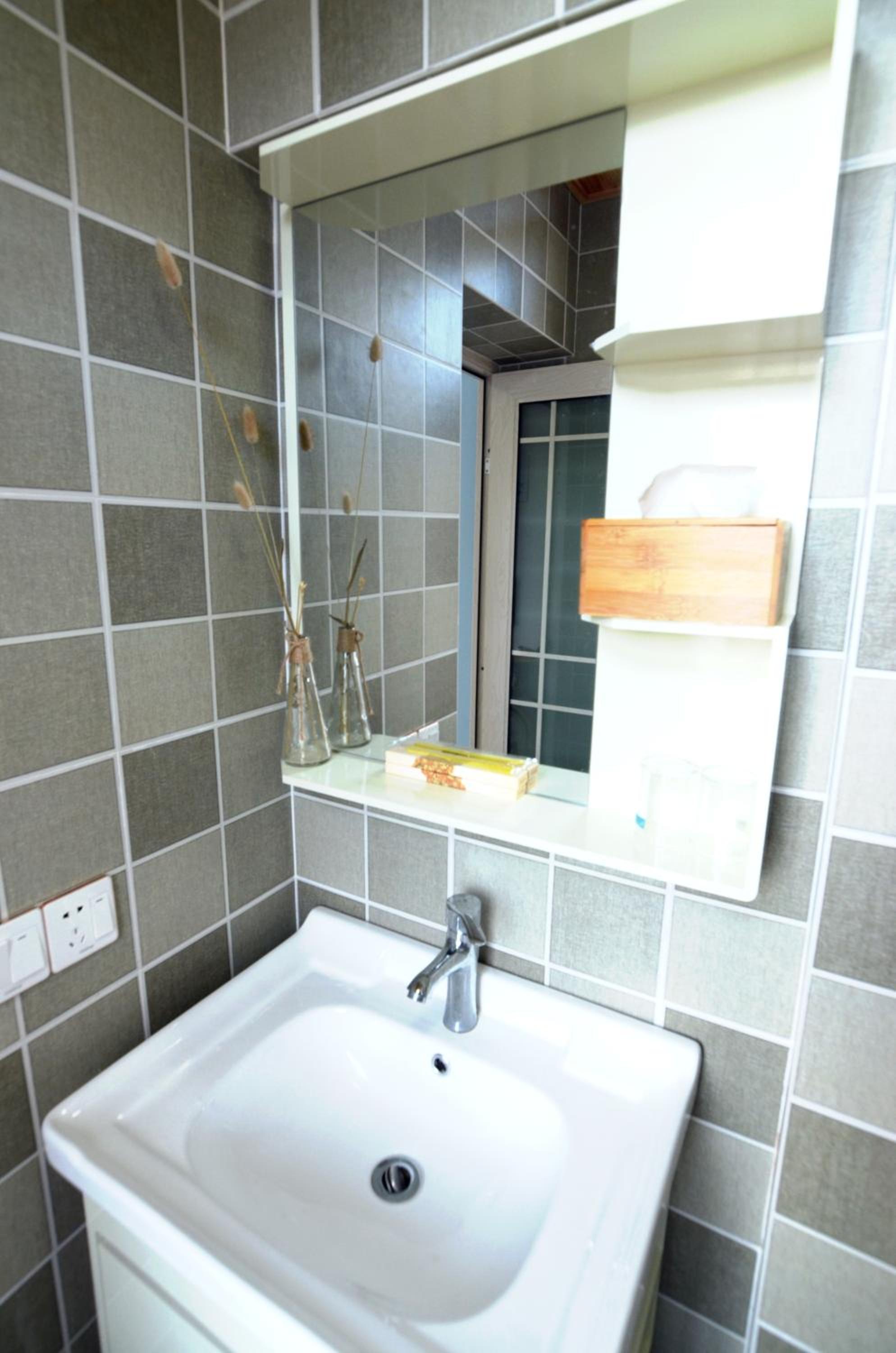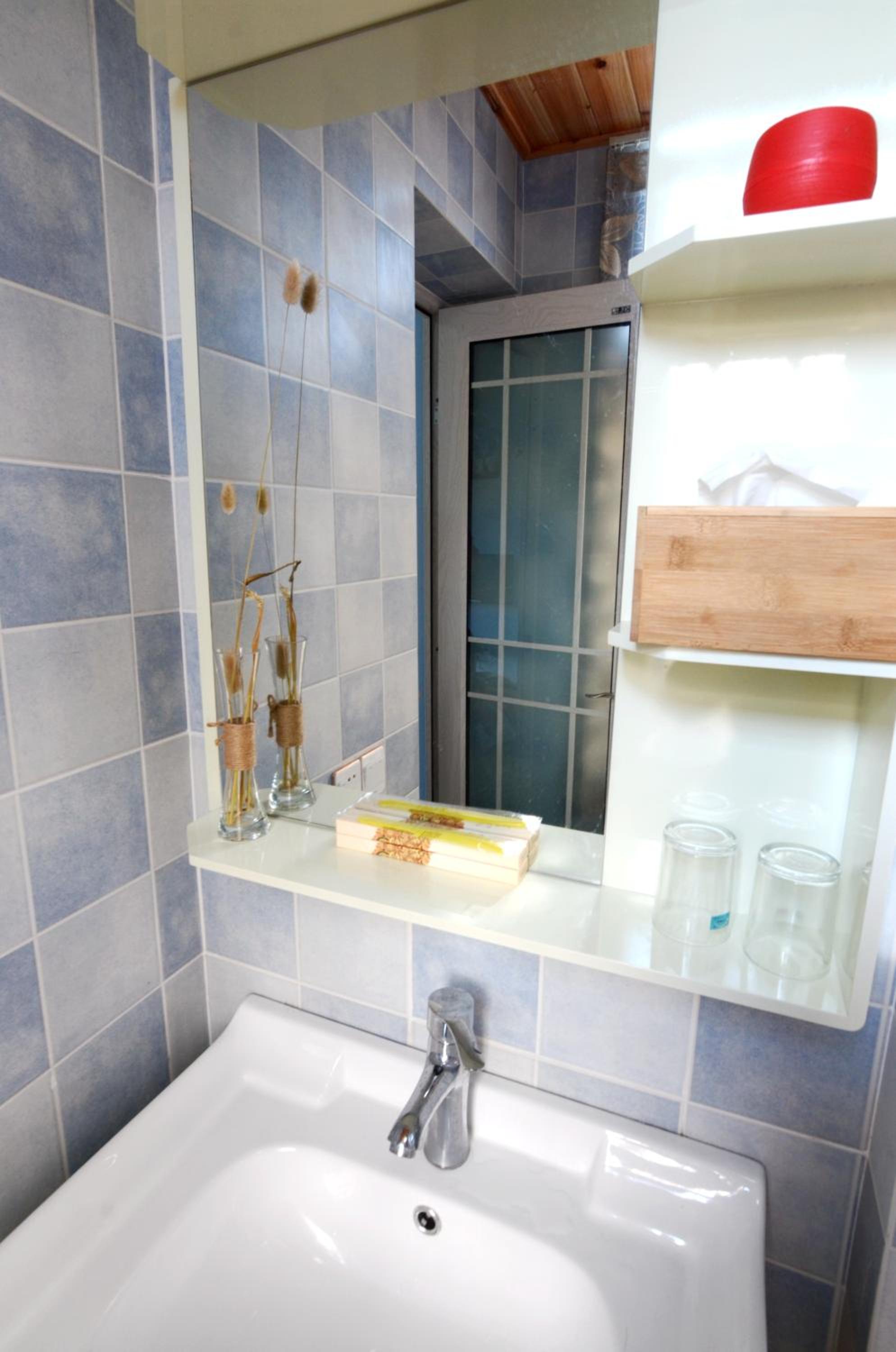 Small bathroom and sink was blocked.
