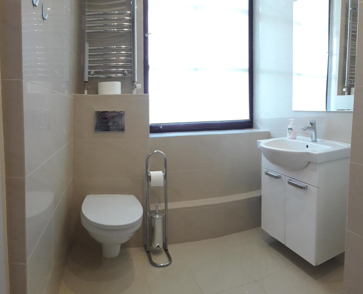 Lokalizacja w spokojnej okolicy, lecz nadal blisko do głównej ulicy z przystankiem autobusowym. Duża kabina prysznicowa