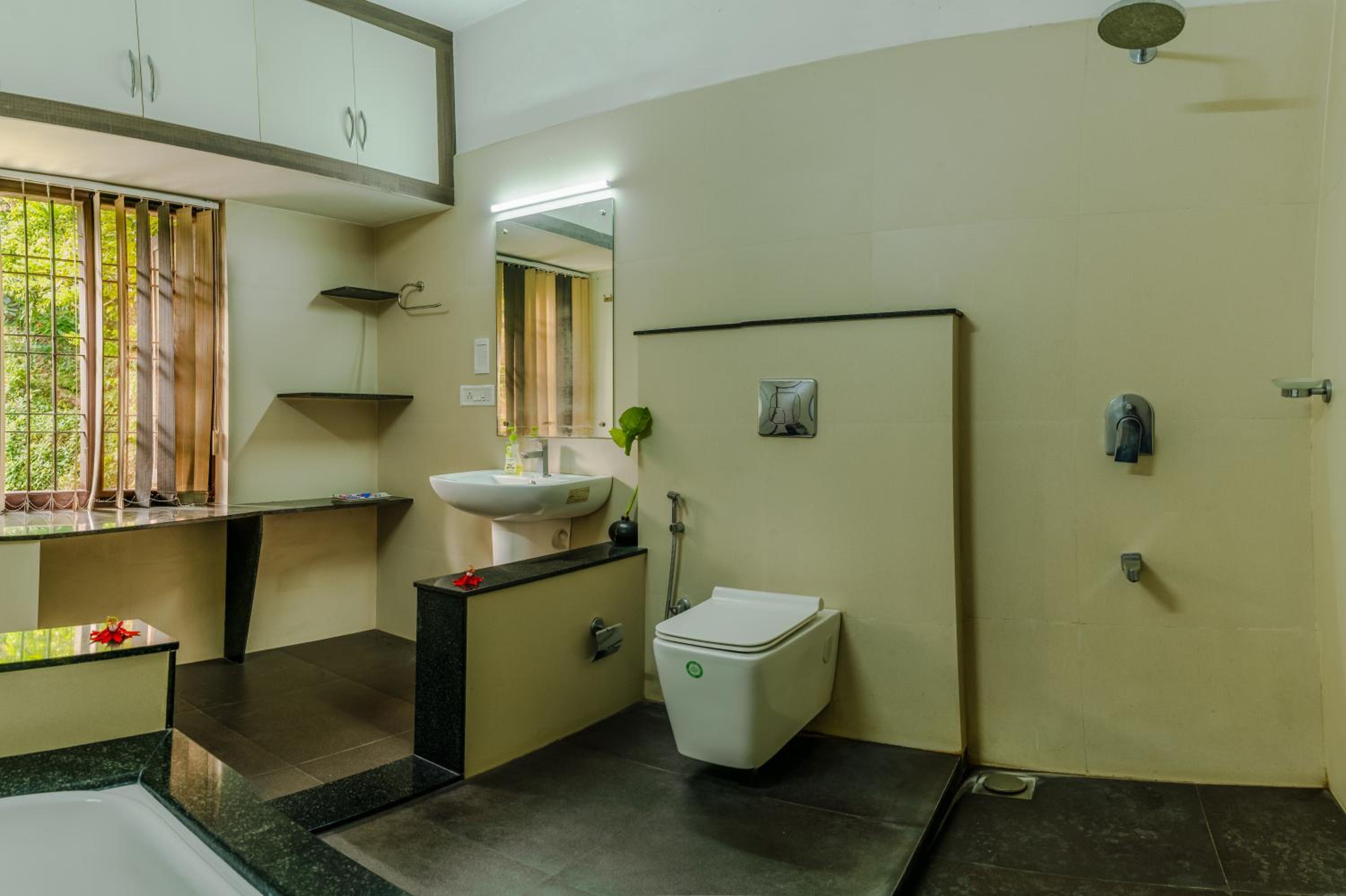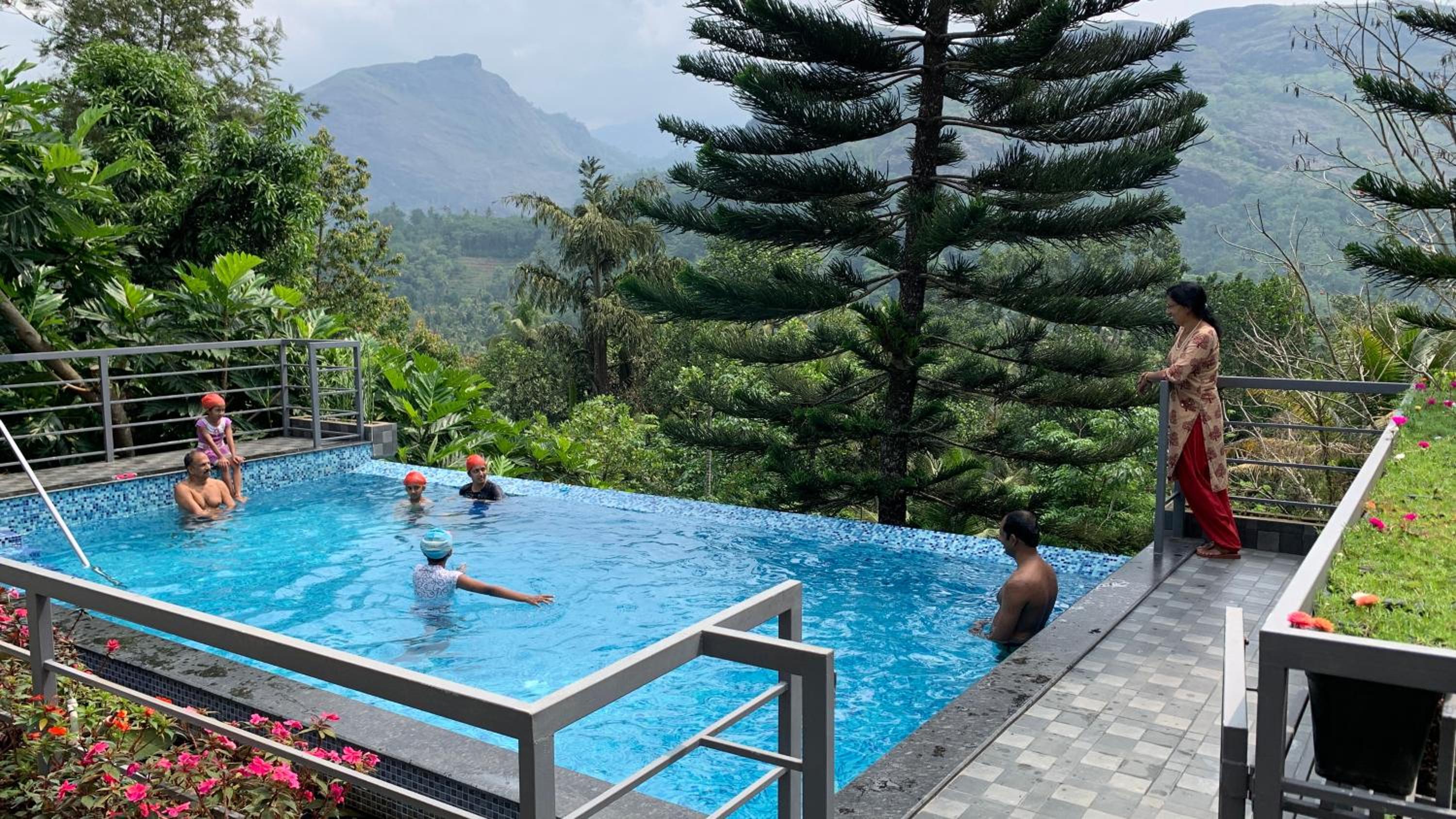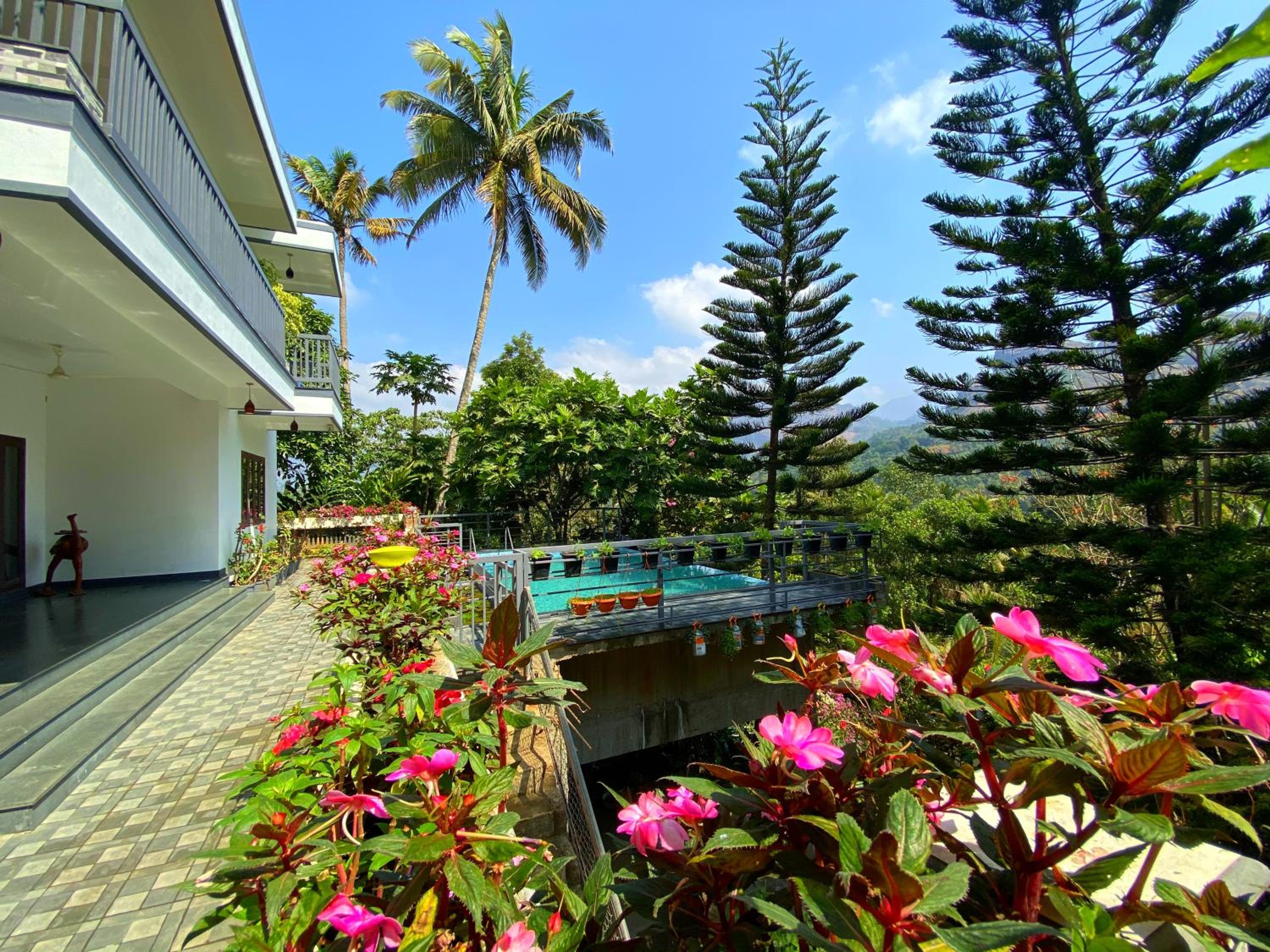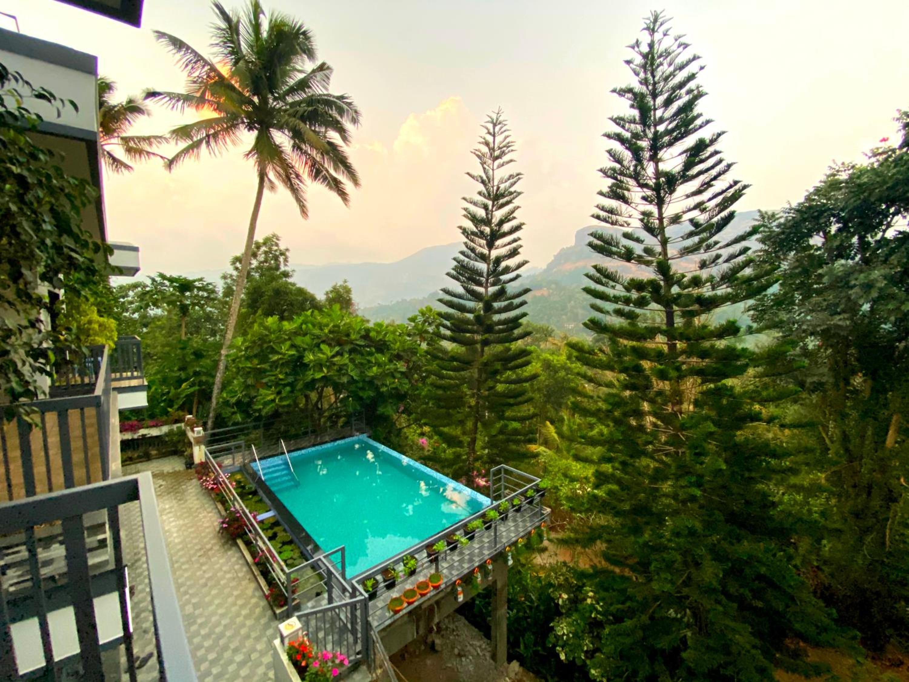 Fabulous location with incredible views of hills and trees. A beautiful pool. The climate in the hills is so comfortable, not humid at all. We were upgraded before our arrival to a very large room with a king size bed and slept so well. Benny and his lovely family hosted us superbly. The driver he arranged to meet us at Cochin Airport and later to drive us to Varkala was excellent. The home cooked Indian breakfast is a treat. Benny loves his trees and plants and gave us a tour of all the plants and their uses which everyone enjoyed. We were very sorry to leave and would definitely want to return.