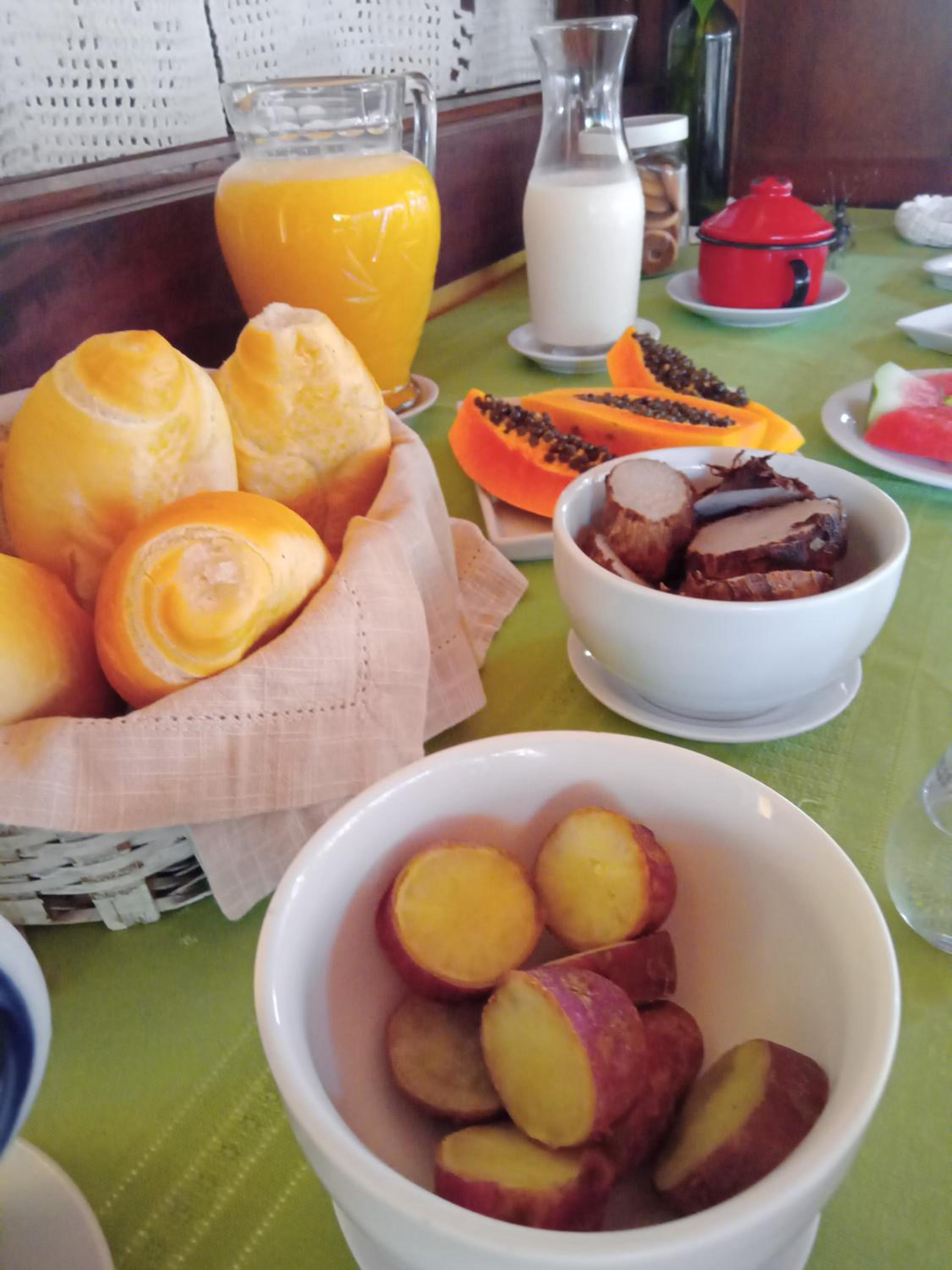 Café da manhã é ótimo, a casa é super limpinha e não tem barulho na vizinhança.