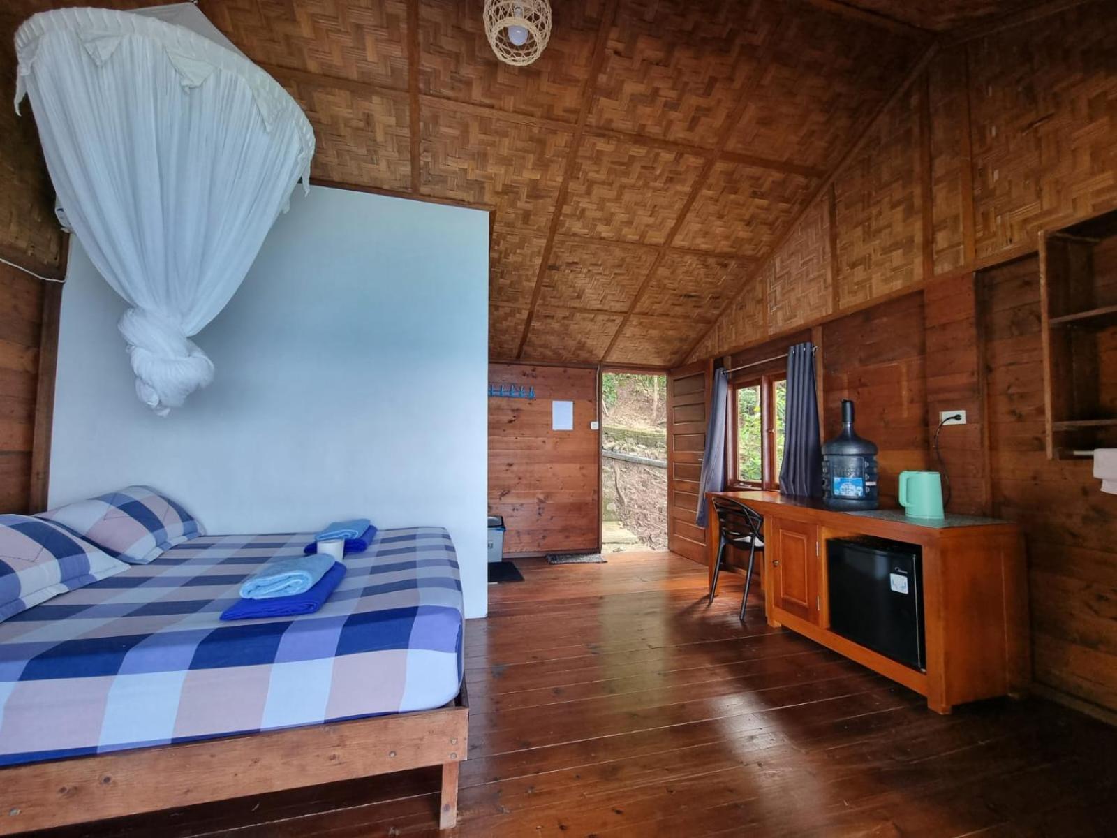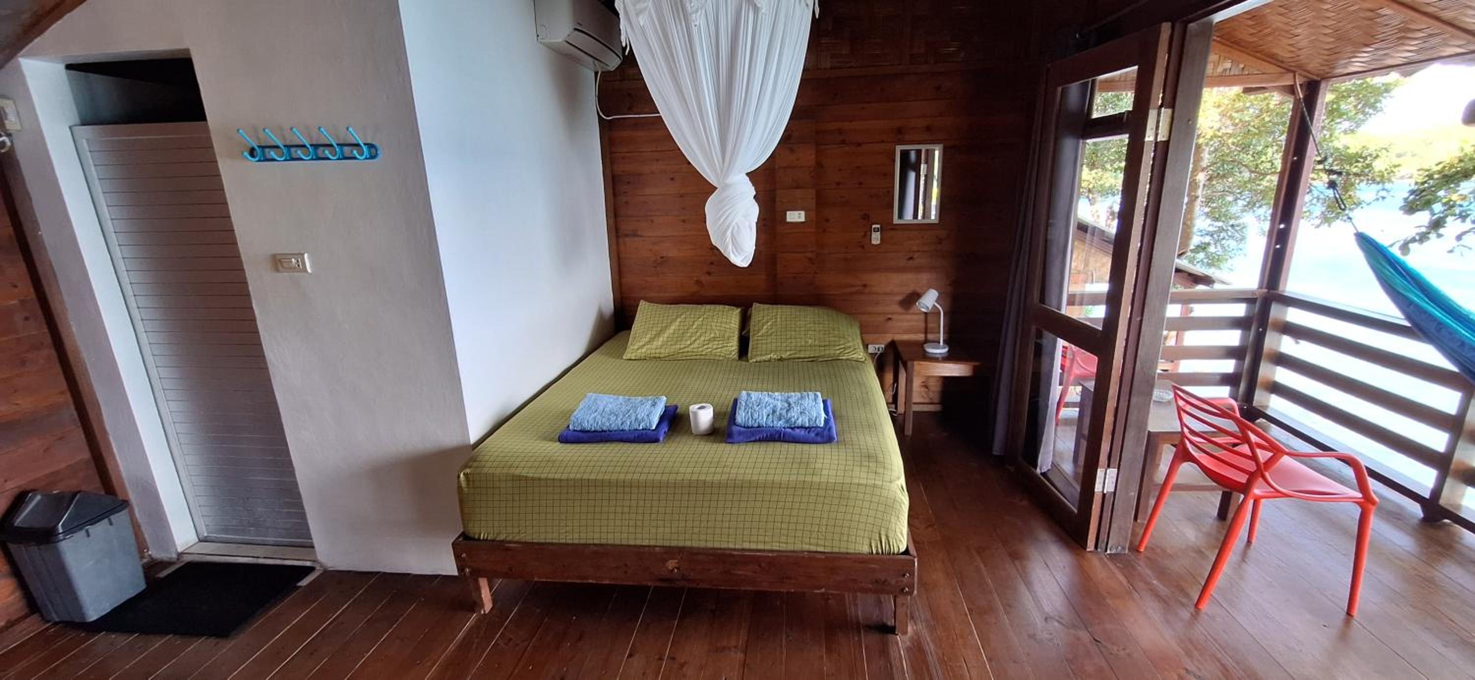 We absolutely loved this place. The bungallow is spacious and very comfortable, you have a private bathroom with hot water which is great. There is also a fridge and a kettle so you can make yourself a coffee in the morning and enjoy it in a hammock with an amazing view. You also have drinking water in the bungallow. There is a very nice restaurant with delicious food next door. The owner and the staff are super helpful and nice. We hope we will be back one day