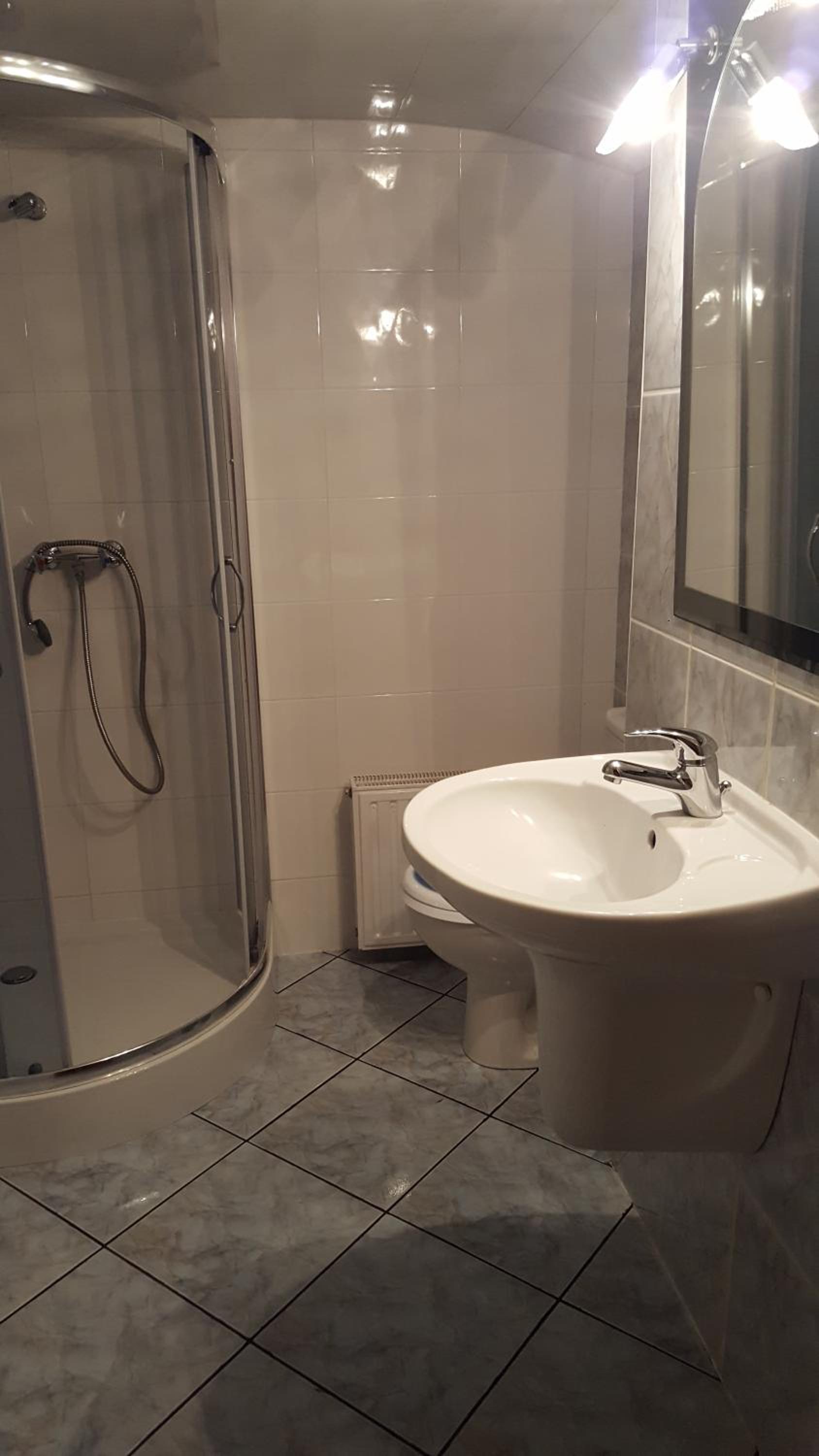 *Ciemno w łazience (święciły się tylko 2 z 4 żarówek) i brak światła nad lustrem;