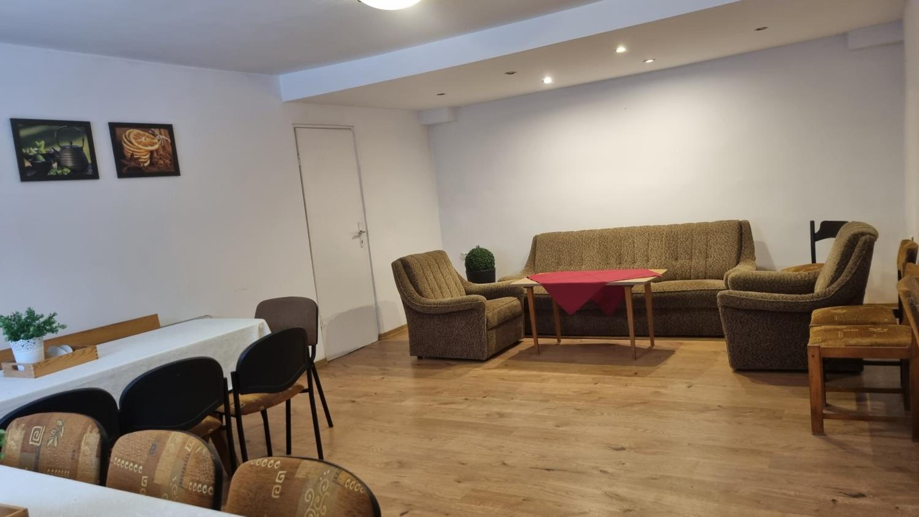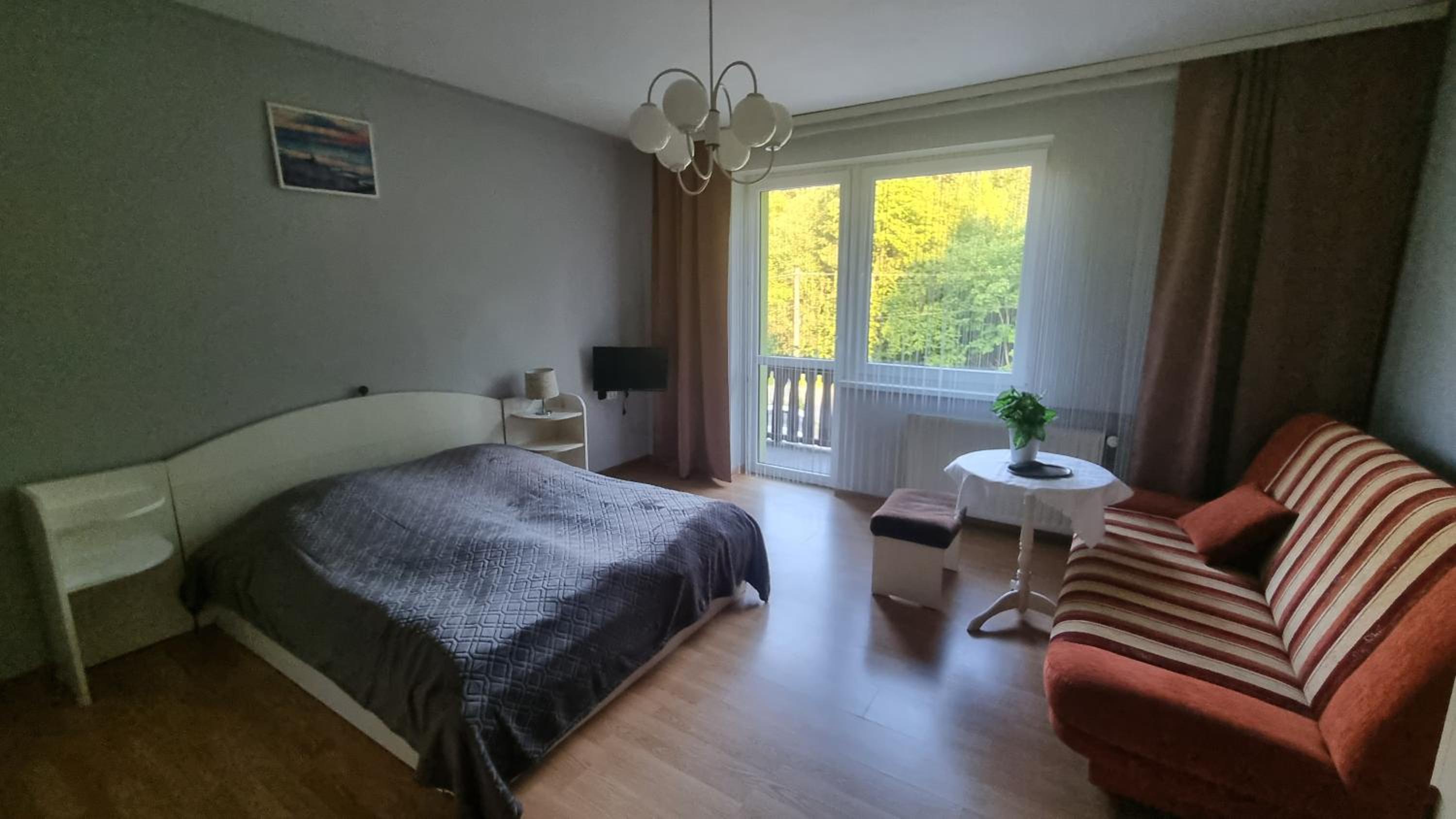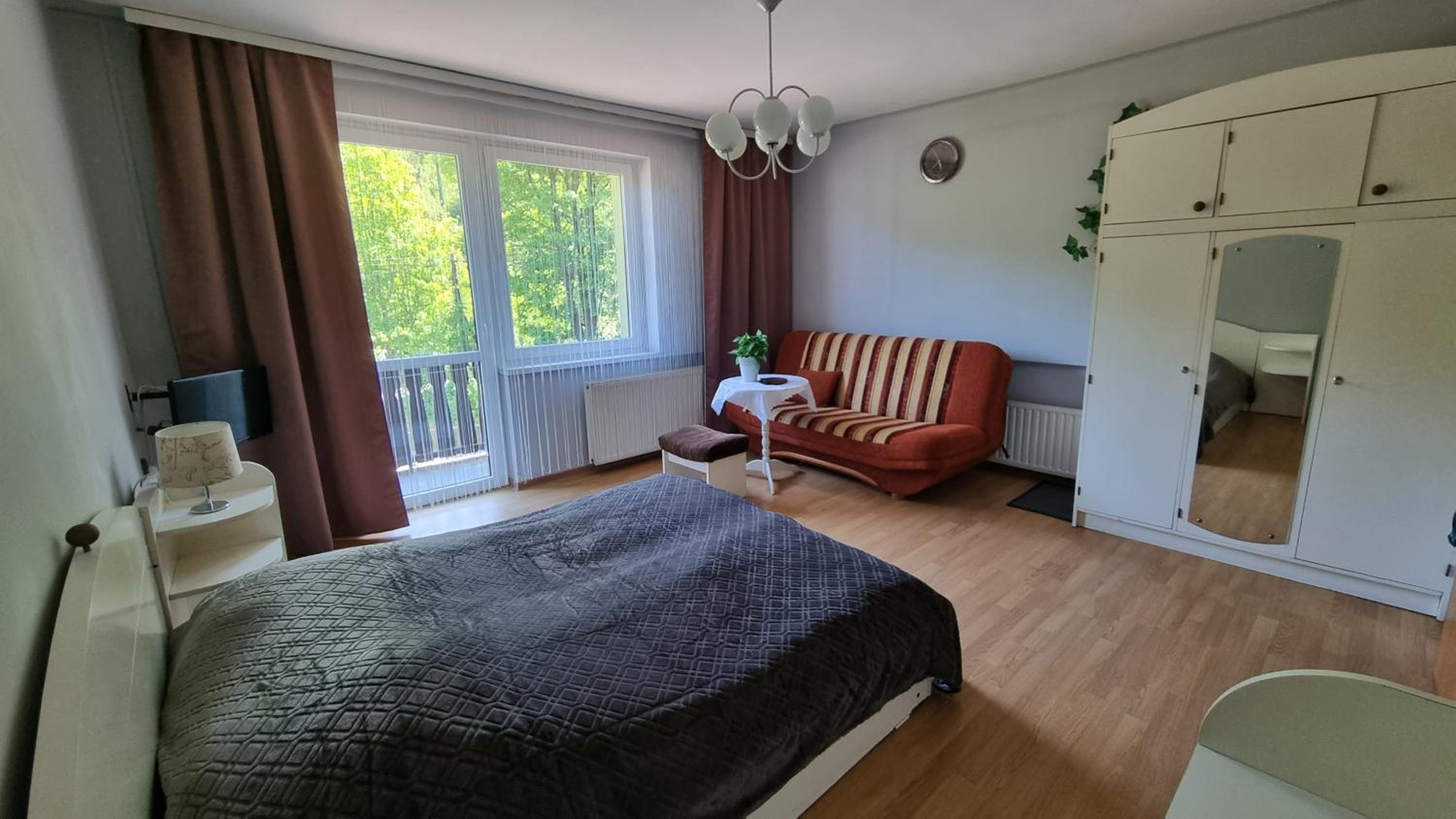 Bardzo fajnie rozbudowana i dobrze wyposażona część kuchenna ze stolikami. Spokojna lokalizacja. Odpowiednio wyposażony pokój z balkonem.