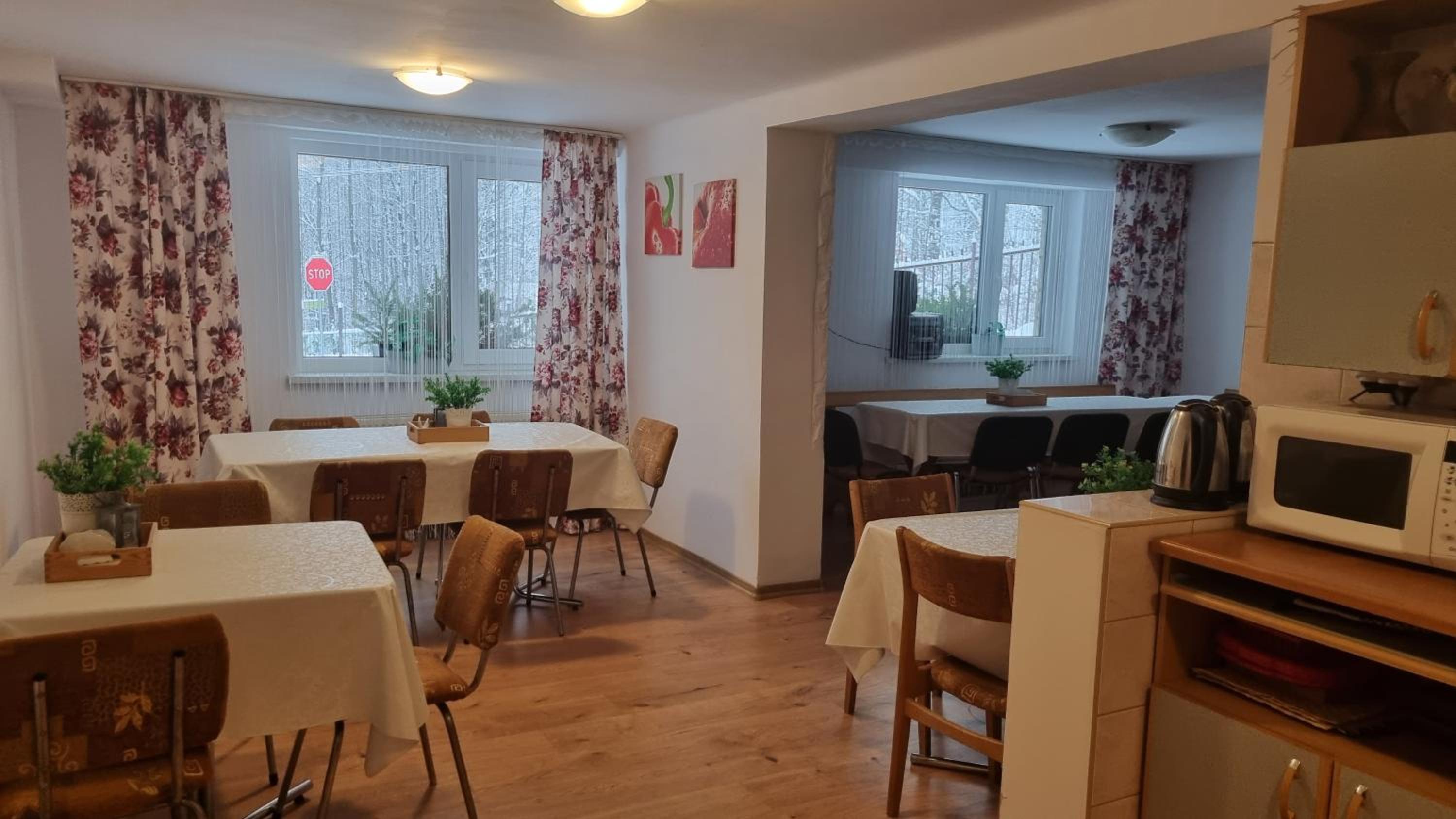 Pensjonat super położony, spacerkiem od centrum, za to cicho i spokojnie. Bardzo miła Pani właścicielka, pokoje bardzo zadbane.