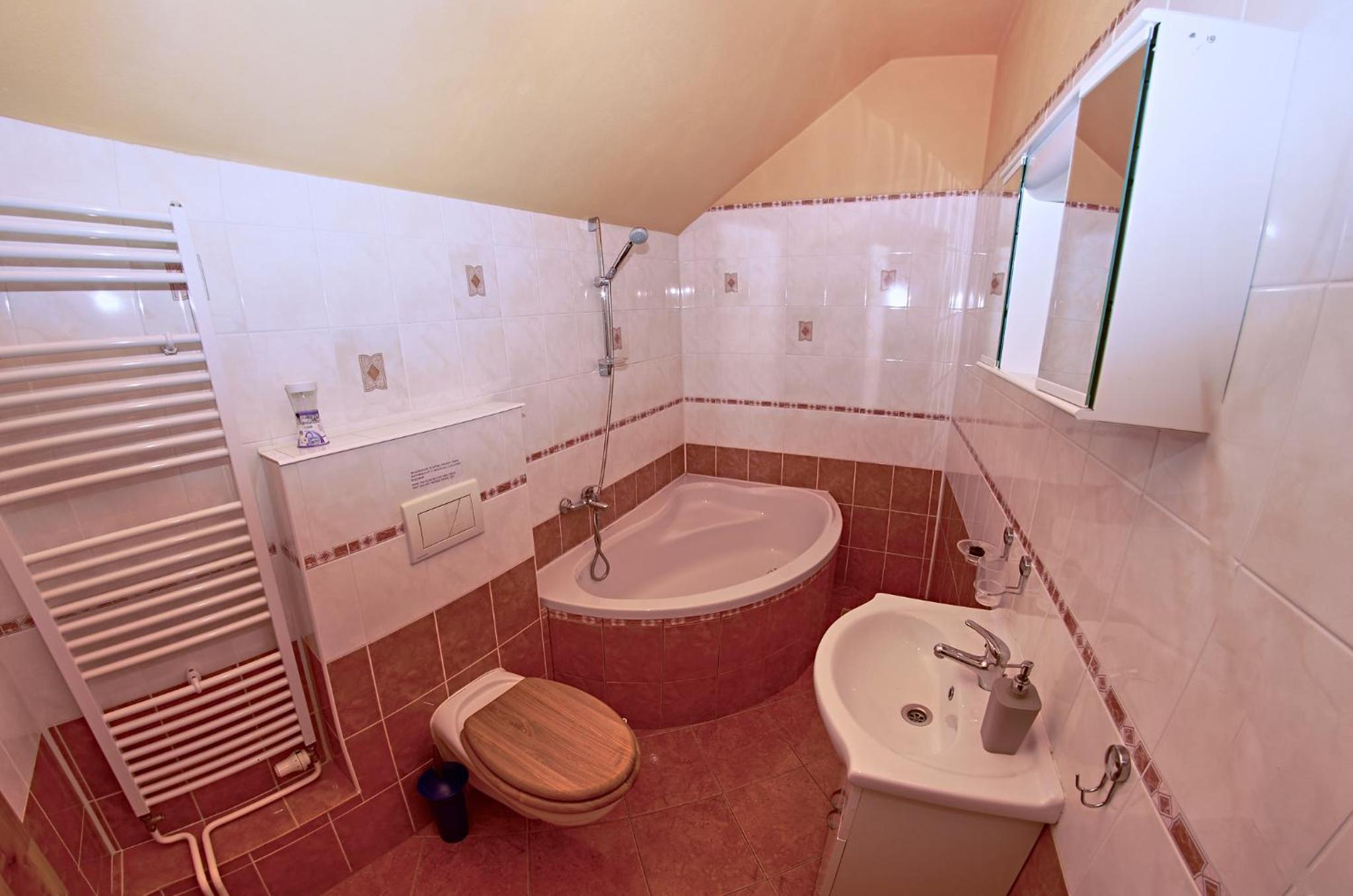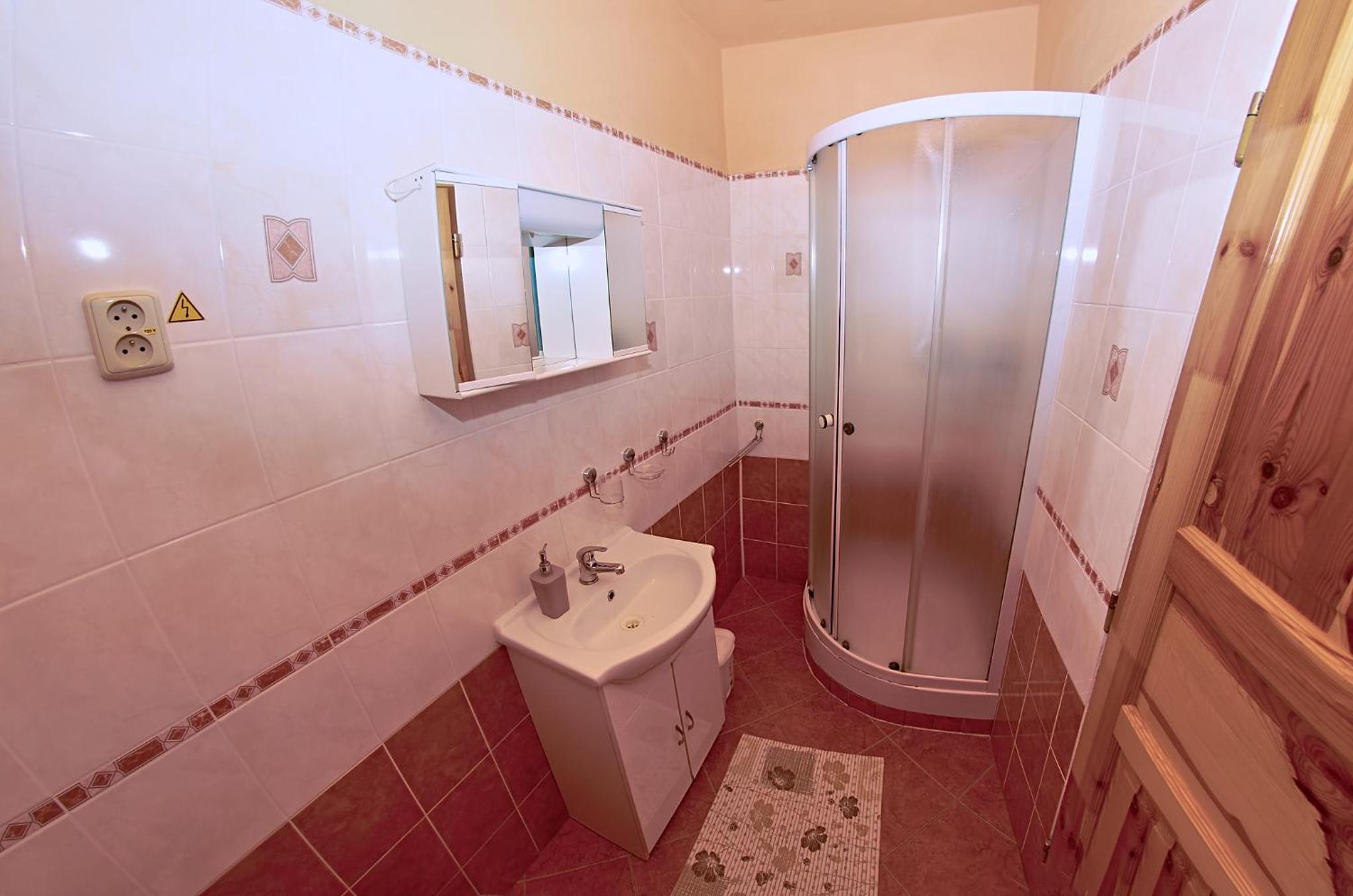 Mohlo by tam byť niečo v kúpelni na umytie rúk, mydlo a väčšie zrkadlo