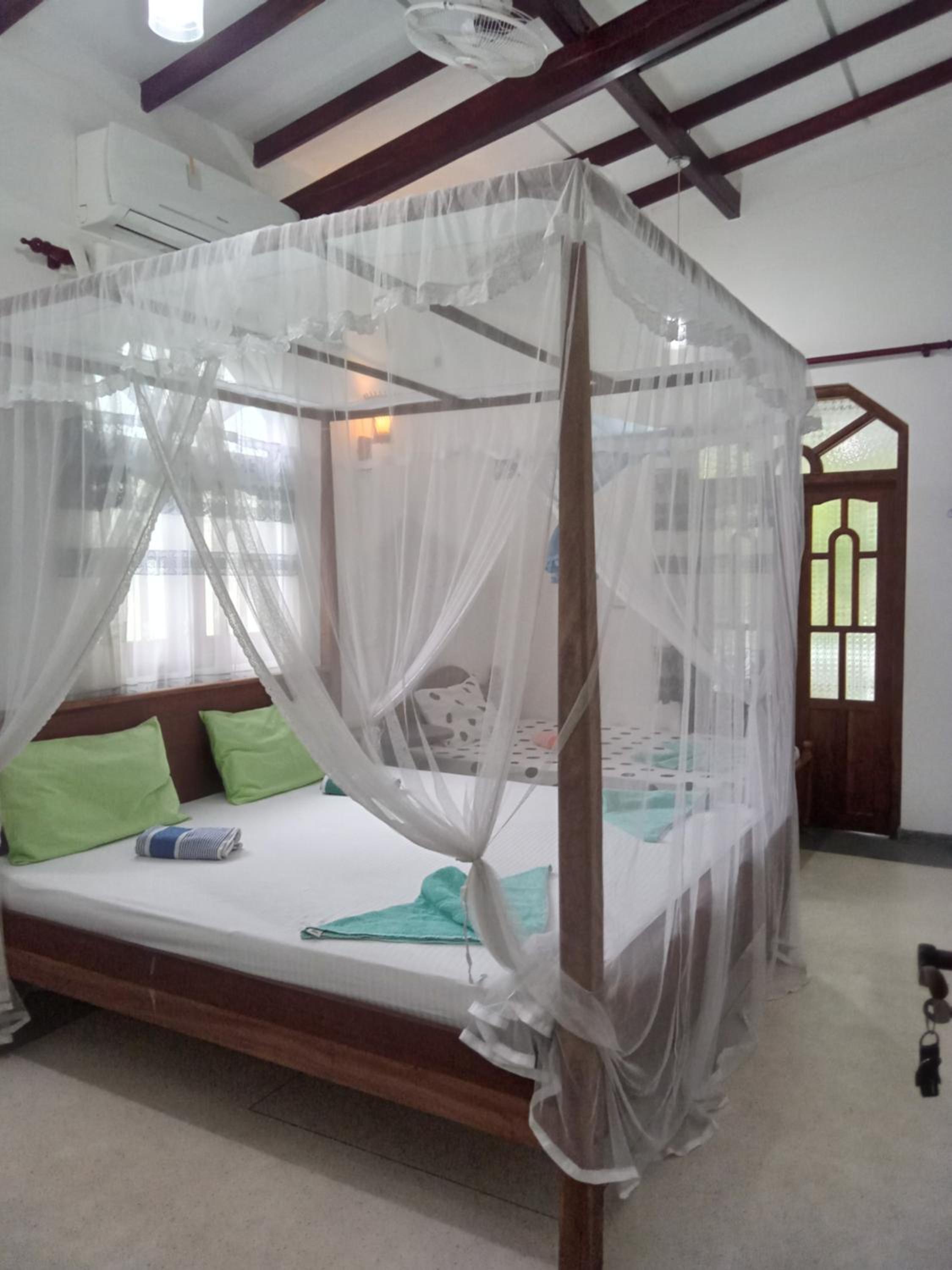 Very comfortable stay in Mirissa. The place is only 5 mins from the Main Street and supermarket. The rooms were large also with a balcony, everything was clean. There was air conditioning so the room was never hot. Between 3 rooms there is a shared kitchen (2 hobs) and also a small communal balcony. It was also useful that there was a mini fridge inside the room. The host Shiromi is very nice and welcomed us with a coconut water on arrival. The family only live downstairs so it is easy to get help and the area is pretty safe. You can rent a scooter for 1,700 (much better than local companies) or a tuktuk.