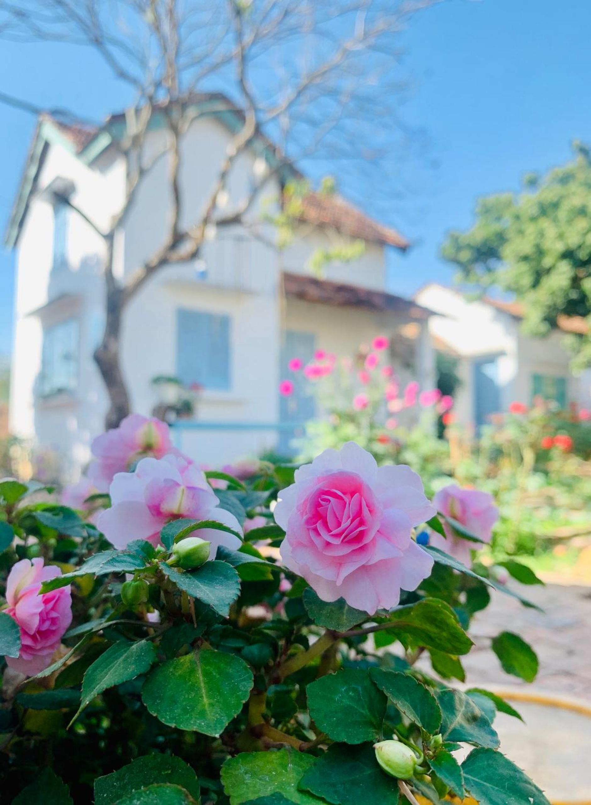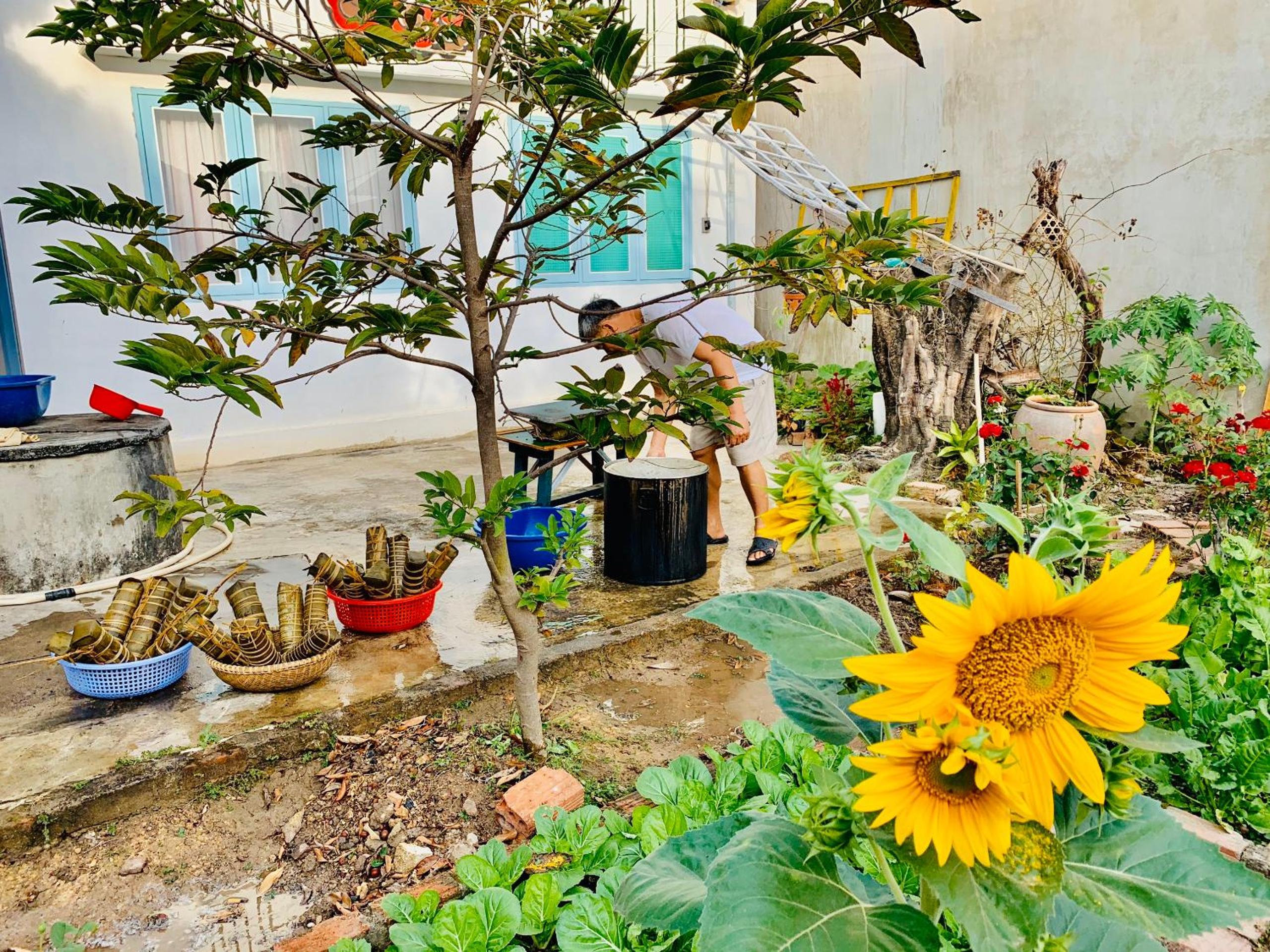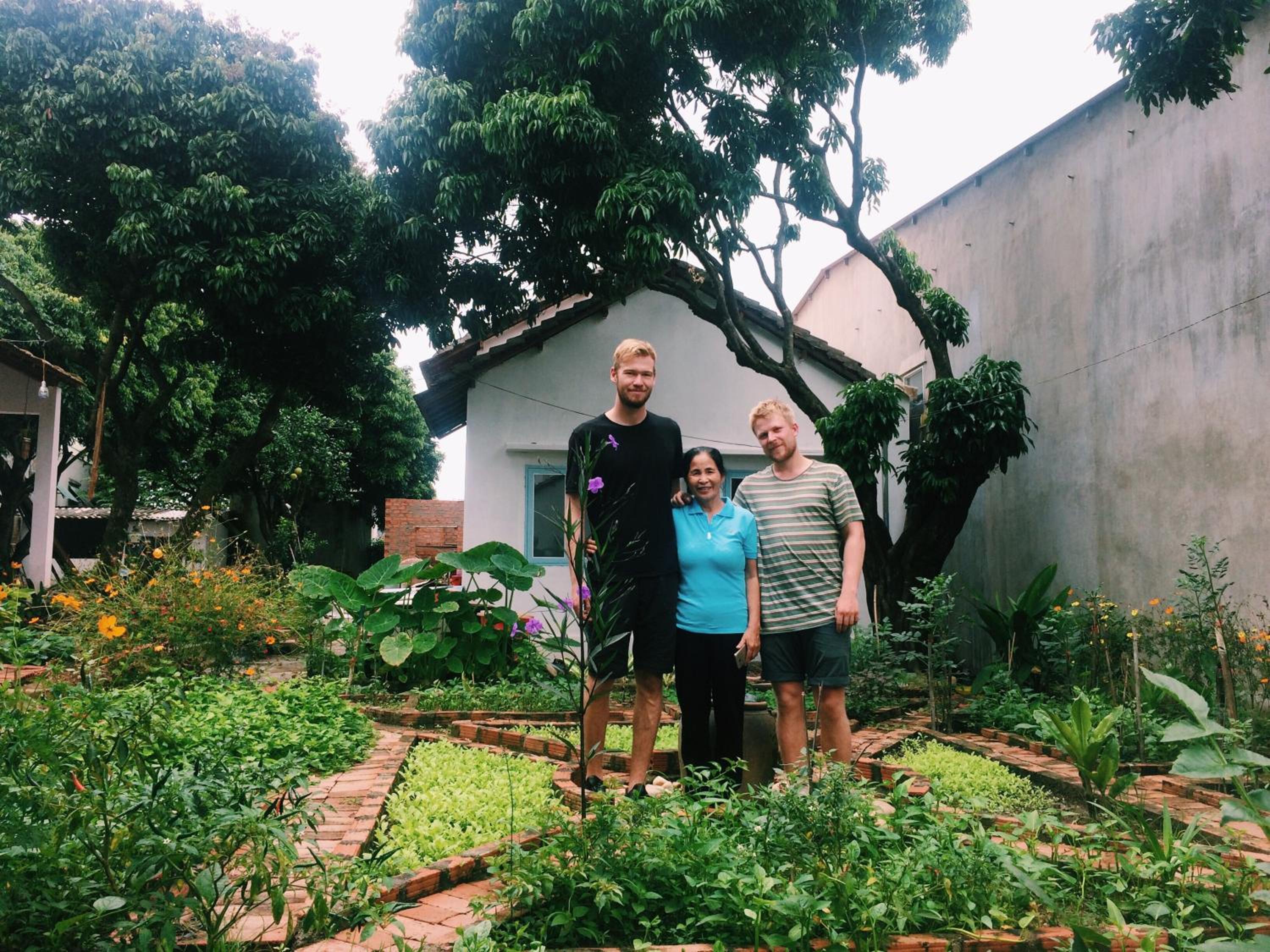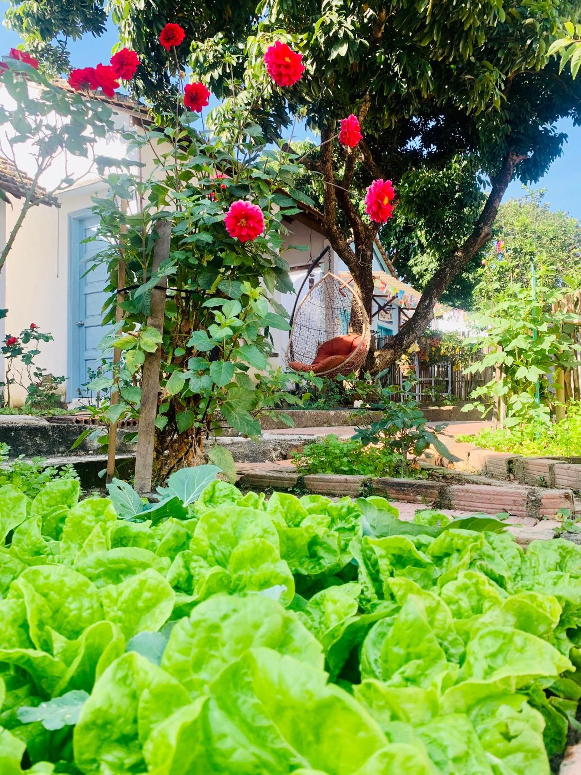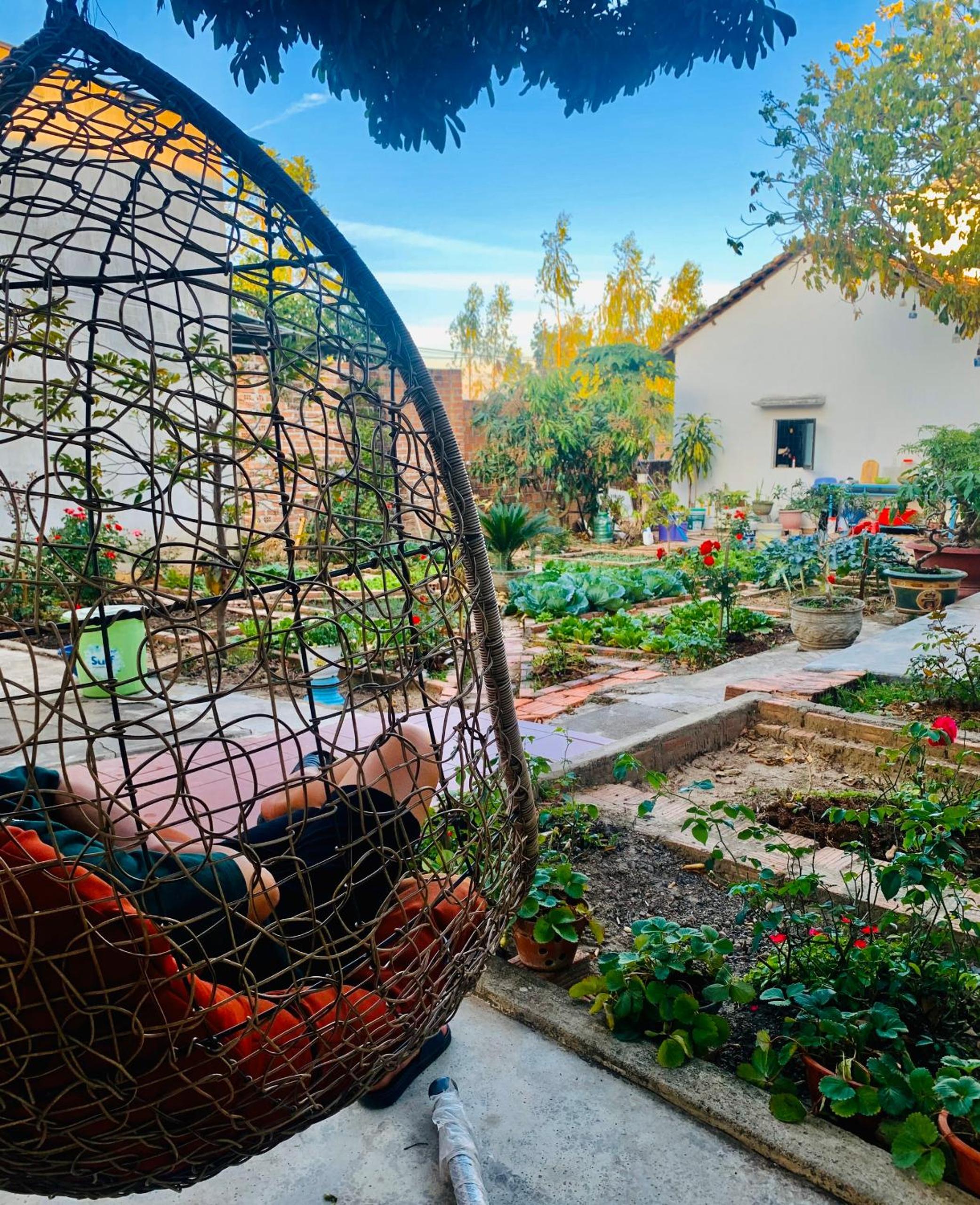 Rooms and dorms are in a walled family compound in the middle of a vegetable plot and with numerous flowers, sunflowers, dahlias,marigolds, roses...it is very picturesque.
