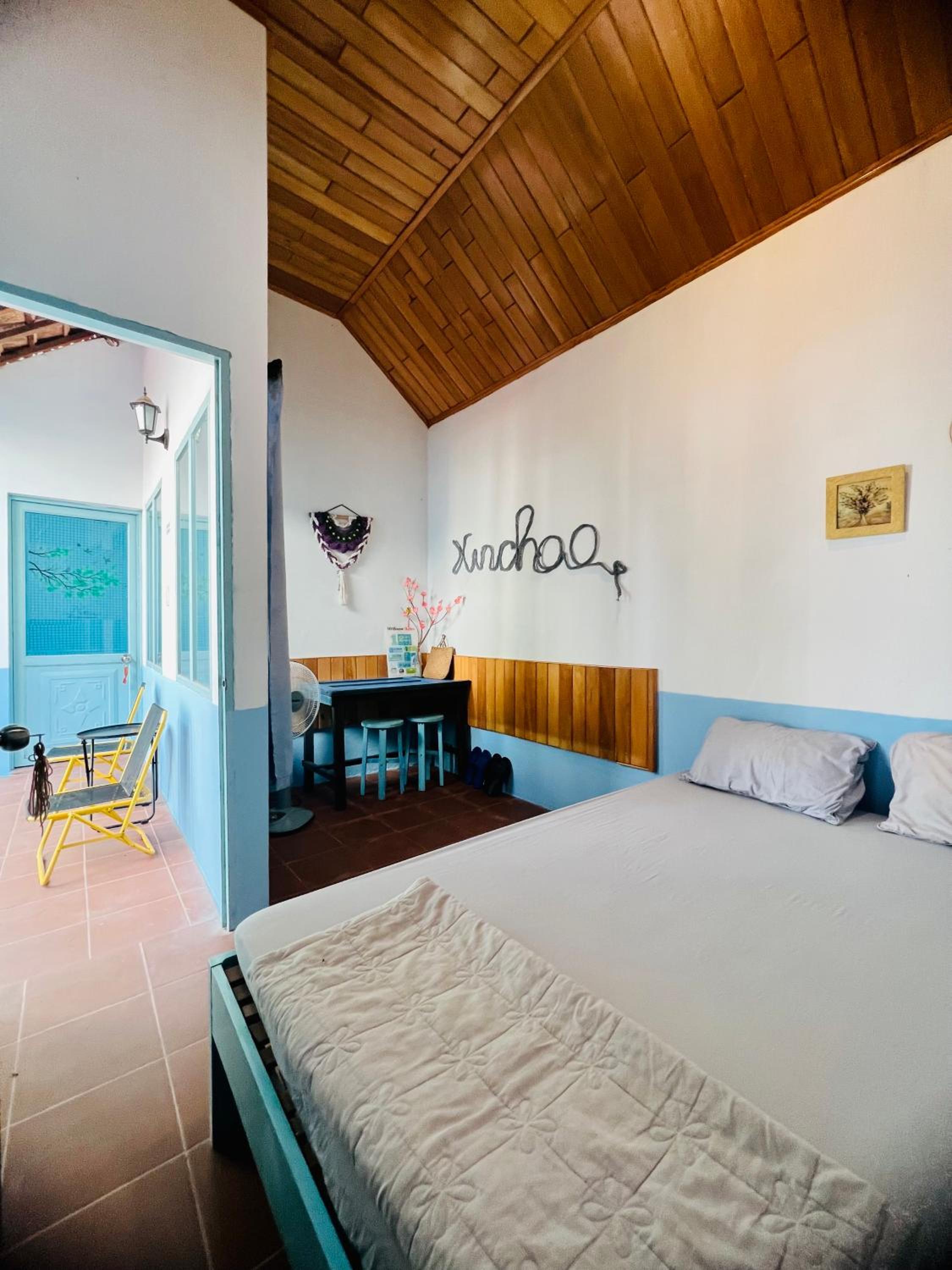 Friendly and helpul staff! The staff helped us getting the last seats on the bus to Ho Chi Minh City, which turned out to be really difficult during the Tet holiday season. It is a nice mix between the friendlyness of a Vietnamese homestay and a private area in front of our own little house to relax. It was possible to rent a motorbike directly from the homestay.