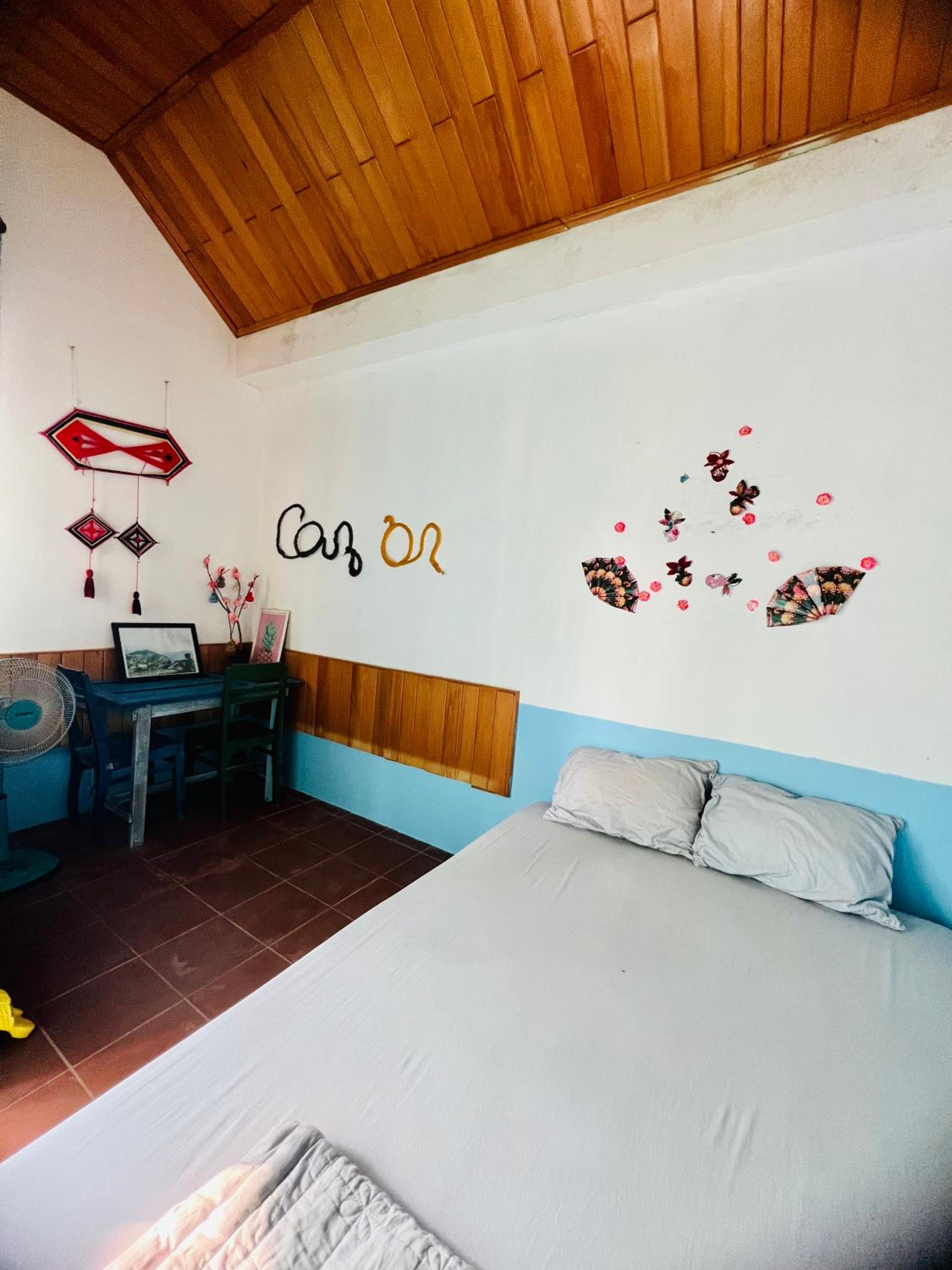 What an amazing place, we went for a couple of days and we ended up spending a week there! The property and the owners are amazing, we got a very cozy room with comfortable bed, a desk and a fan (we never used it though). The toilet is shared with two other rooms but there are more in case you need it, the shower has hot water. Wi-fi works really well also for videocalls. The enviroment is sociable but quiet, we had the family dinner on the first night and we spent an amazing night with other travellers. The location is a bit out of town but in a very quiet spot, they rent motorbikes in case you need one but there are various places for food around the homestay.