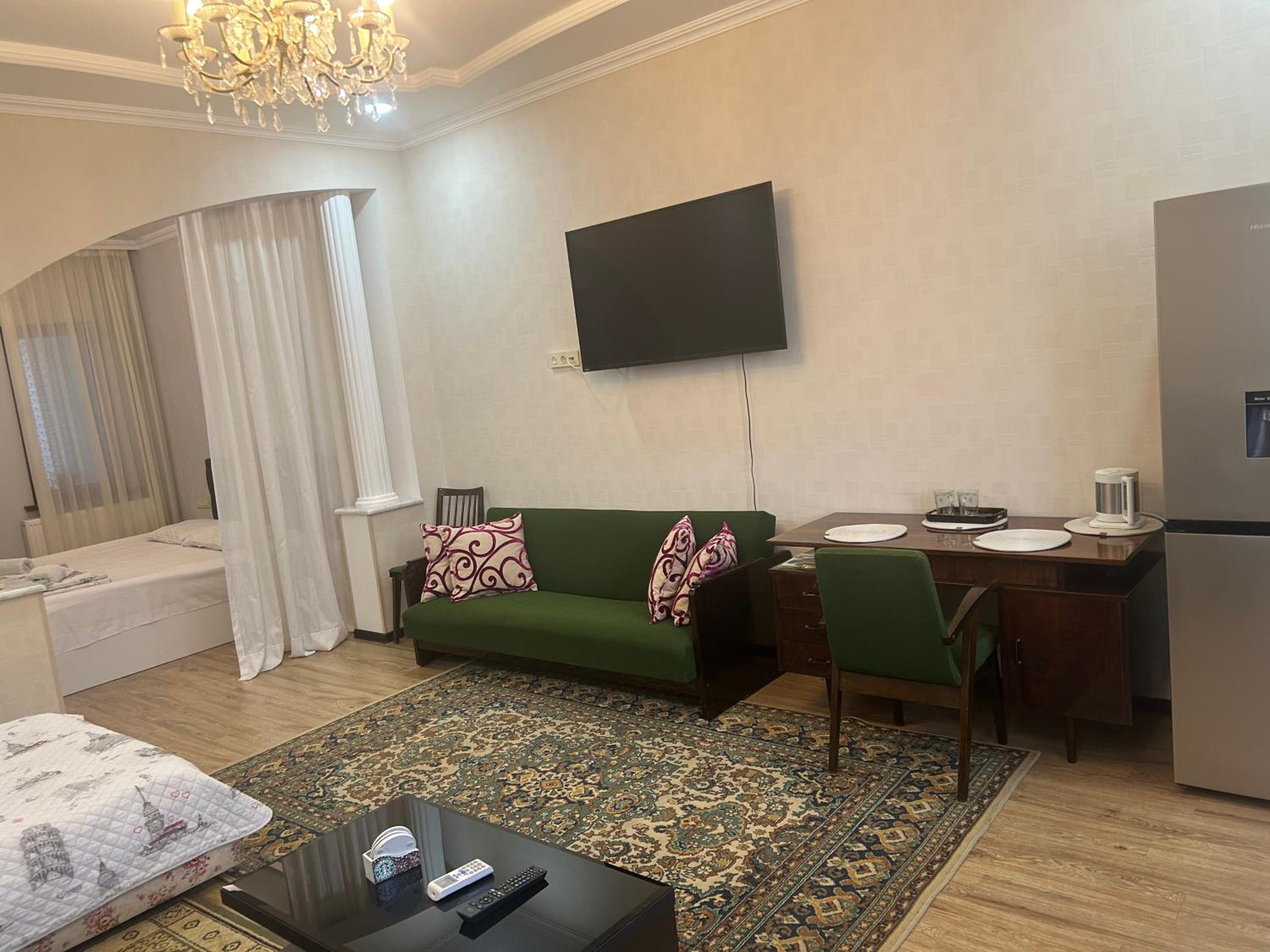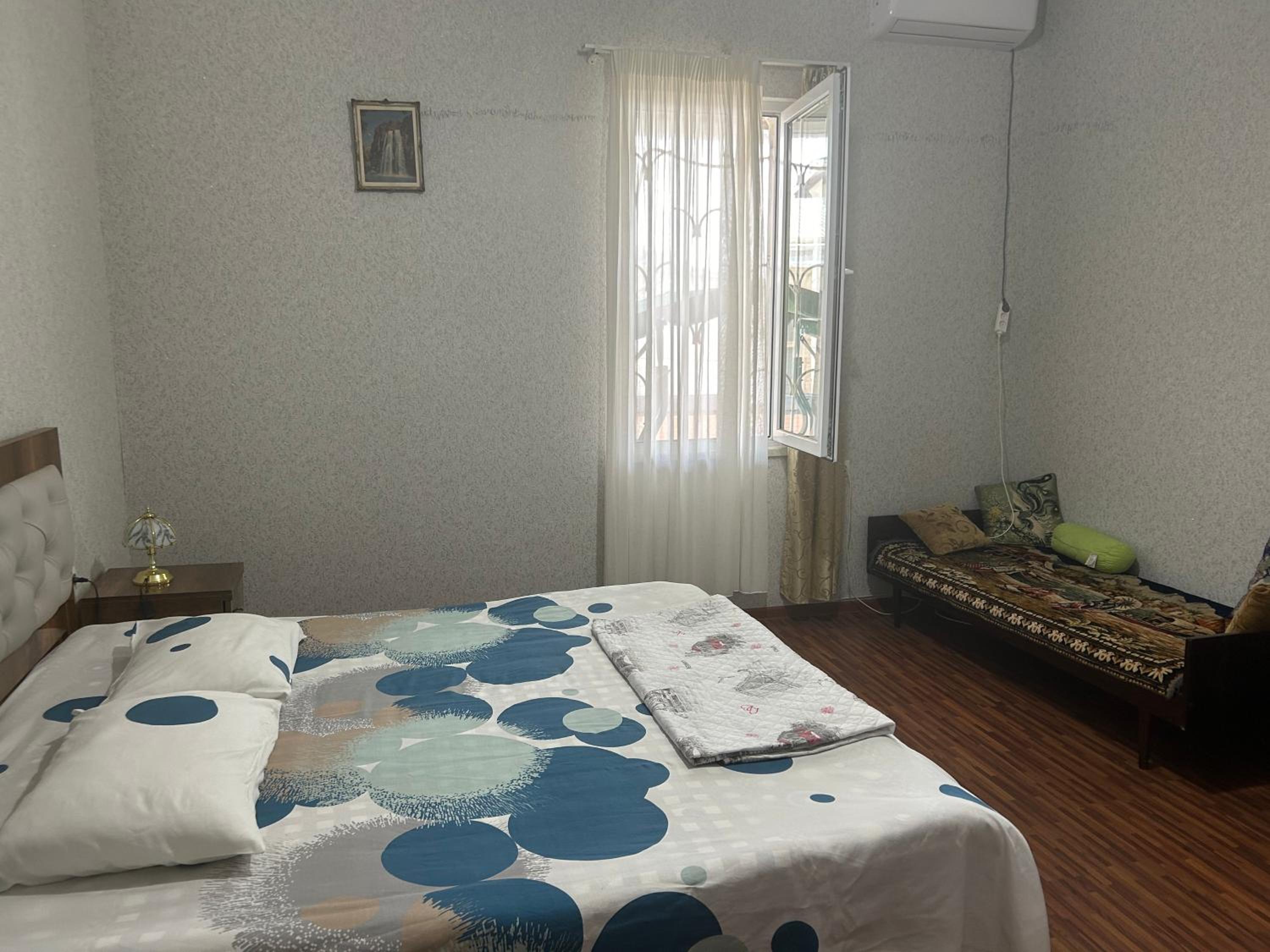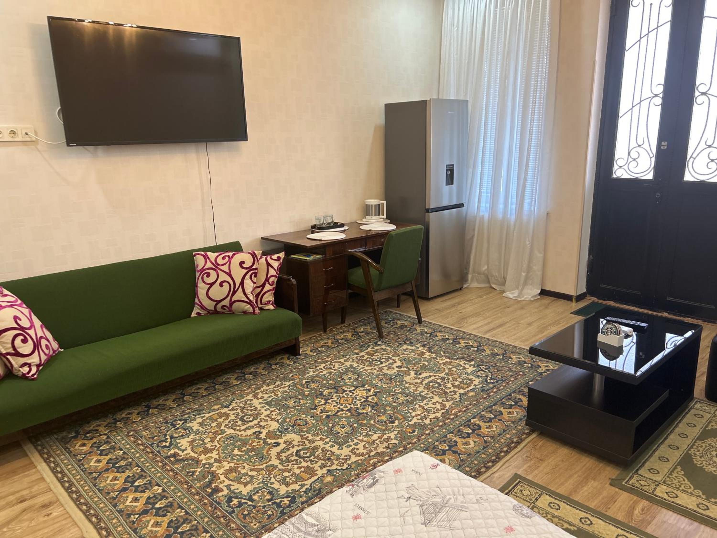 Timur is a charming and a kind man. He is very helpful and practical. For a very good price, he fetched us from the airport, took us to the monasteries, took us to the bus station and helped with information about our marshrutka. The rooms were exactly right for me and my adult son travelling together: a large double bed in a screened off part of a sitting room with another double bed. And a private bathroom.