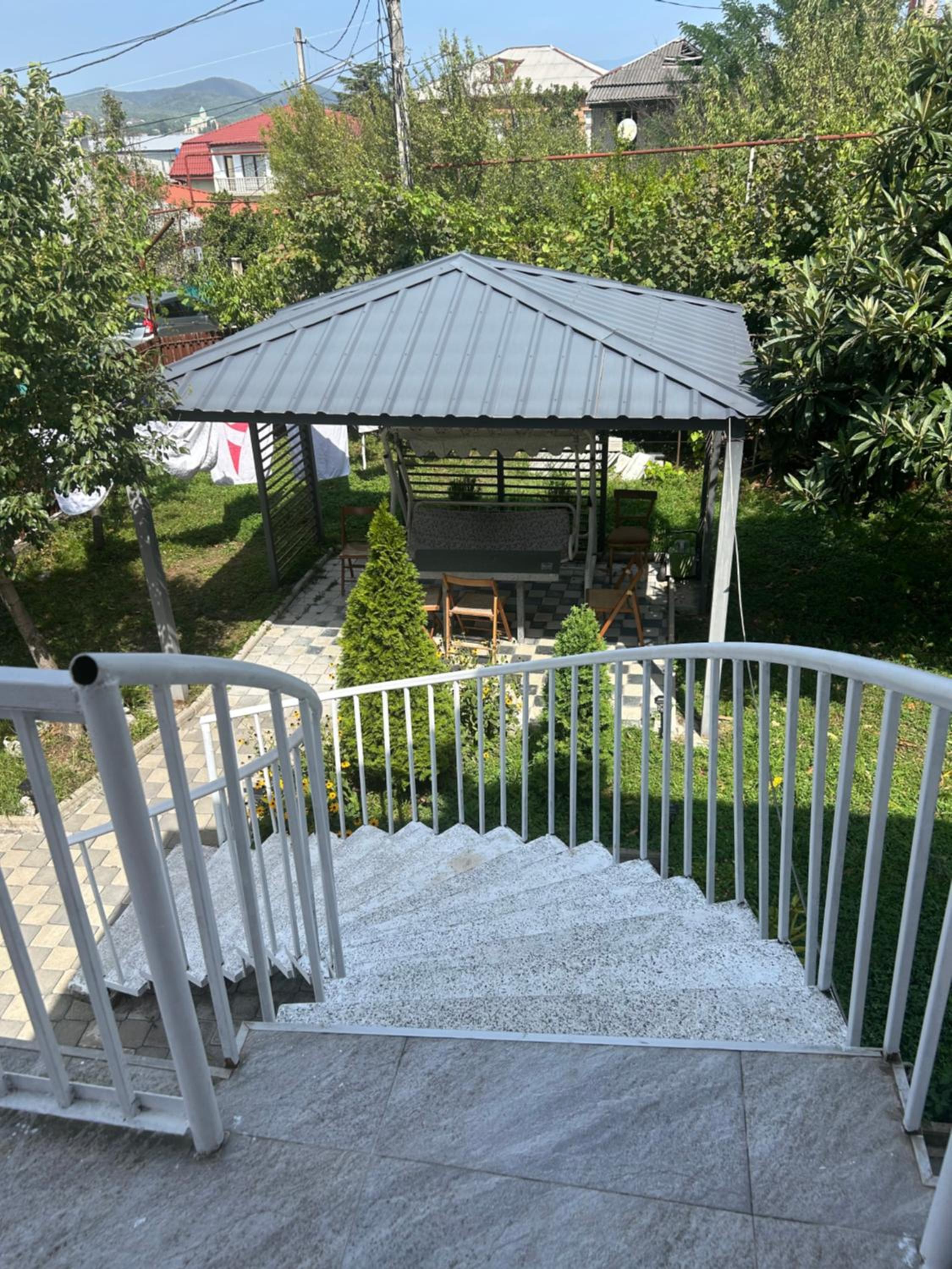 There is a garden. Timur is very nice, doesn't speak English well but makes himself understand and available.