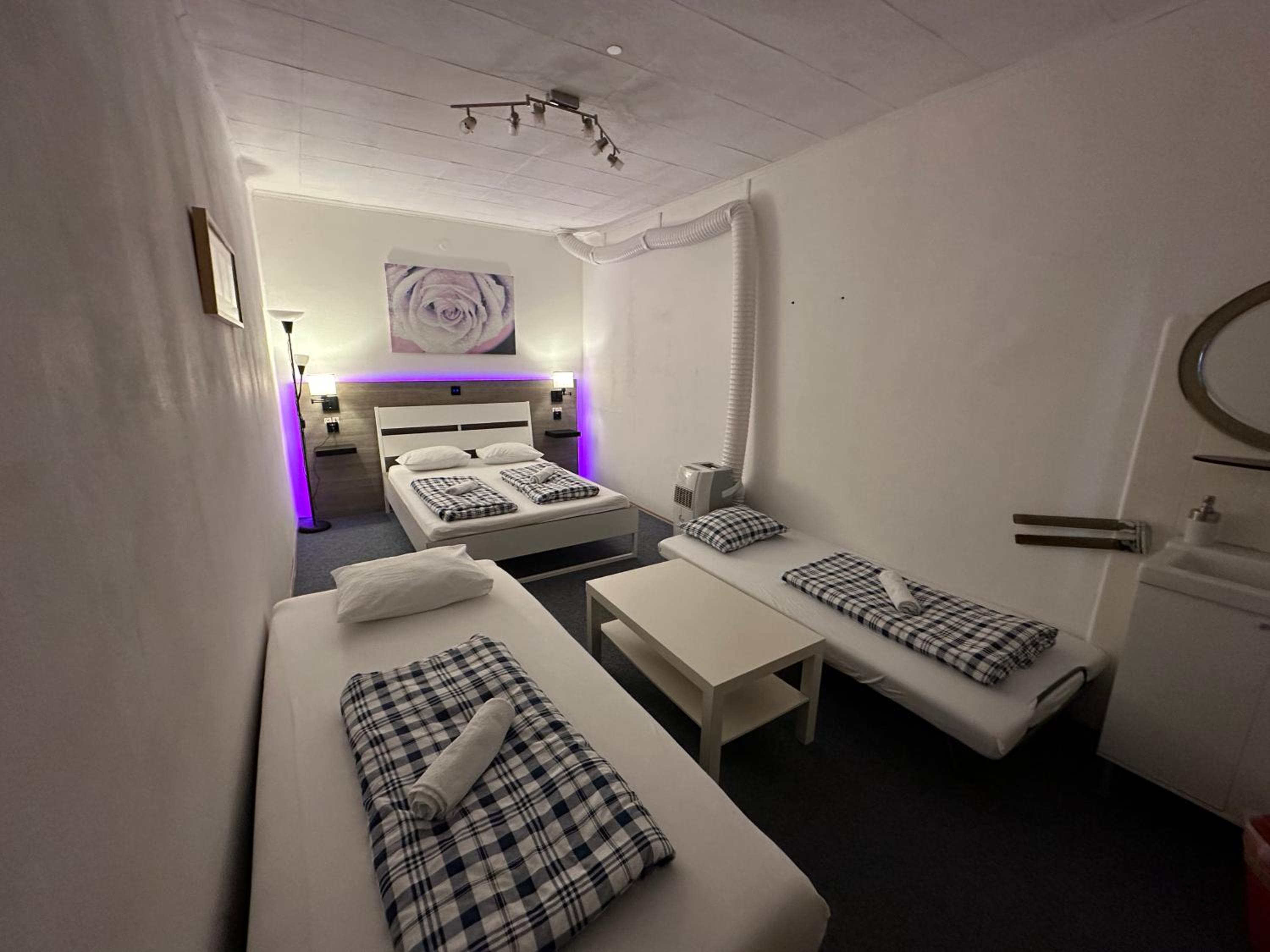 es war überall Teppichboden verlegt, der stank nach Urin. die Zimmertüre schloss nicht richtig und man hatte kein Fenster für Frischluft. Die Sanitäranlagen waren wirklich ekelig. Leider nicht weiterzuempfehlen. Wenig Sitzmöglichkeiten wenn alle Zimmer belegt sind. Schmutzige Wände, alt und heruntergekommen