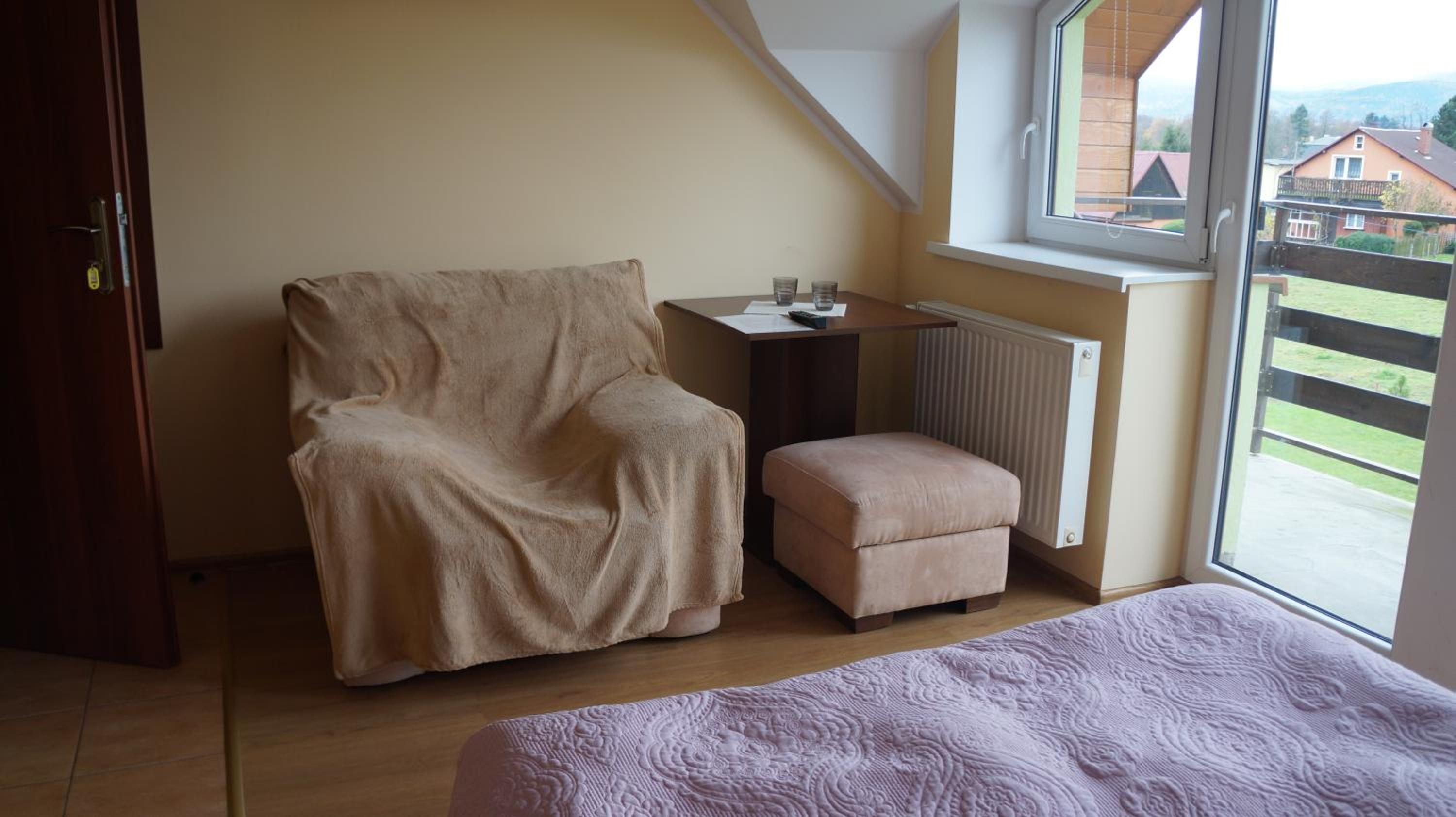Świetna lokalizacja do wypadów po bliższej i dalszej okolicy. Pokój z widokiem na Śnieżkę.