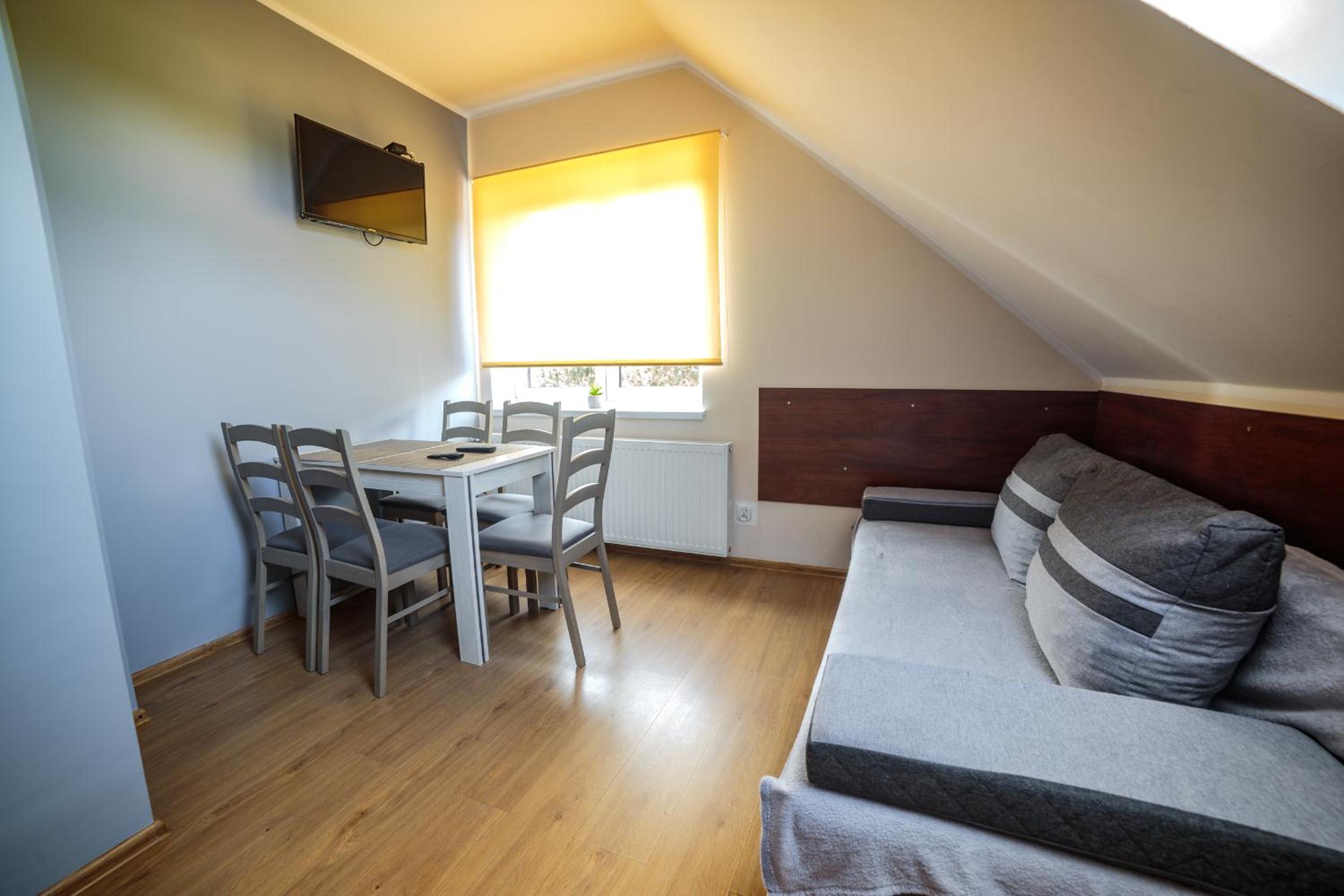 With a 24-hour front desk and free private parking, Villa ŁĄGI ensures a hassle-free stay. Each unit is equipped with modern amenities, including a flat-screen TV and a well-fitted kitchen, promising comfort and convenience.