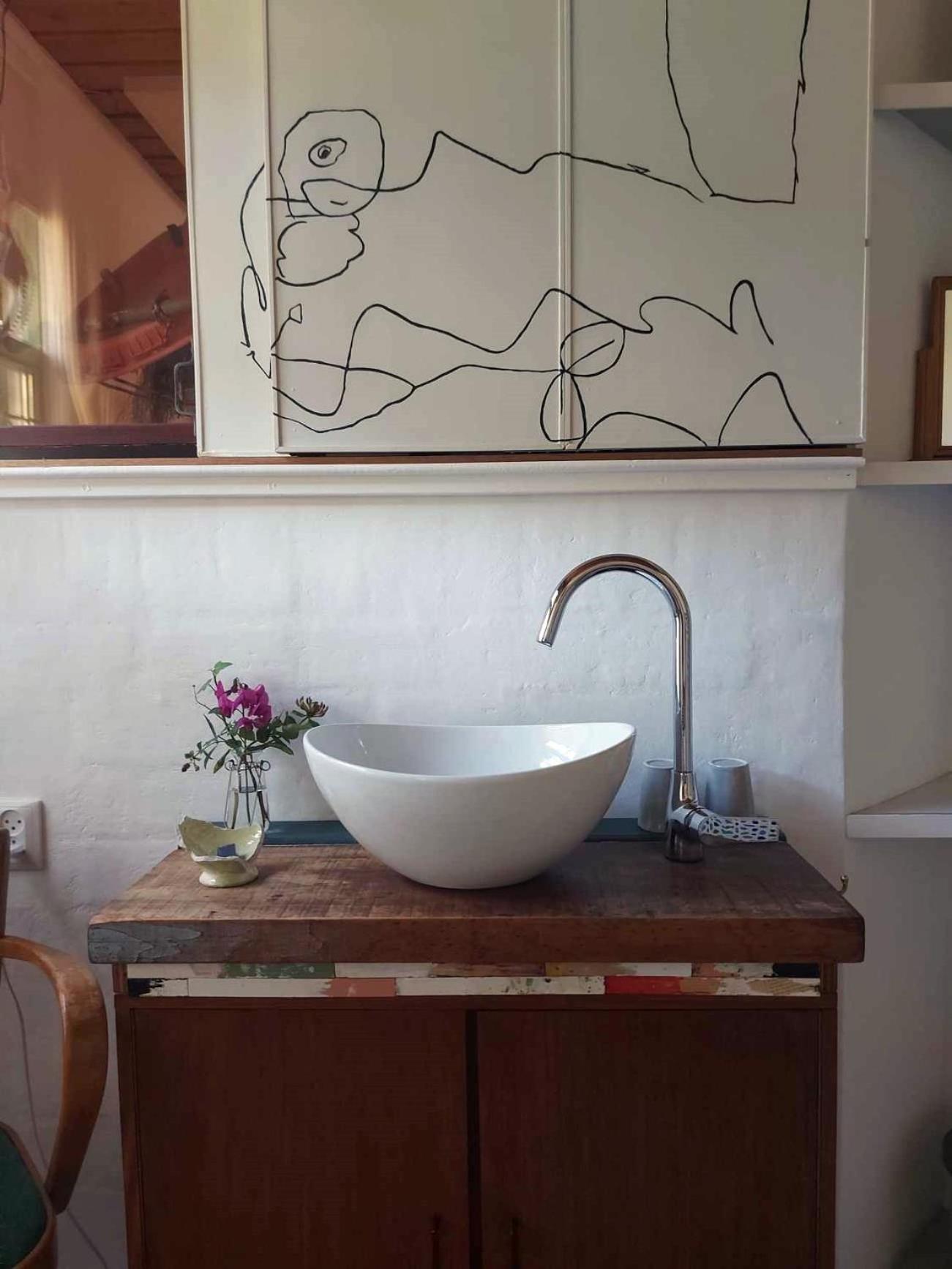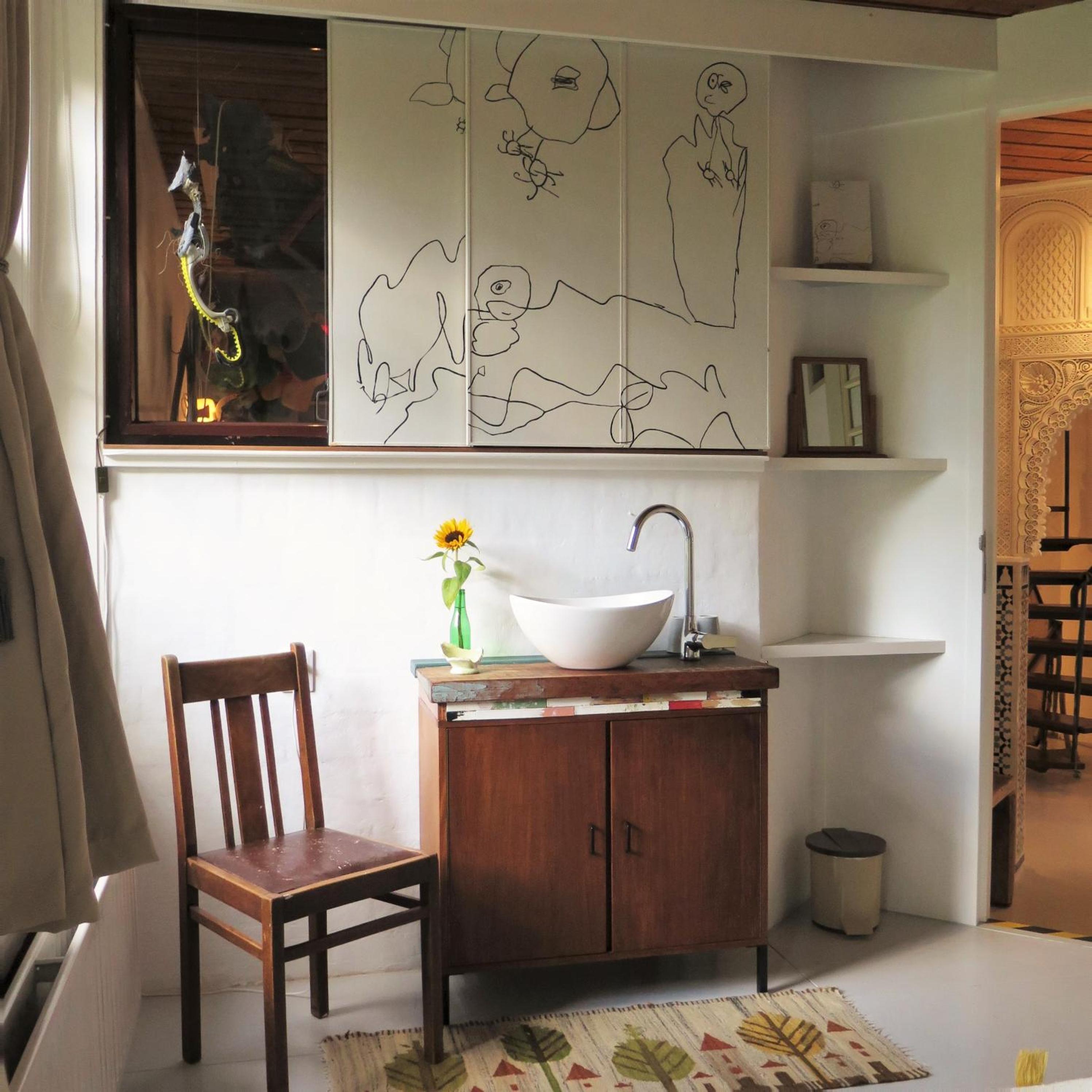 Immerse yourself in creativity with art objects crafted from beachcombed materials adorning the accommodation. Relax in a room featuring a private shower, coffee, and tea facilities. Dive into the world of art with a curated selection of books at the reading table.