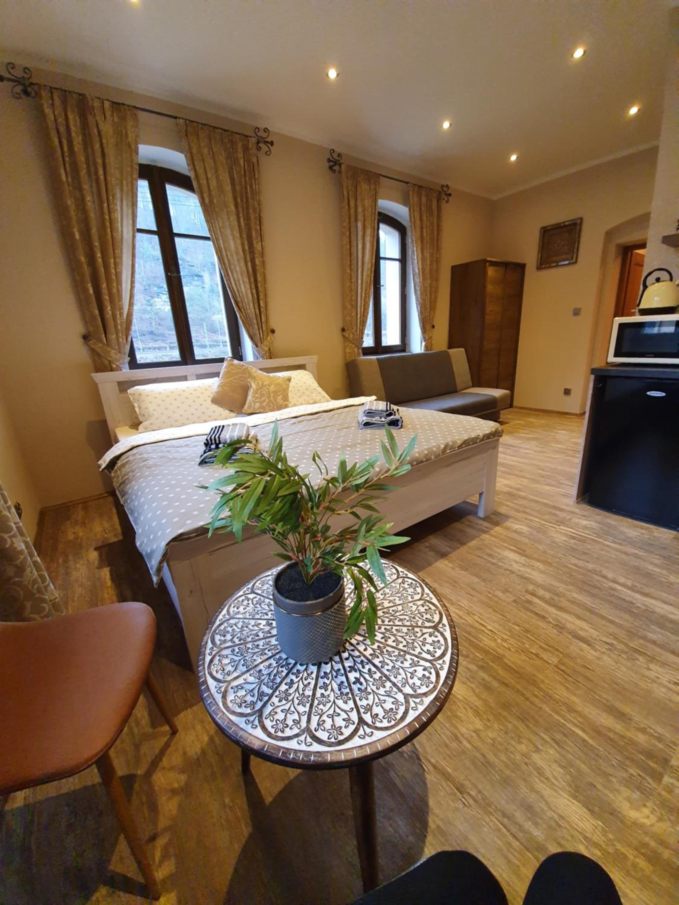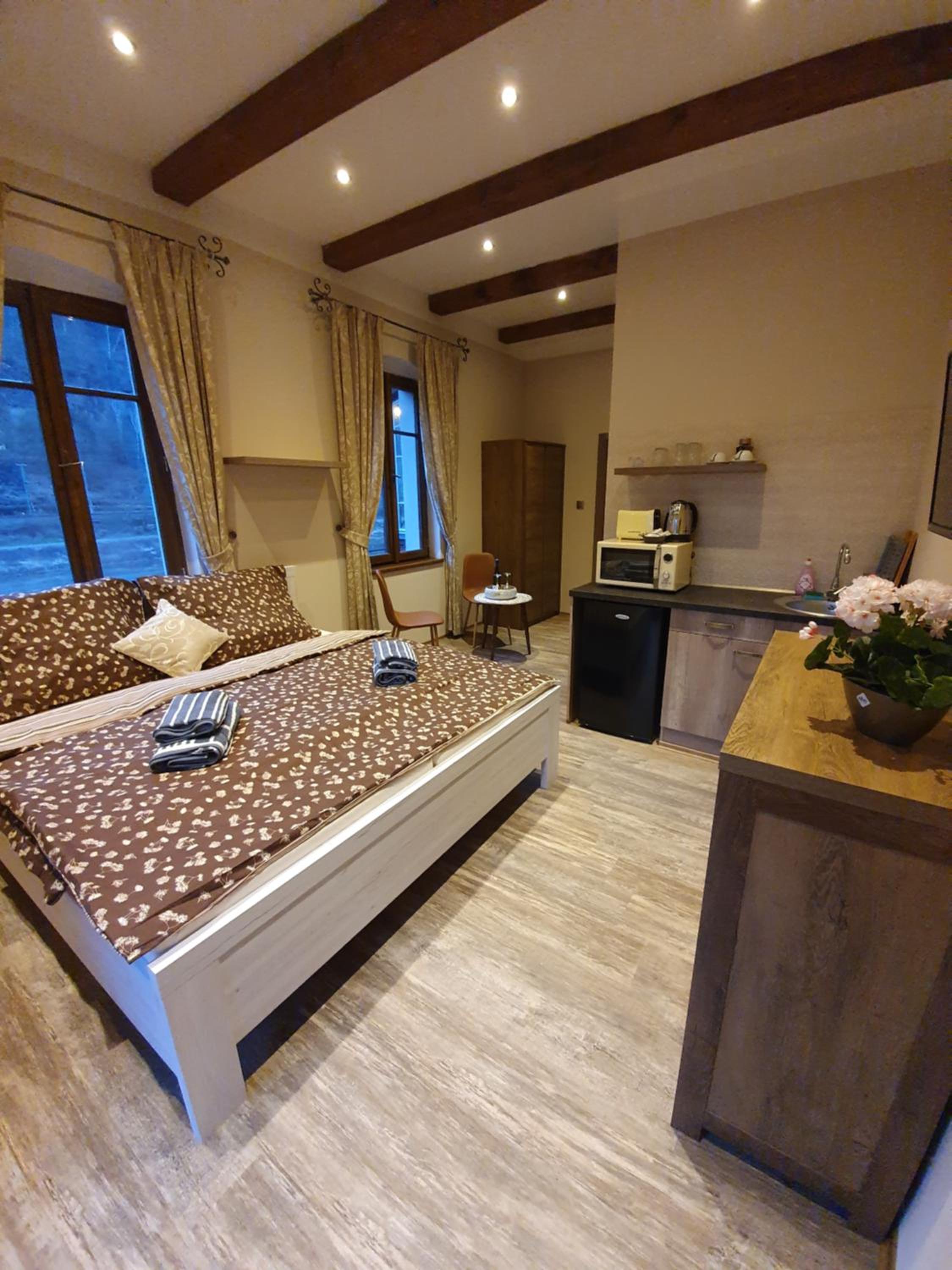 Labský Dvůr offers stunning river views and complimentary WiFi, providing a serene setting for your stay. The accommodation boasts a range of units with modern amenities, including a fully equipped kitchenette and private bathroom. Some units even offer a terrace or balcony for a perfect morning coffee spot.