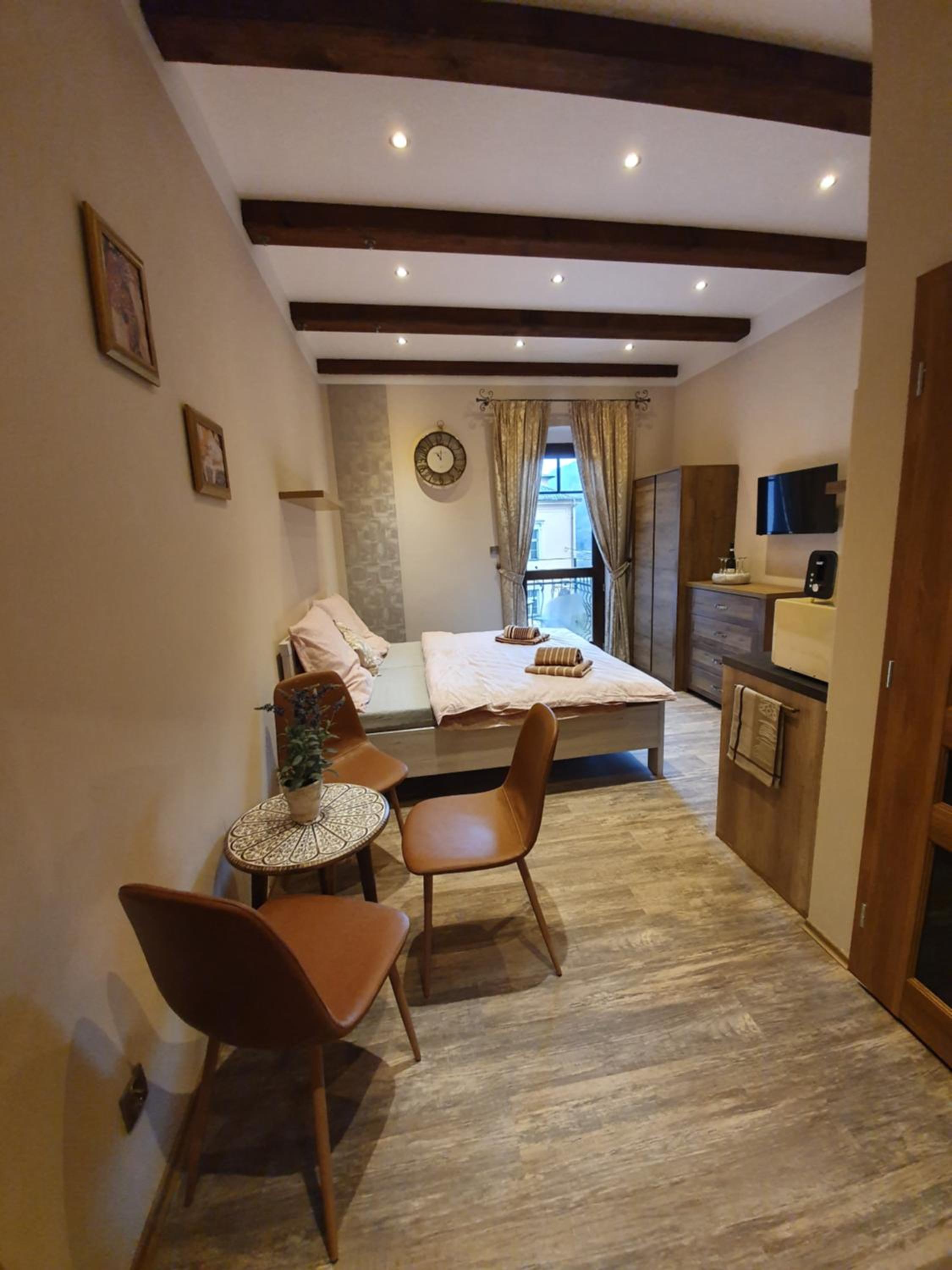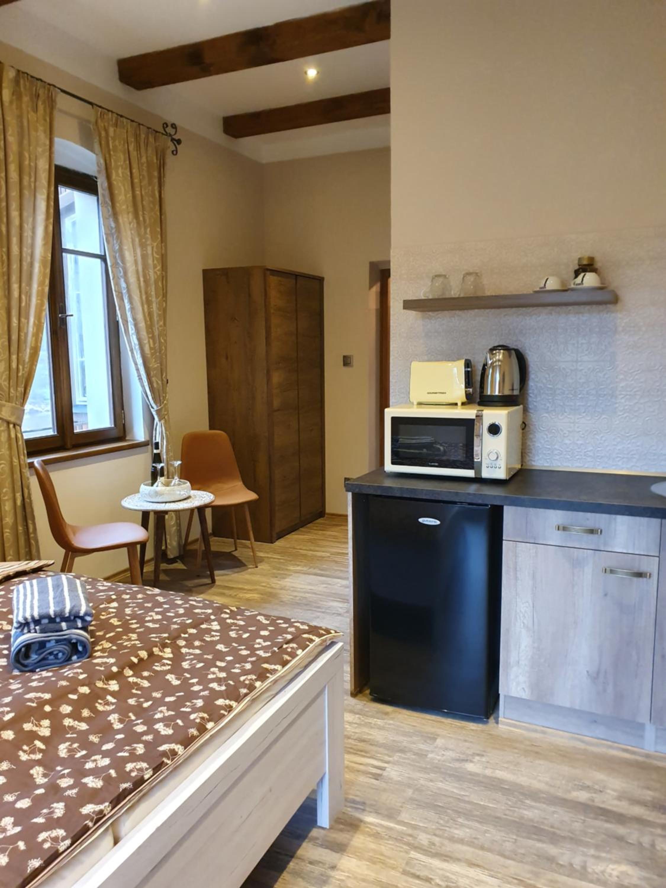 budynek z "duszą", kameralna atmosfera, czysto, w pokoju wszystko co niezbędne, miła obsługa