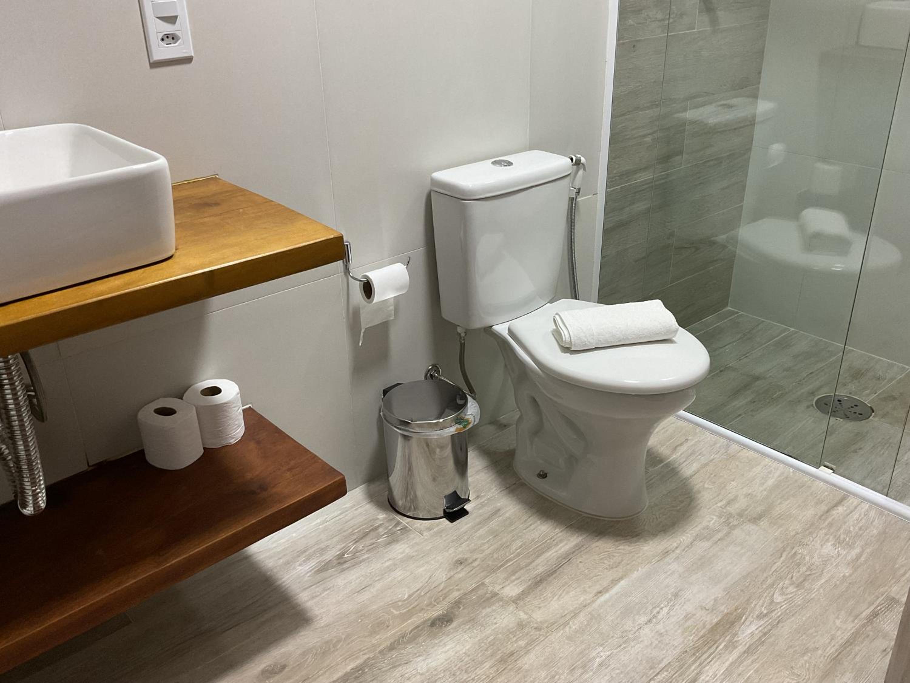 Poderia ter saboneteira no box, e o banheiro estava com um pouco de cheiro de esgoto