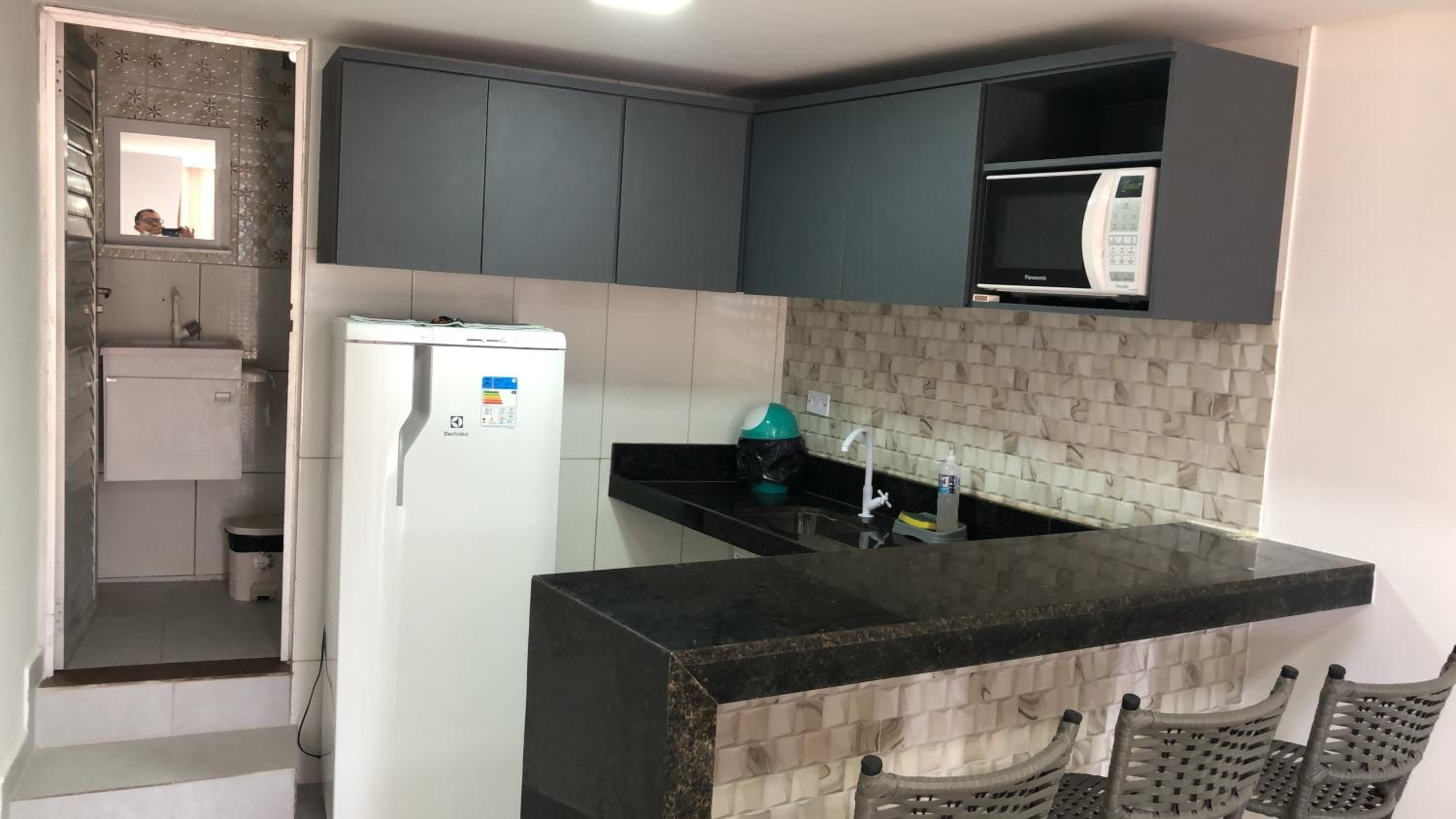Sentir a falta de uma prateleira para acomodar as bolsas, mas utilizamos a mesa e as cadeiras 😉