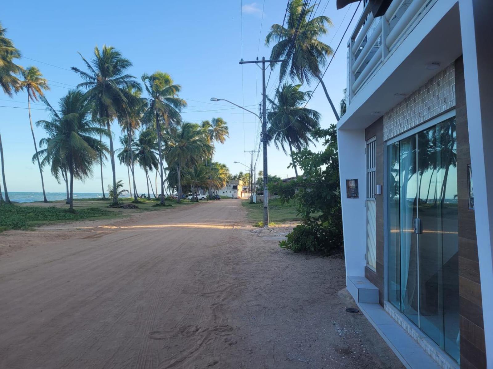 Praia na frente só atravessar e está com pé na areia.