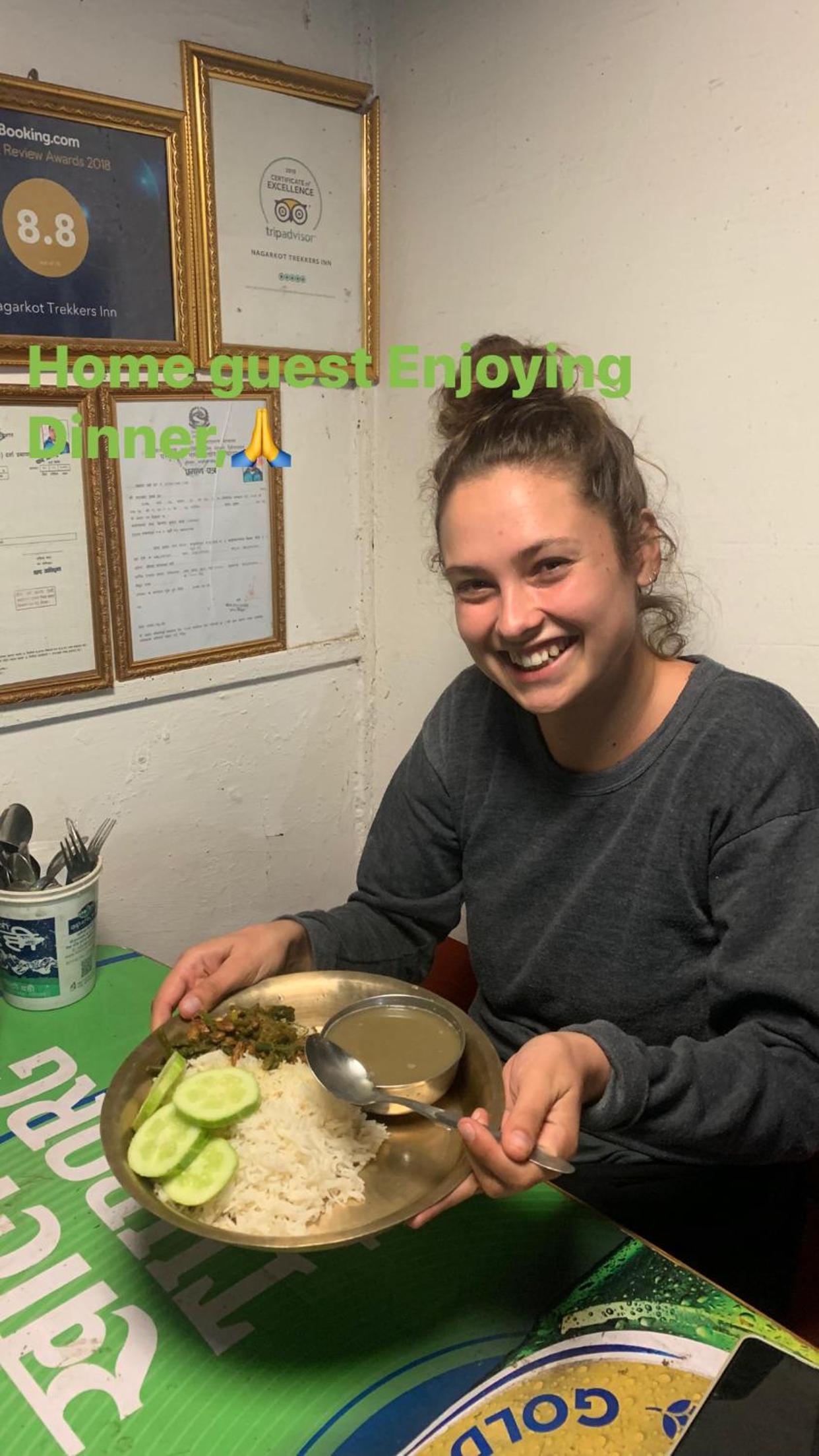 Great stay with super friendly owners. I was greeted by the owner on top of the hill where he has a small shop near the army camp. He offered me tea and drove me to the homestay on motorbike. Hot shower 24 hour. Wifi good enough to work. Organic authentic nepalese family dinner with fresh vegetables straight from the garden. I met 3 other smart solo ladies travellers here. Excellent stay. I highly recommend and will come back whenever I'm in Nagarkot. Thank you!