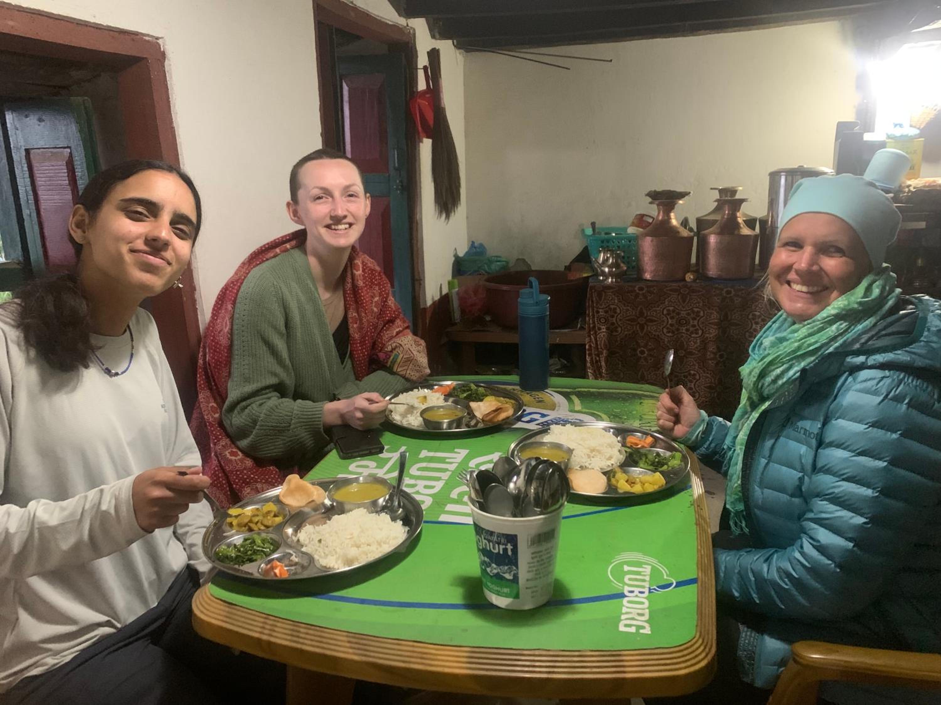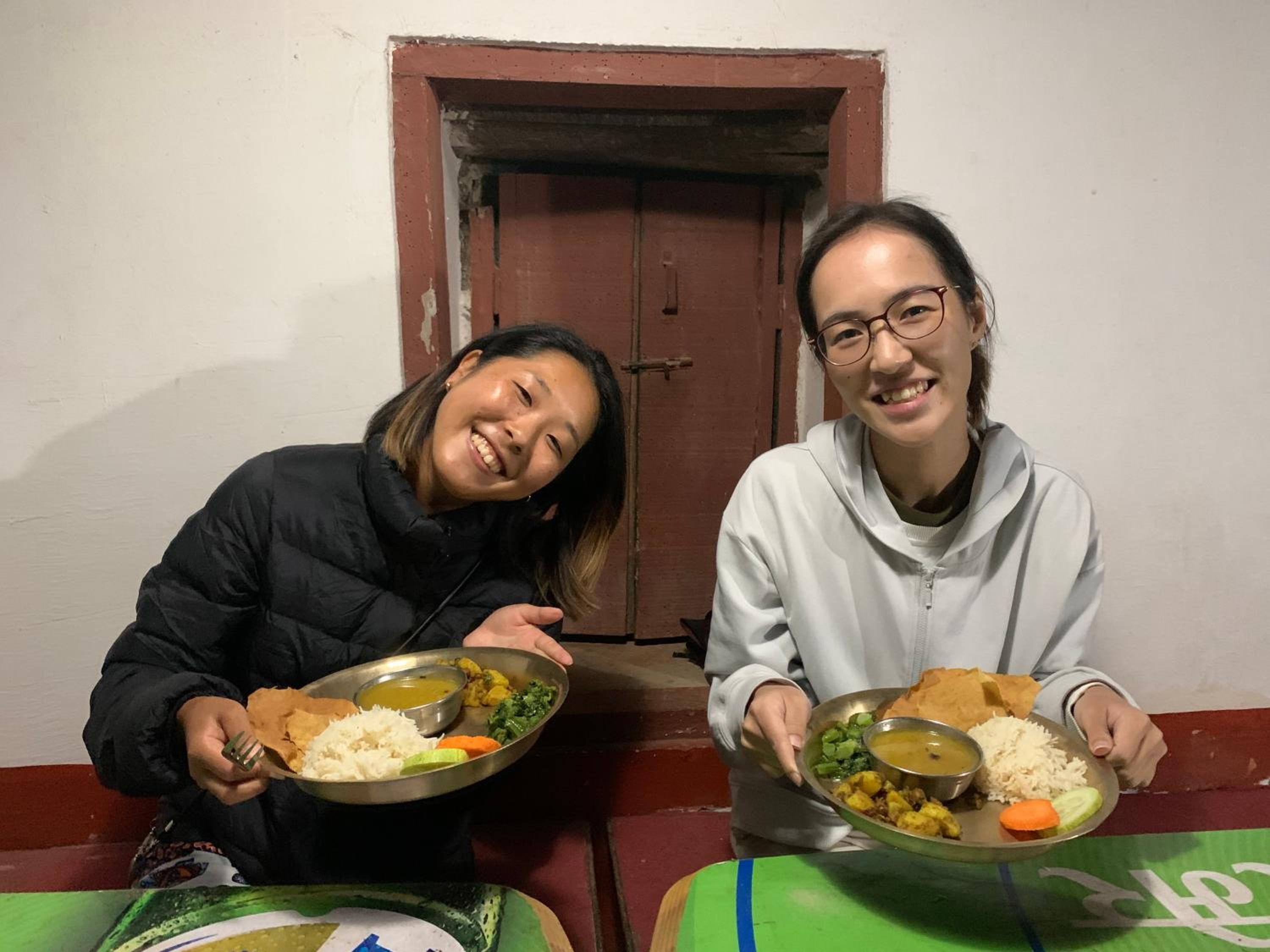 夕食はチキンカレーで、とても美味しかったです。付け合わせのカリフラワー、ほうれん草も敷地内で採れたもので新鮮でとても美味しいです。お米もローカルのものだそうで、すごく美味しくおかわりさせてくれました。ここでの食事がネパール滞在中で一番美味しかったです。