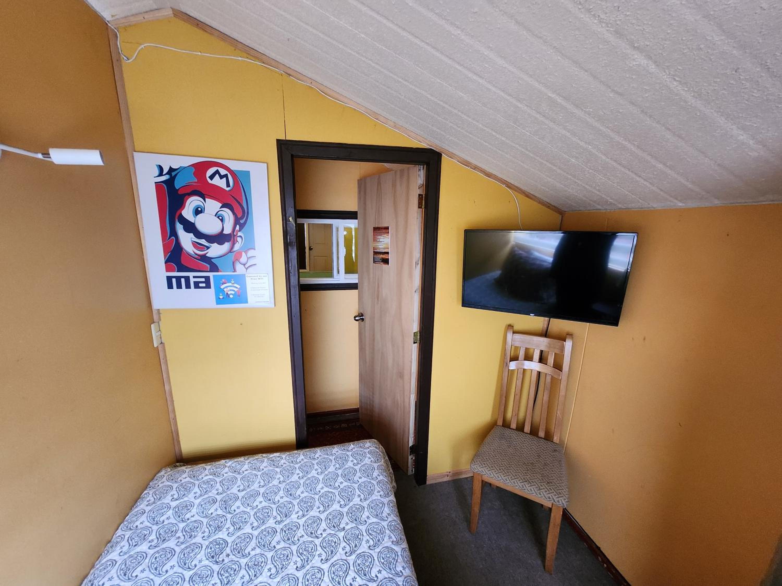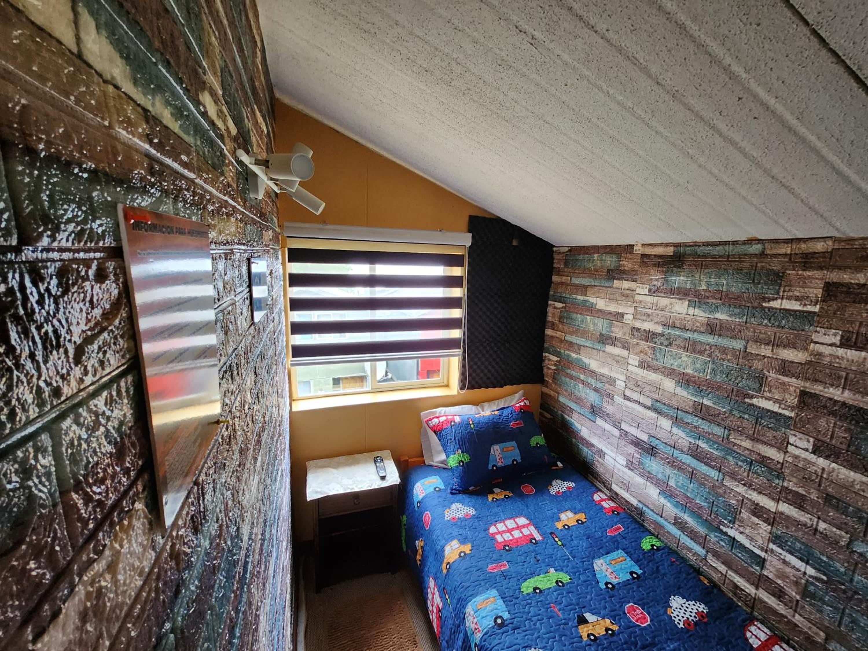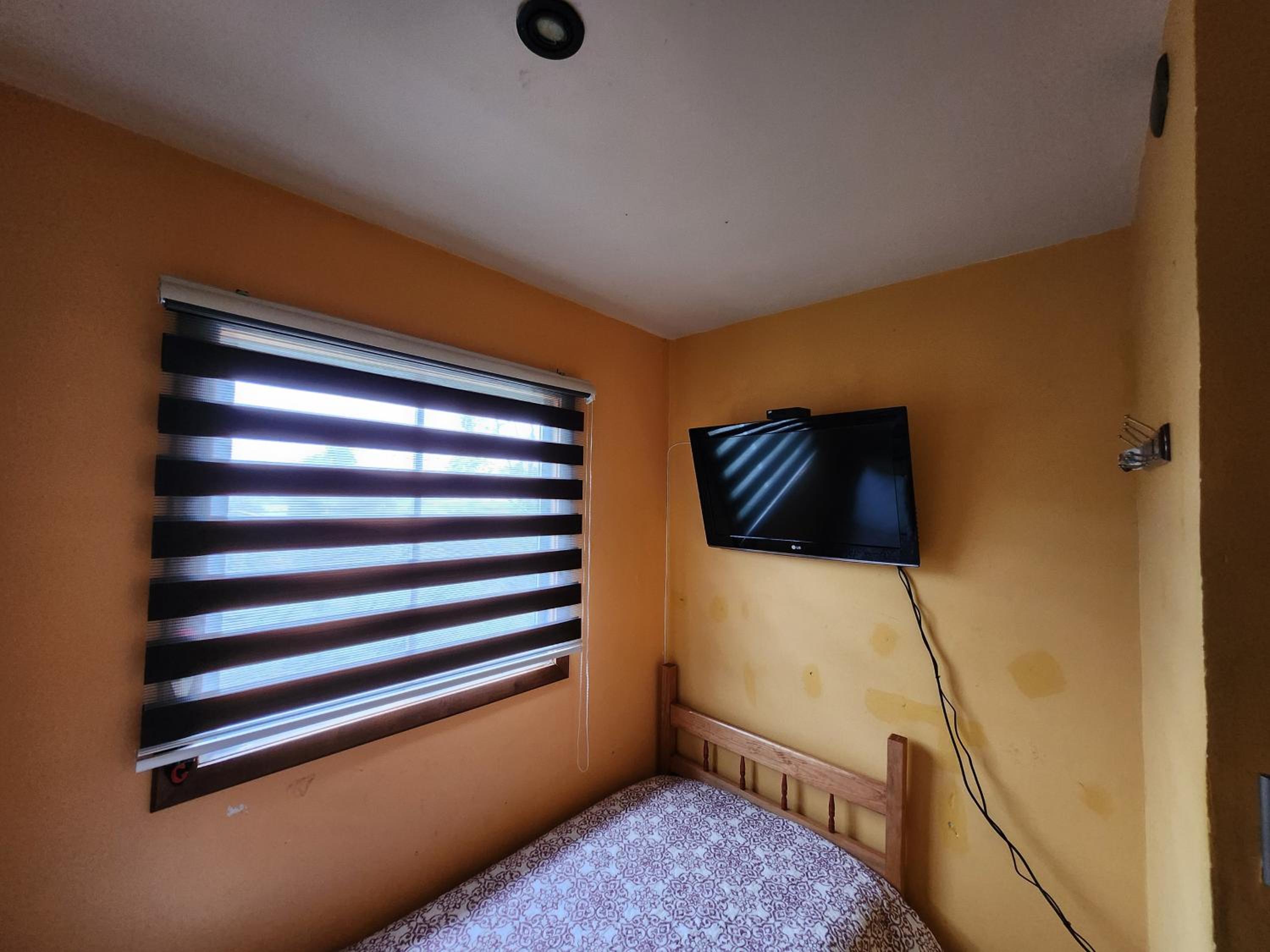 La habitación no tenía ventana, lo cual es molesto, al menos para mí. No había lámparas en los veladores, solo una luz de cielo. No tiene enchufes en los veladores. Tiene un baño compartido que está bien, solo que está en la primera planta y hay que bajar y cruzar por la cocina.