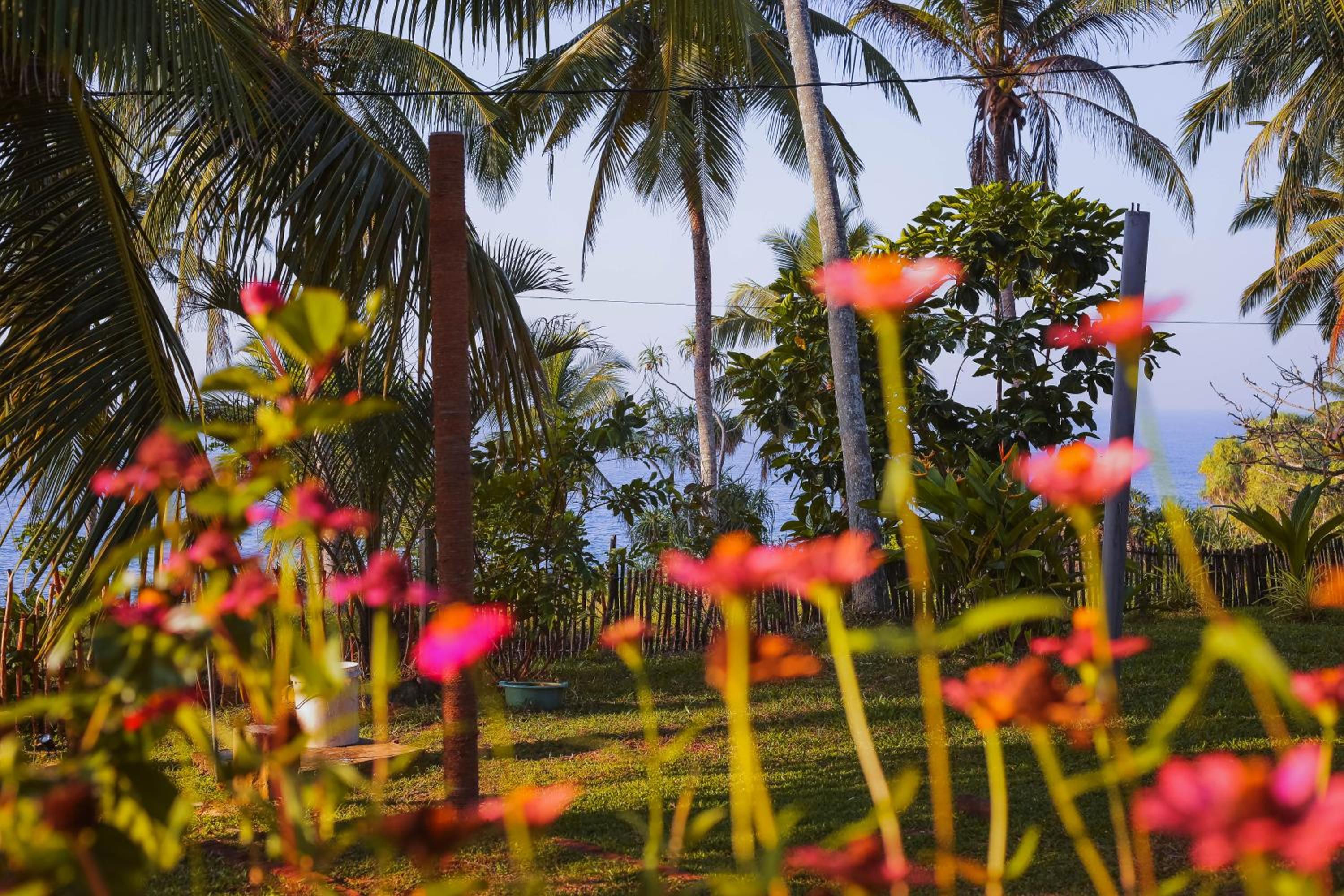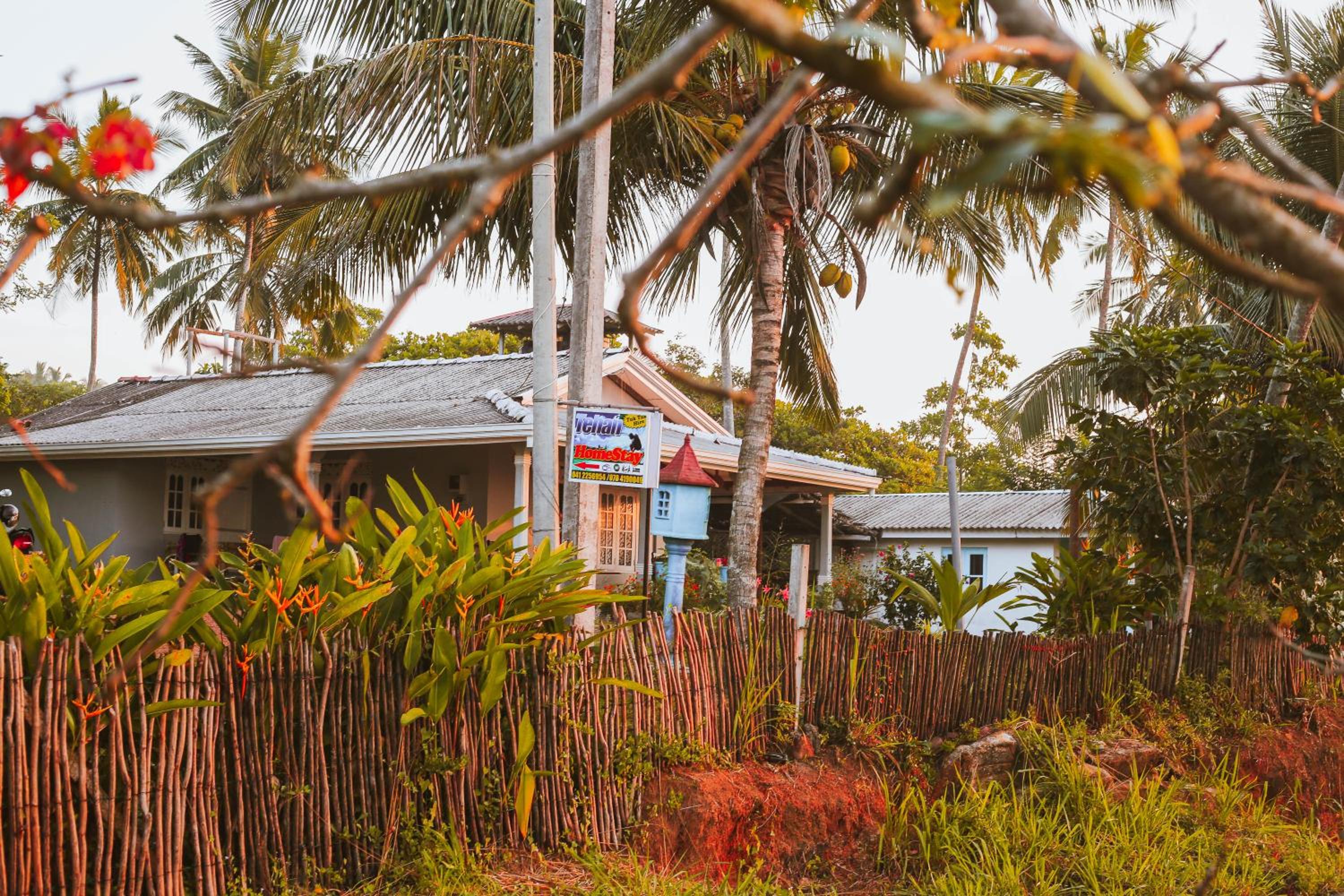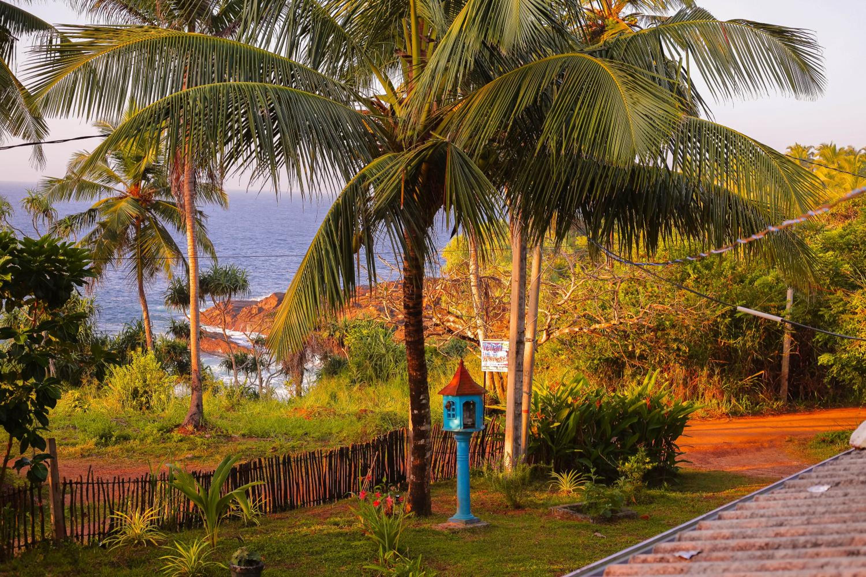 Tehan Homestay in Hiriketiya offers a unique sustainable experience with sea views, a private beach area, and a garden for guests to enjoy.