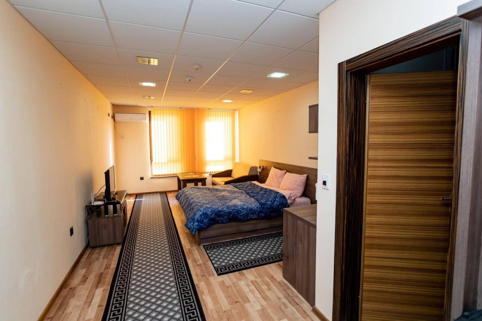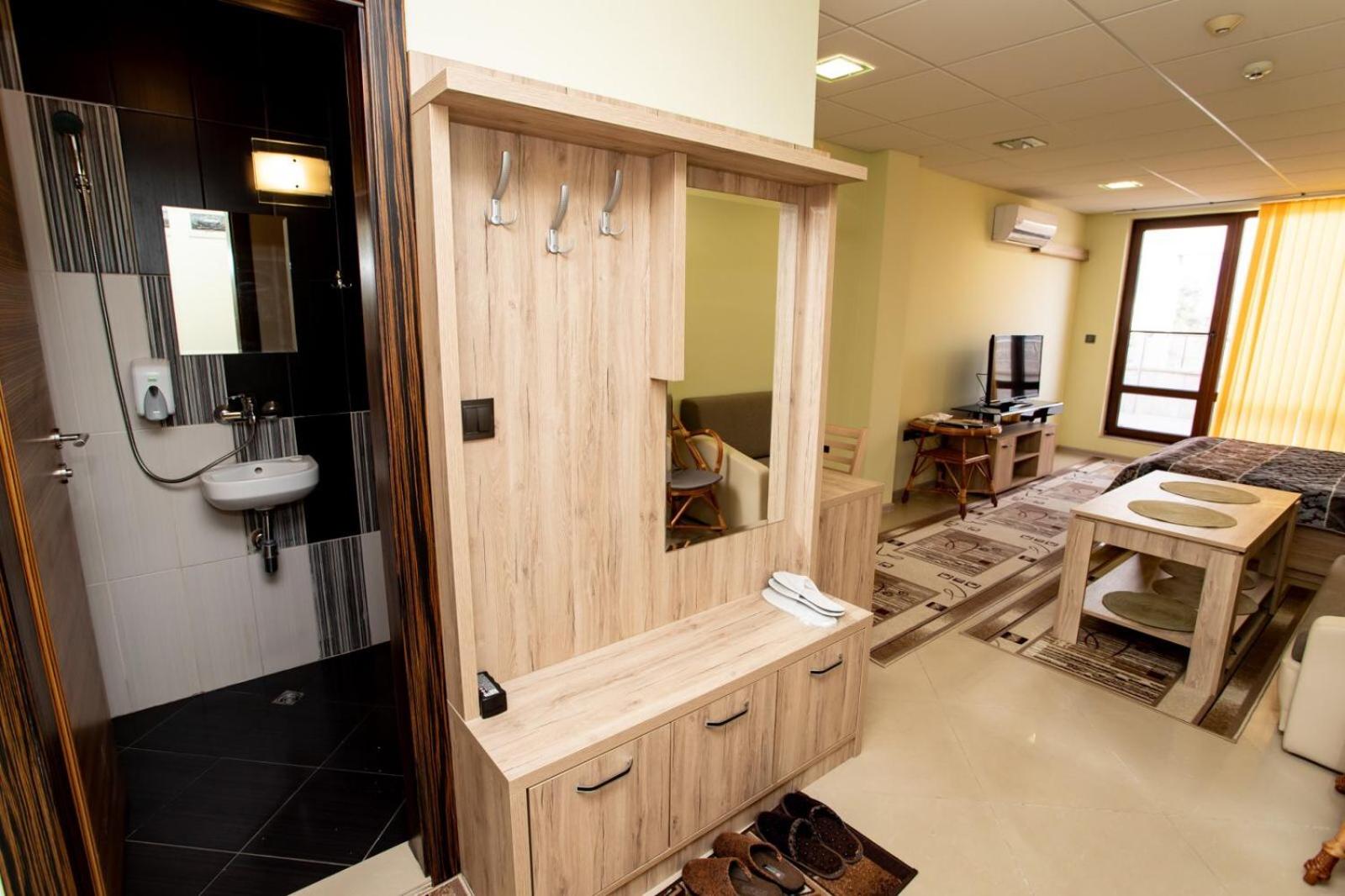 Note that this is actually an apartment, with no sign on building saying "стая за гости". Building itself is easy to find. Once at the building, just call the manager and he will come down and meet you..